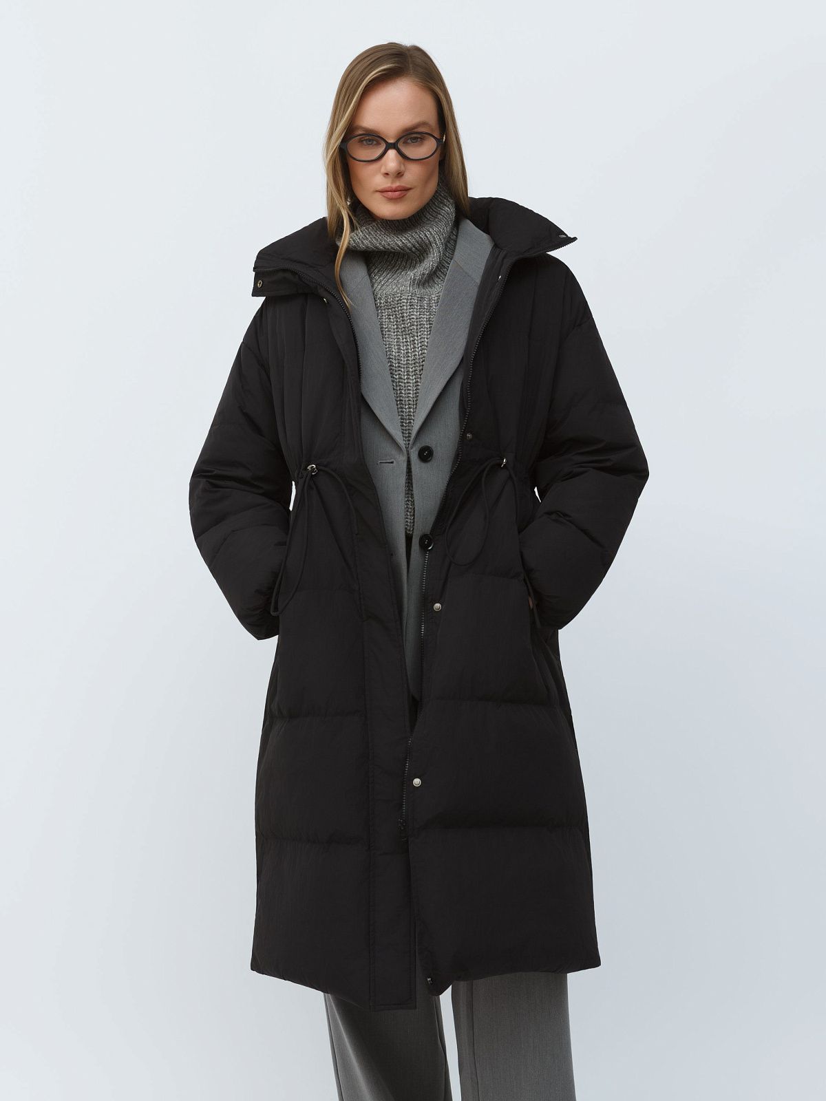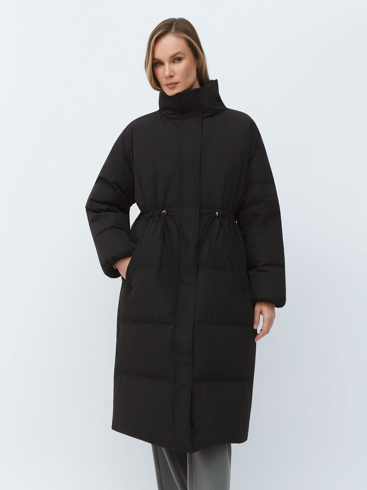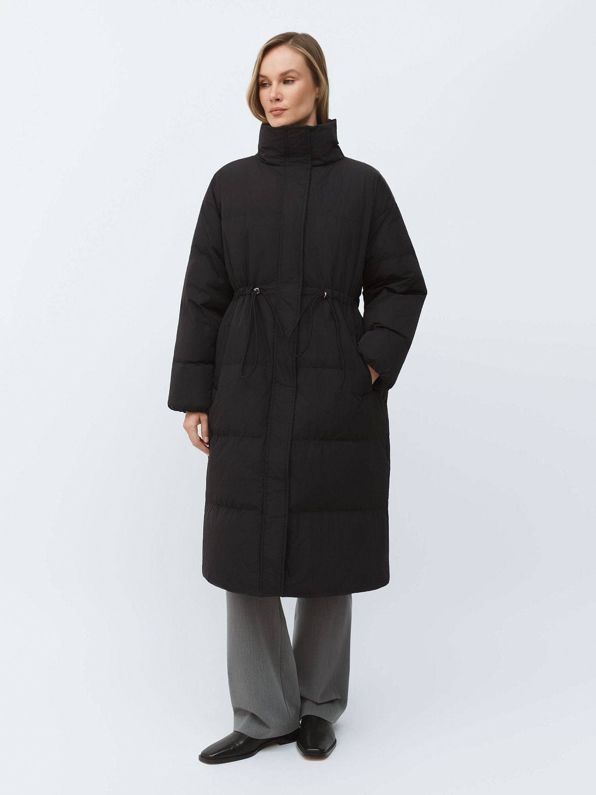 Пальто пуховое утепленное с регулируемым поясом и высоким воротником Premium Lab