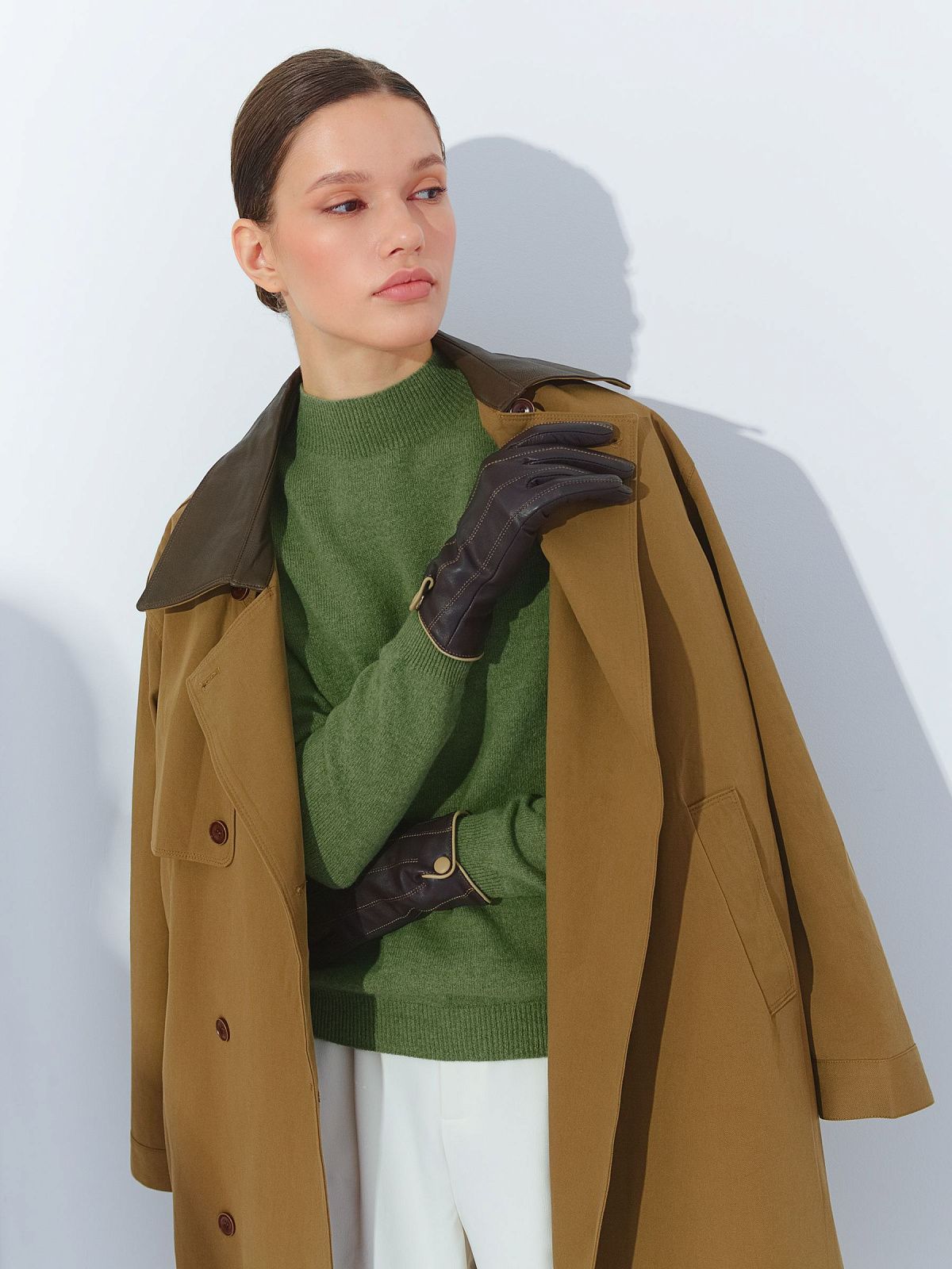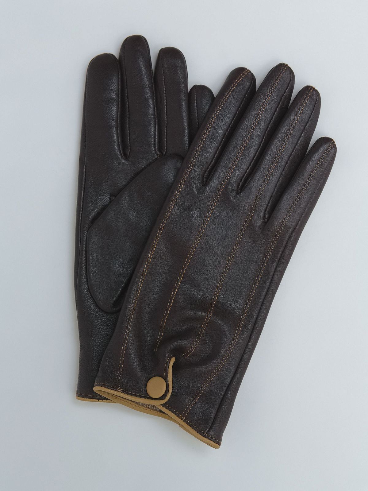 Кожаные перчатки с подкладкой из шерсти и декоративной кнопкой