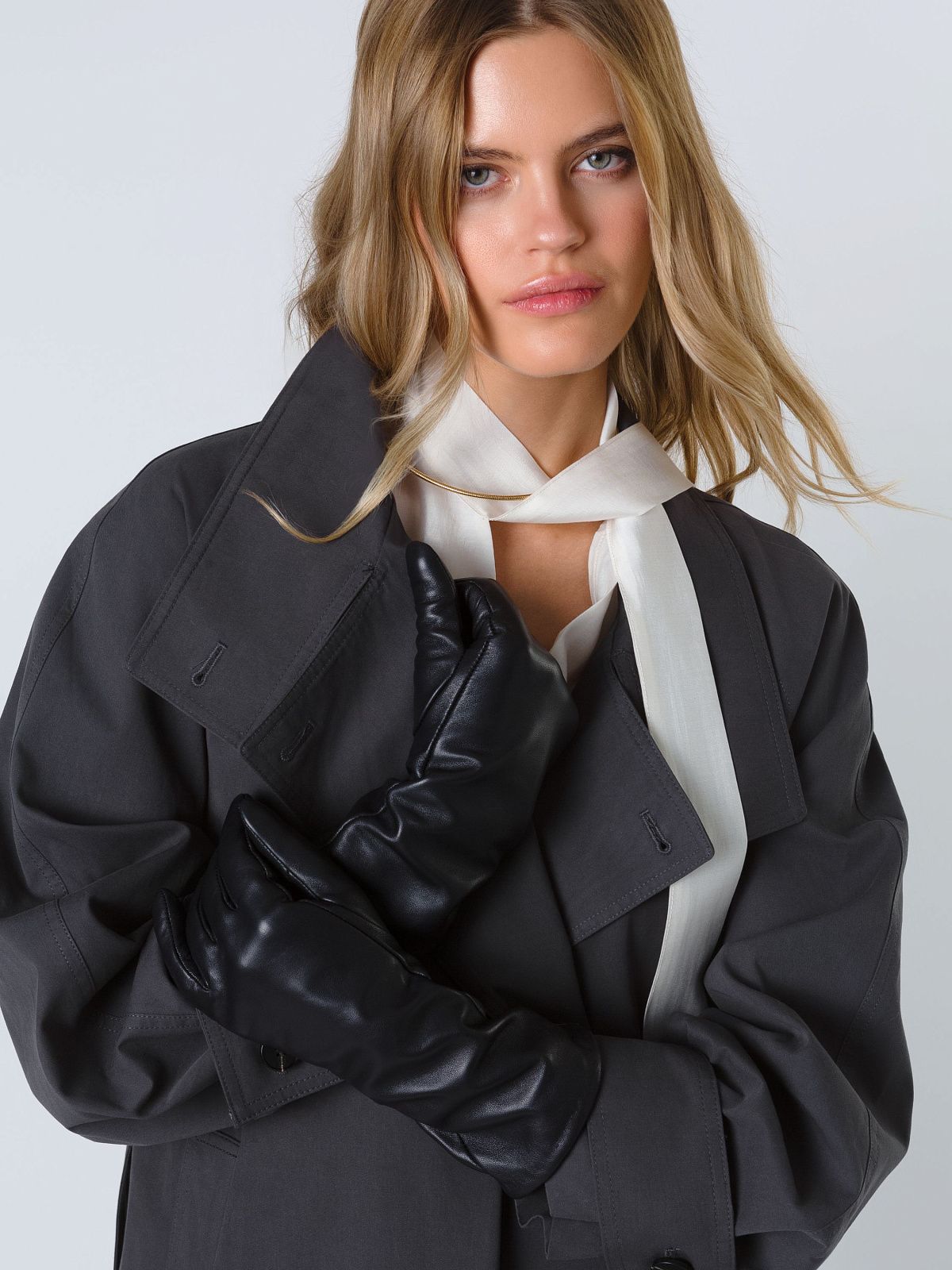 Удлинённые кожаные перчатки с шерстяной подкладкой