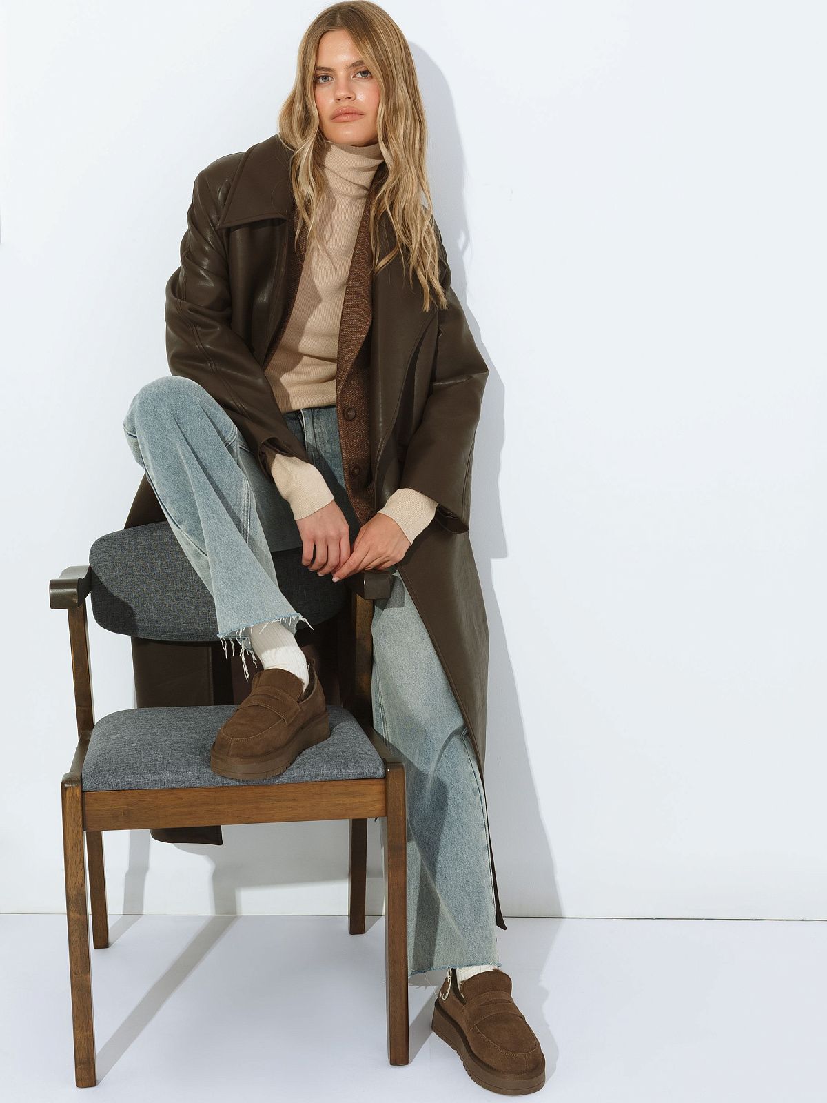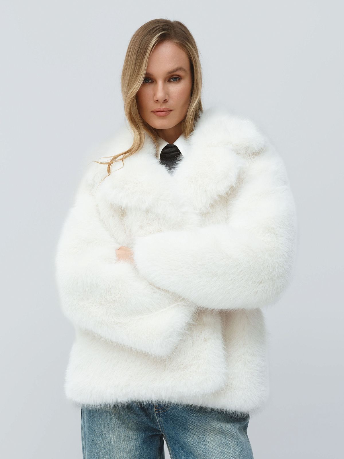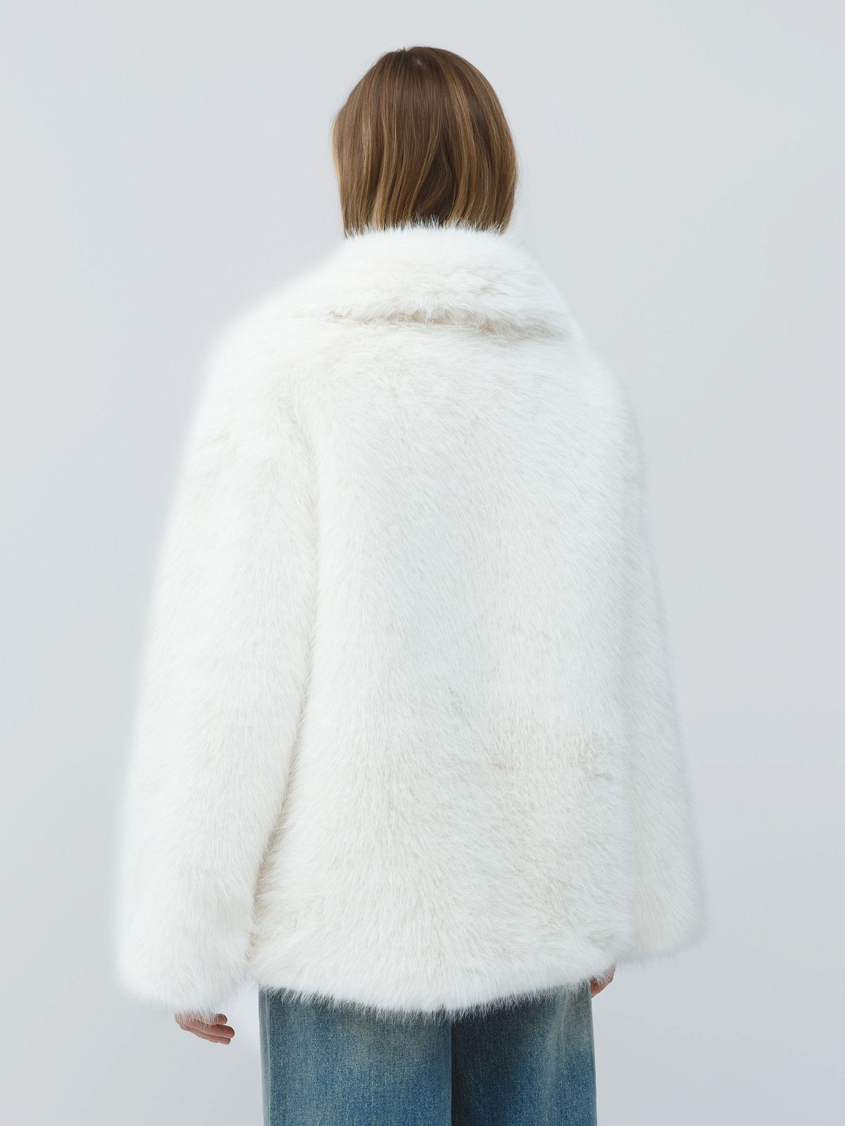 Шуба из искусственного меха с объемным кроем и широкими лацканами