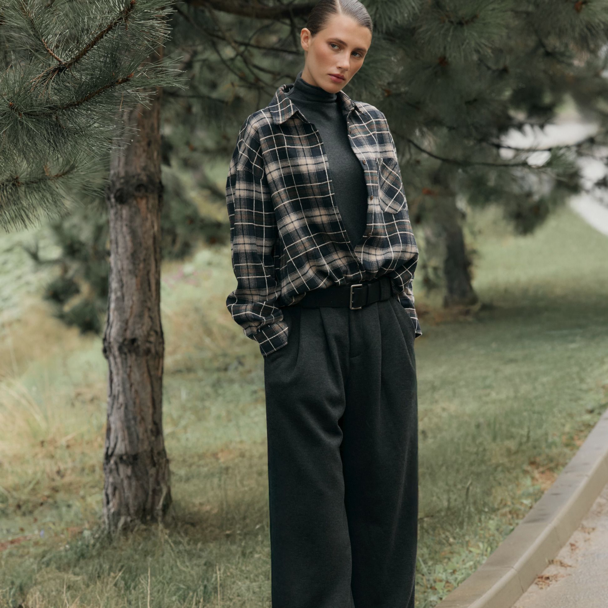 Брюки из шерстяного трикотажа с эластичным поясом и расширенными штанинами