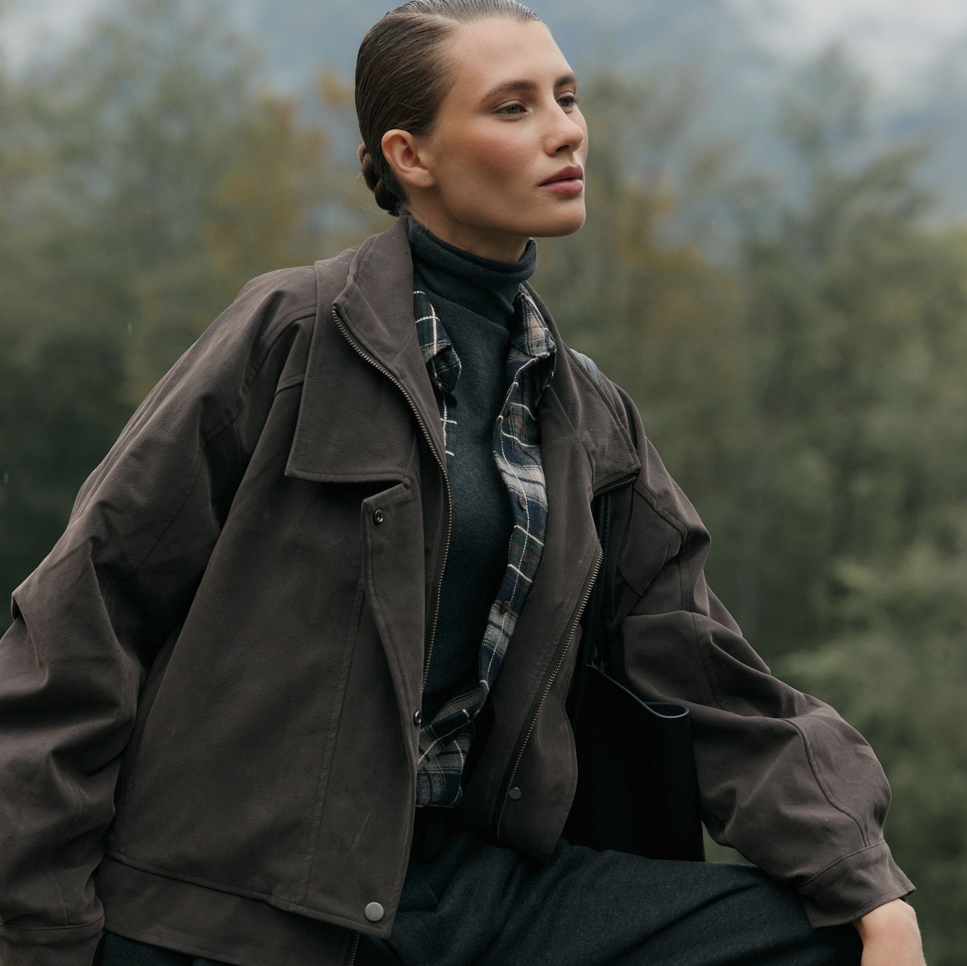Куртка из экокожи утепленная пуховая с воротником-стойкой и рукавом реглан