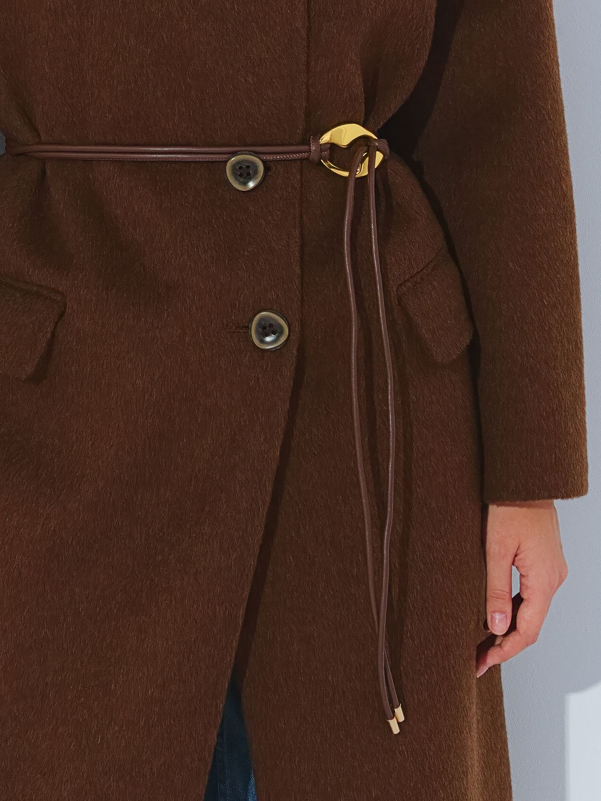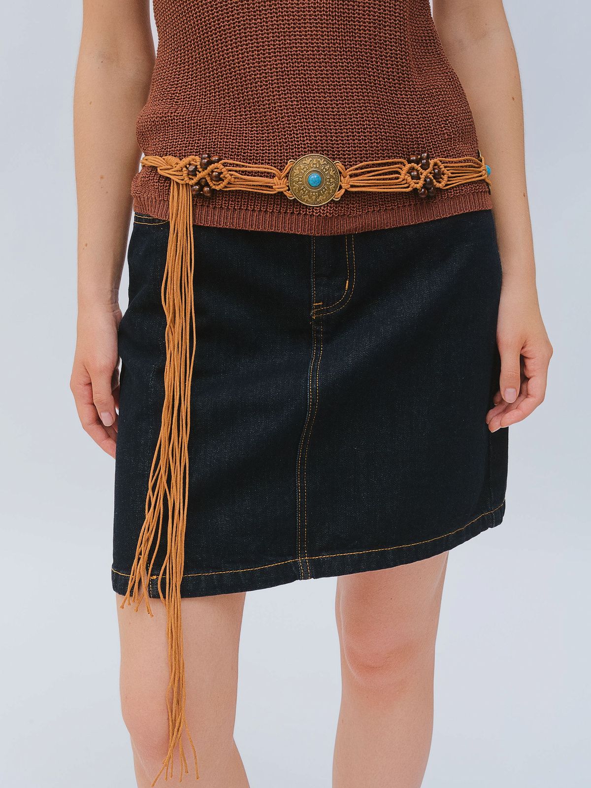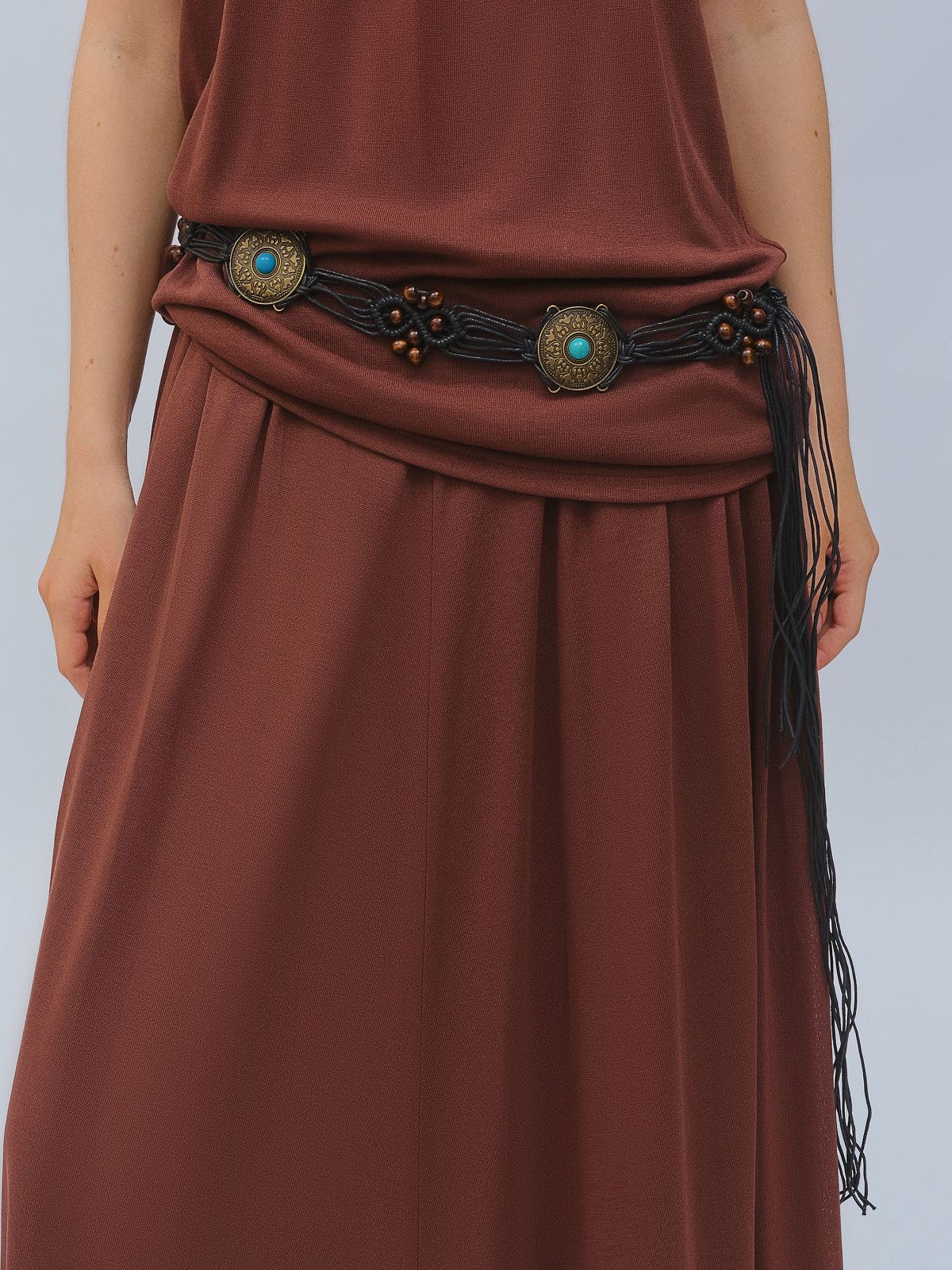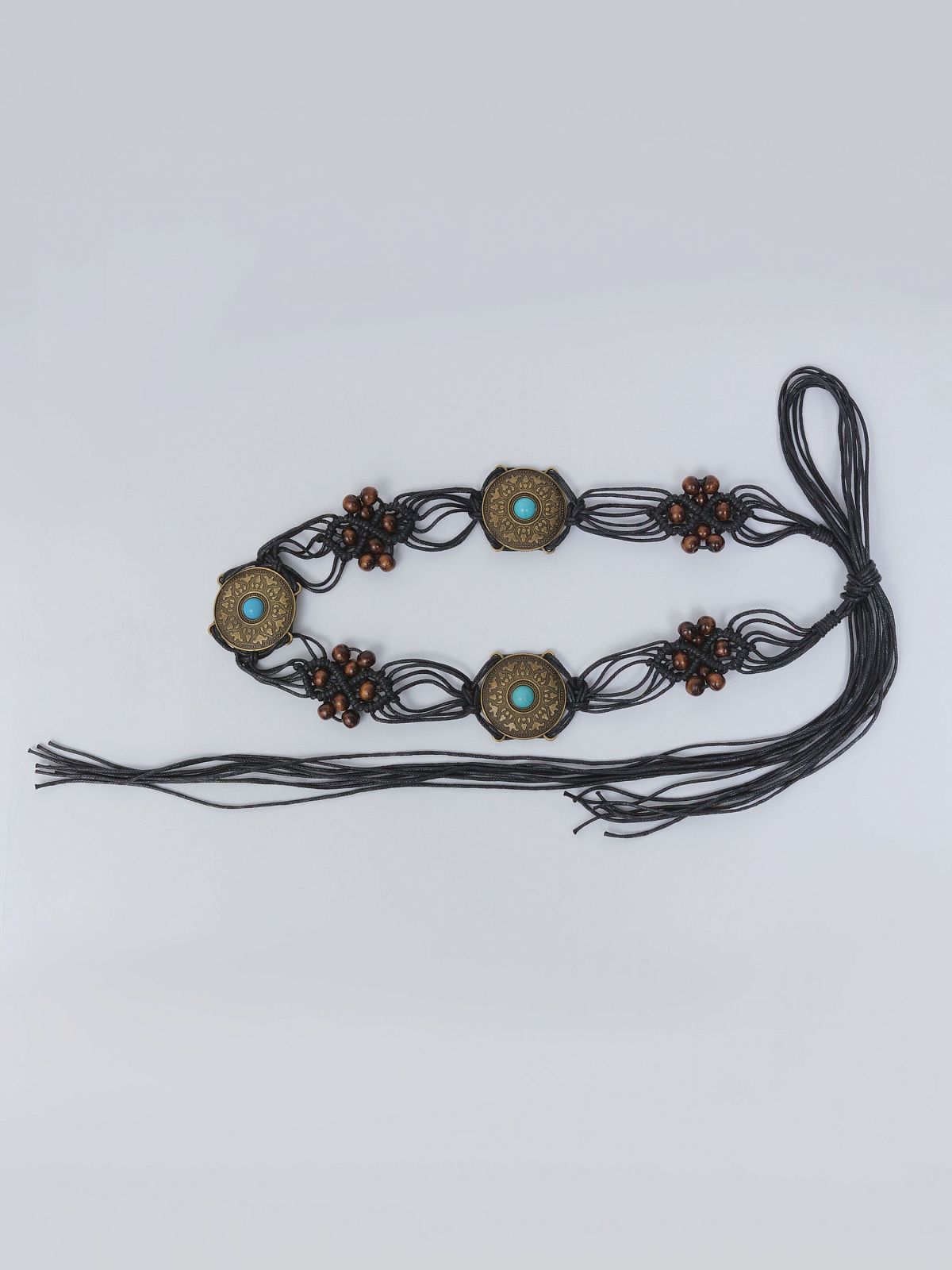 Декоративный пояс на шнурах с элементами из дерева, металла и декоративного камня