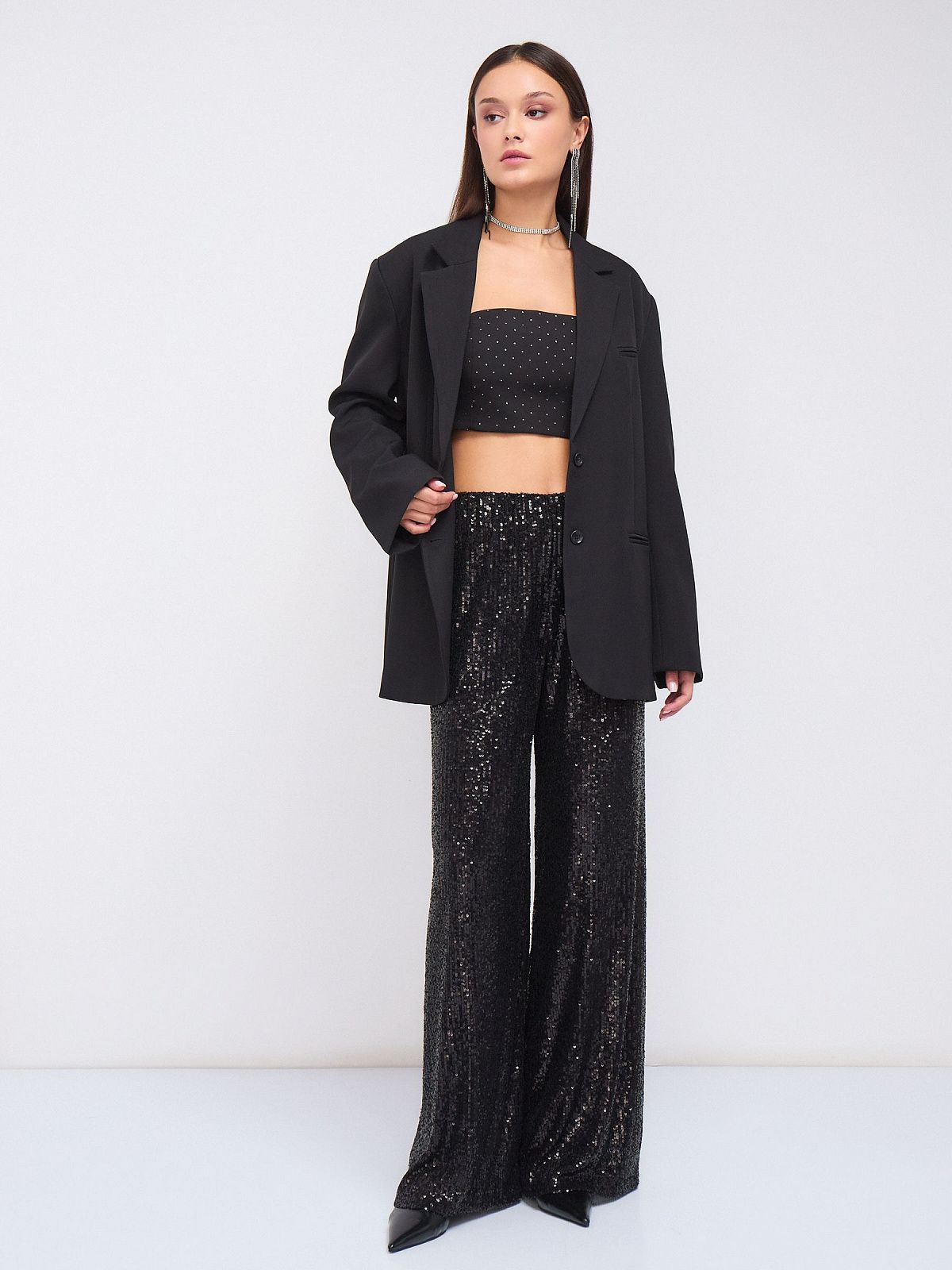 - трендовая одежда для особых случаев: расшитые пайетками и кружевные модели, широкие брюки с очень свободным кроем или с эффектными принтами.