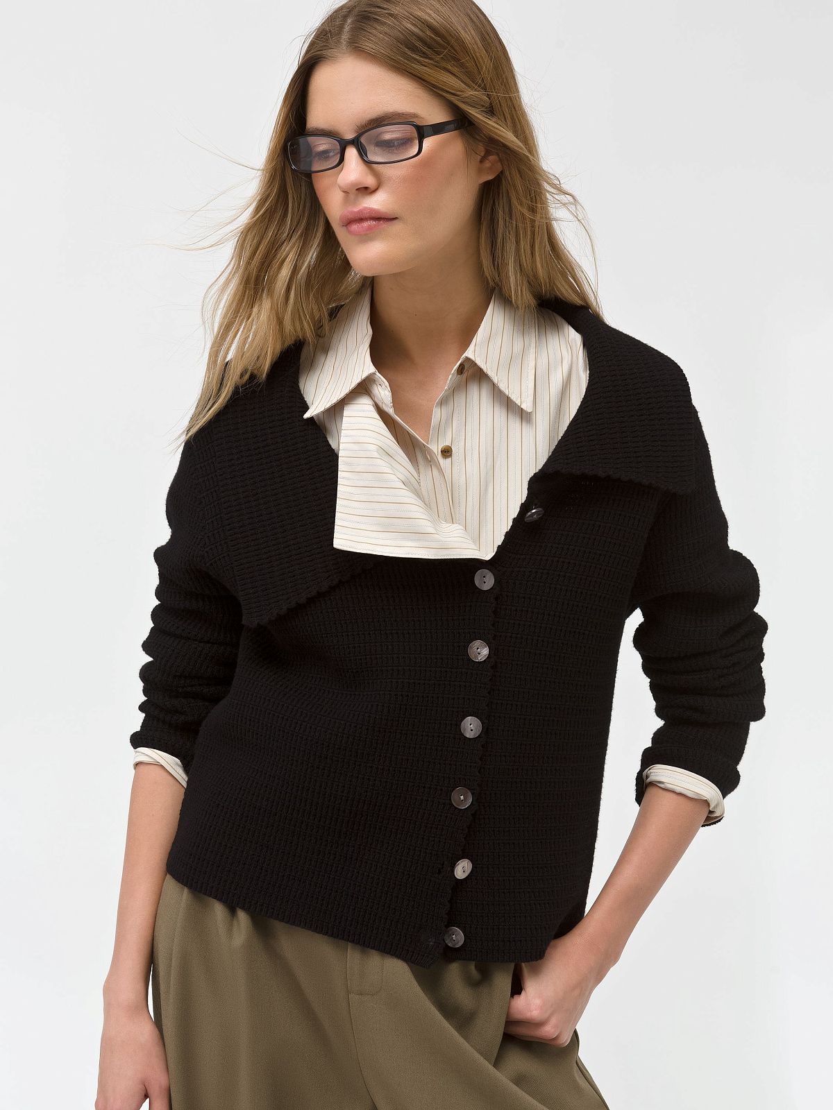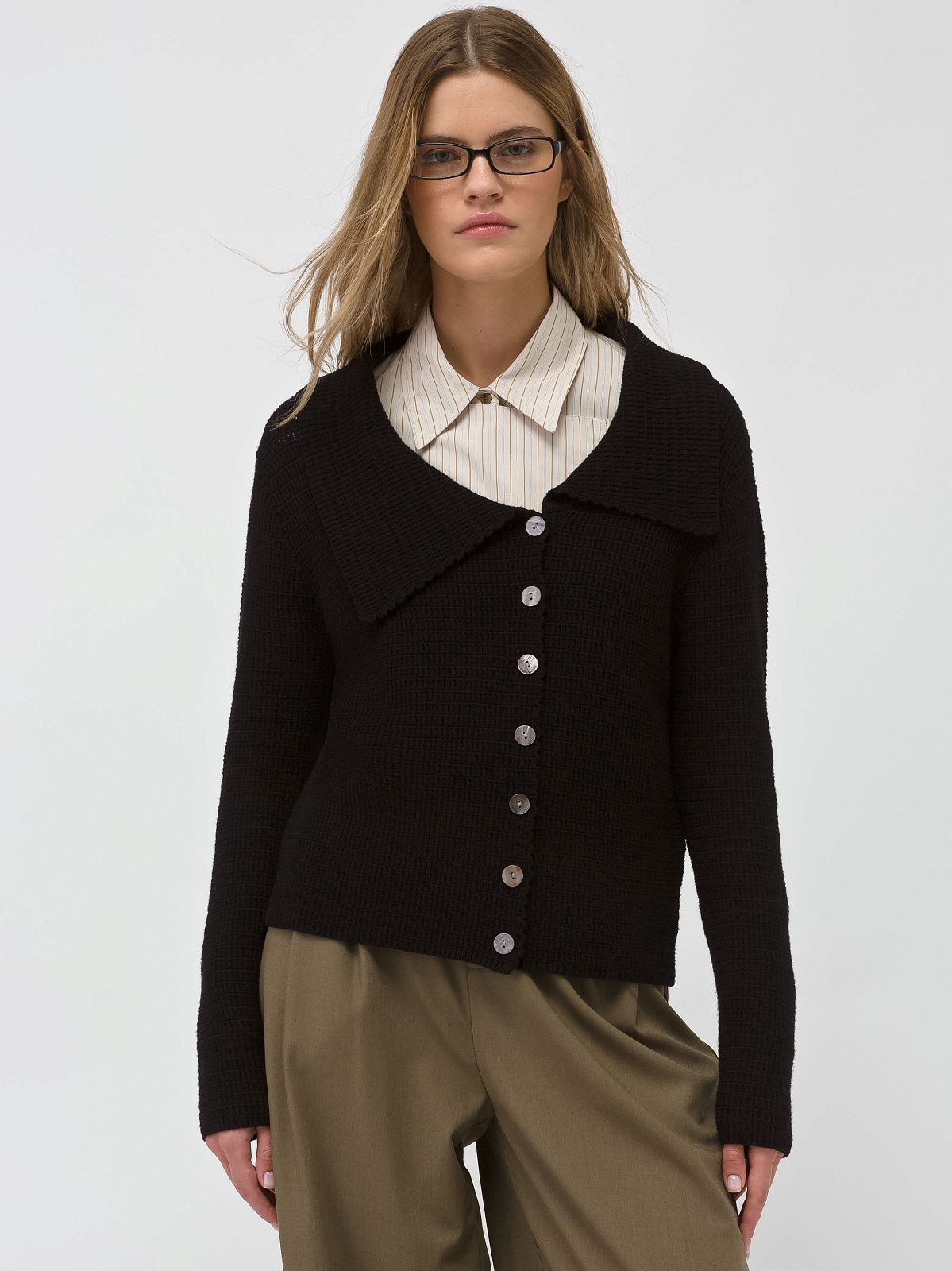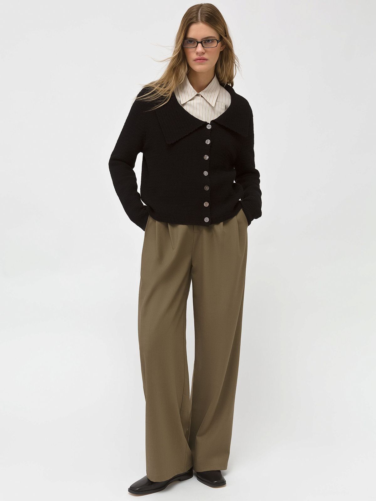 - кардиганы на пуговицах или мягкие аккуратные свитеры;