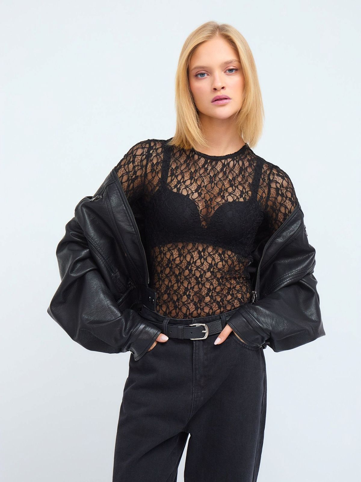 Лонгслив из вискозы с вырезом на груди и спущенной линией плеча