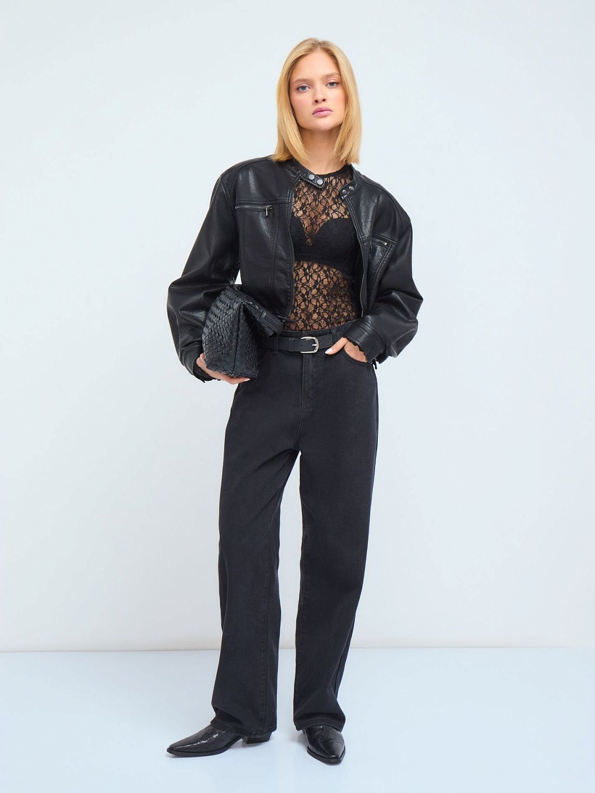 Джинсы с высокой посадкой и разрезами на внутреннем шве