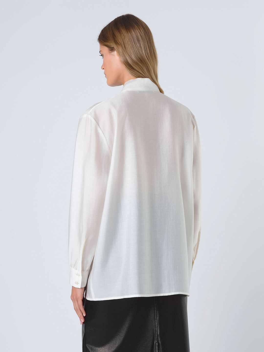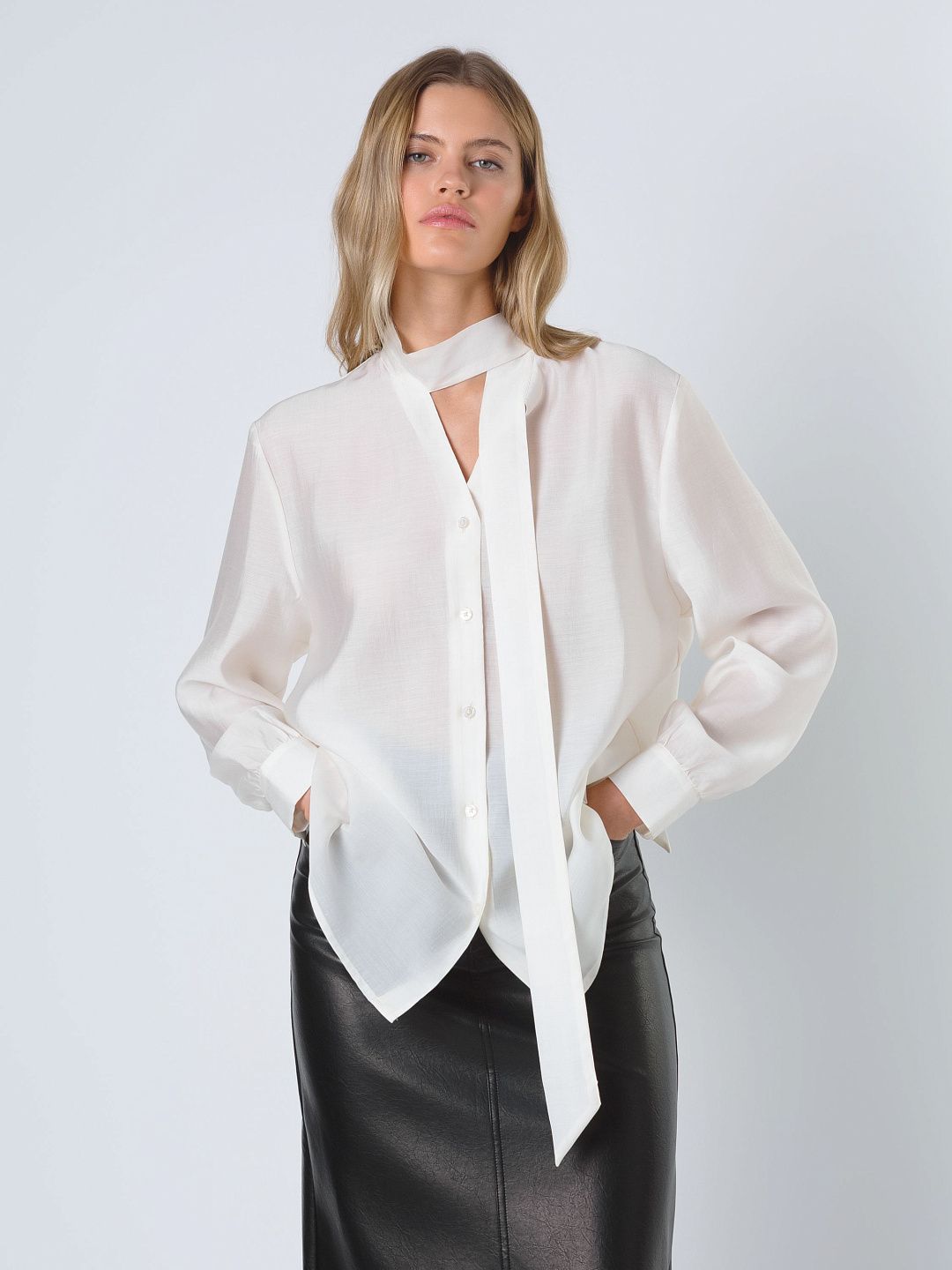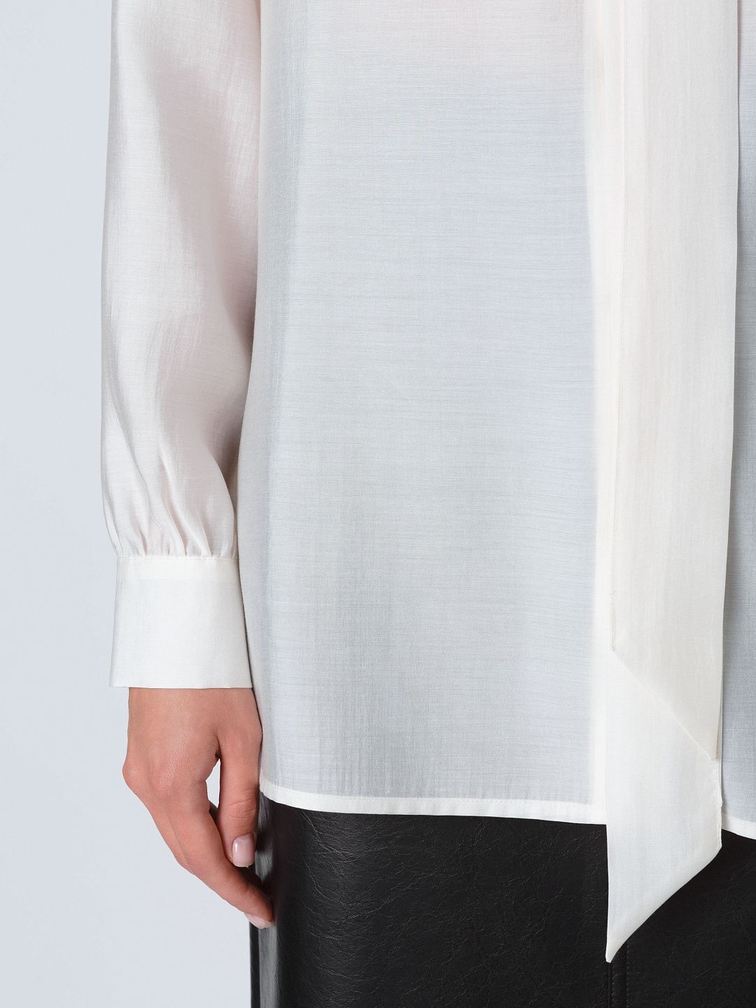 Блузка из тенселя с длинными рукавами застежкой на пуговицы и декоративными лентами
