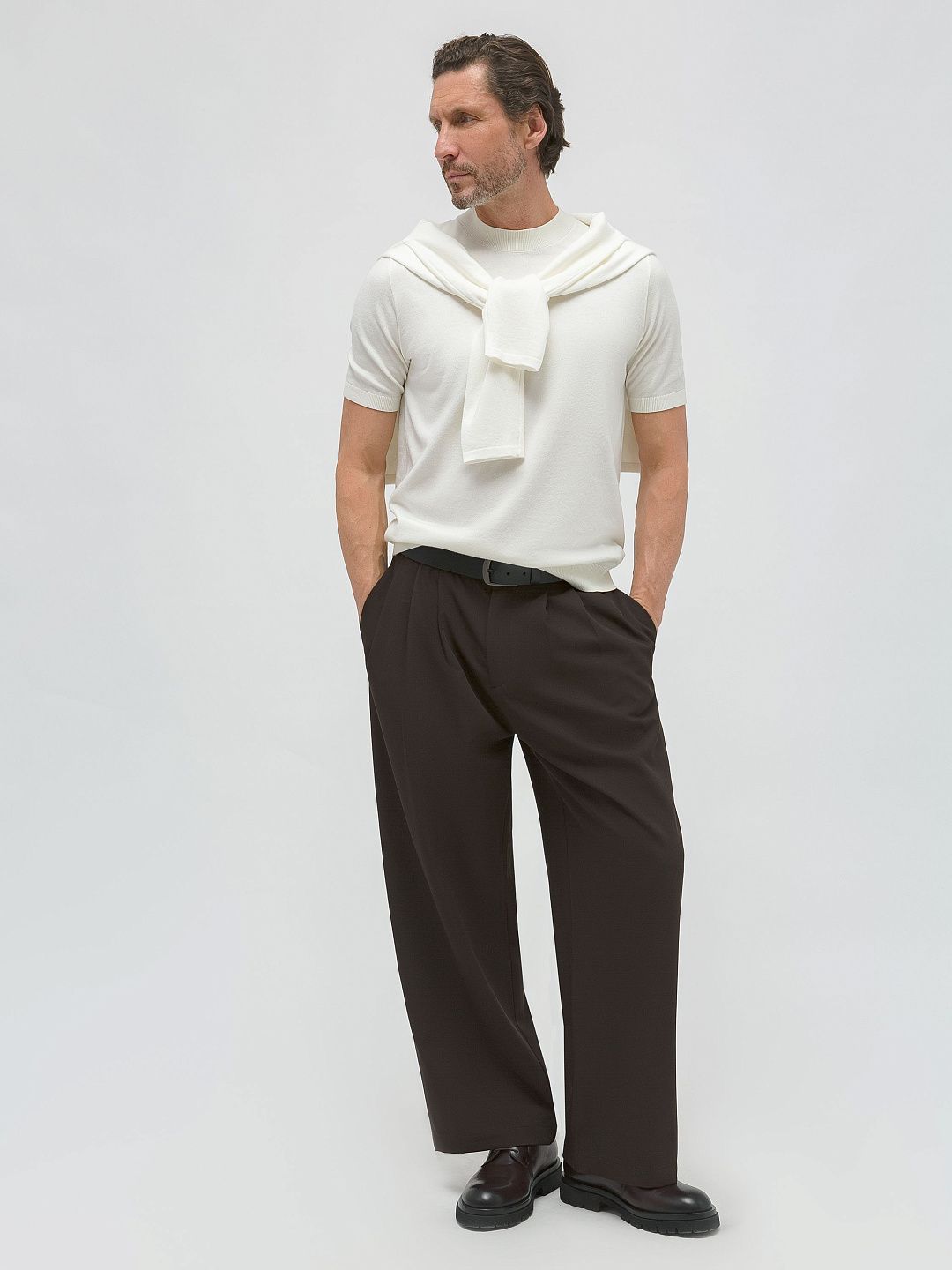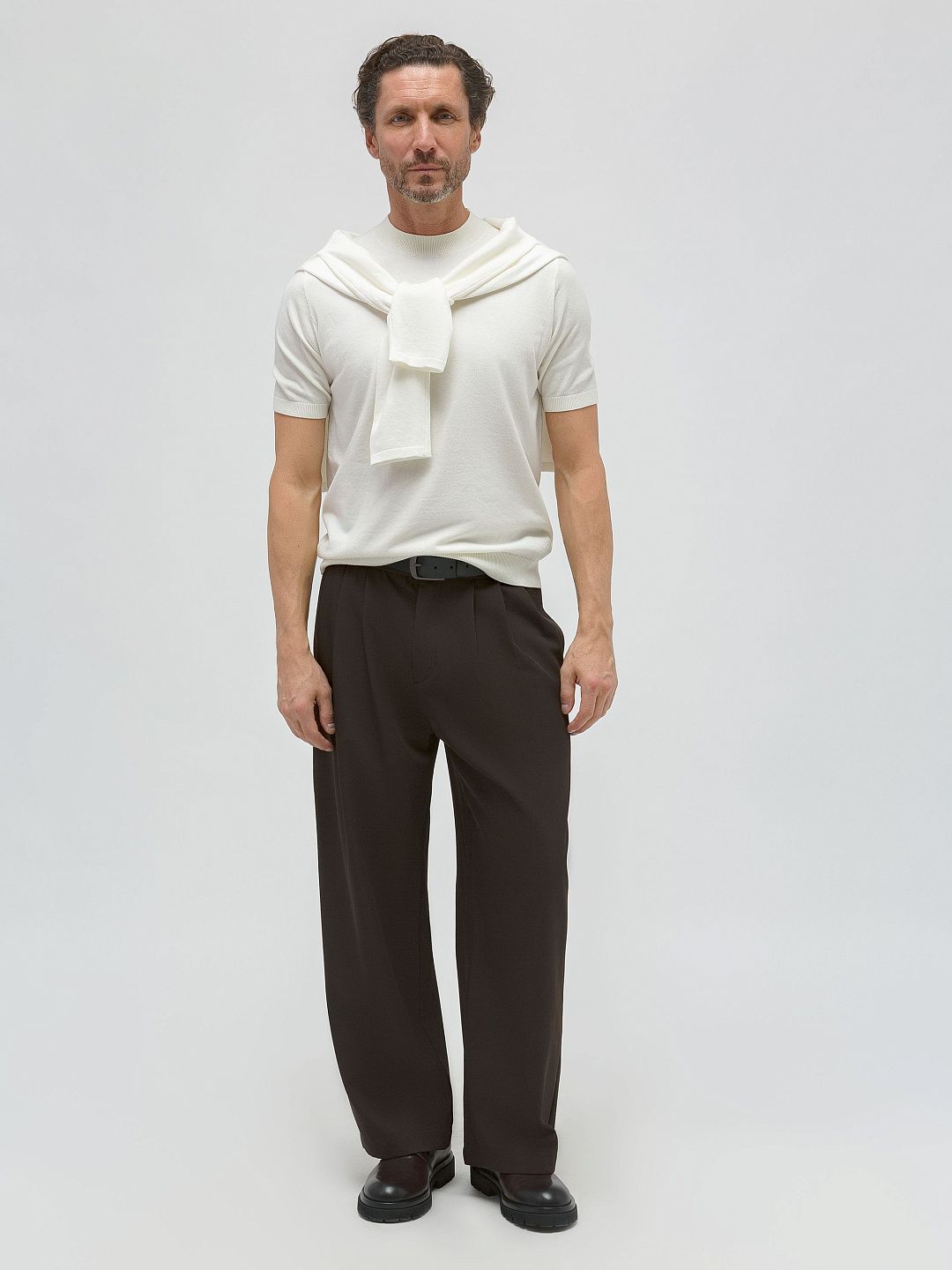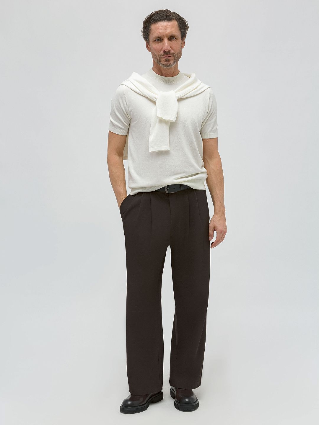 Брюки прямого кроя с защипами