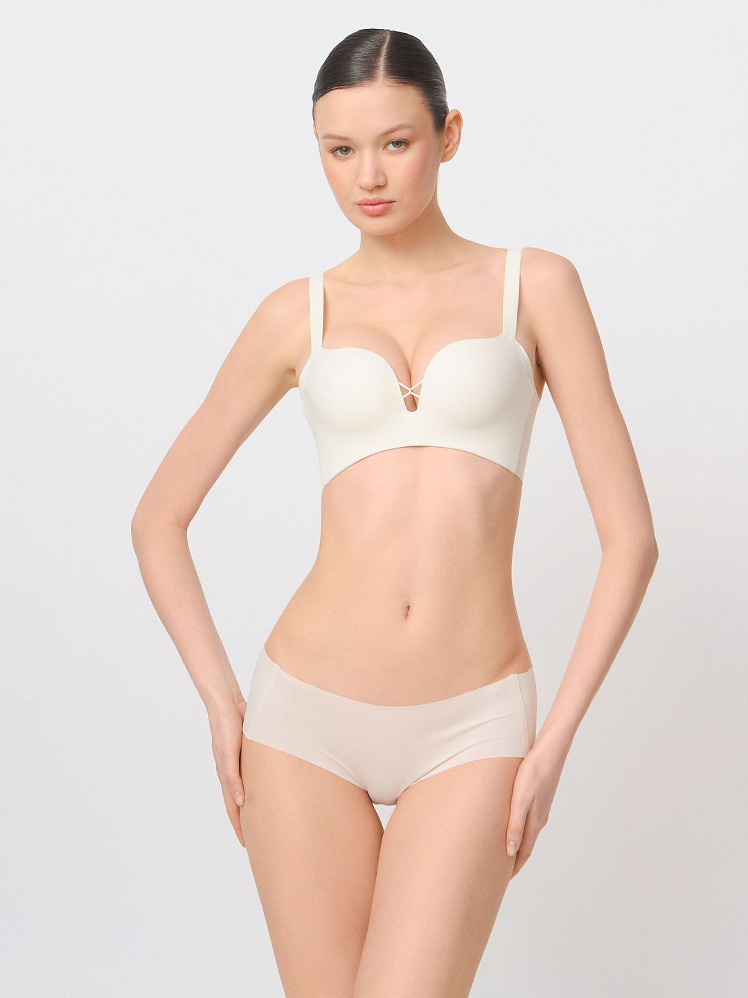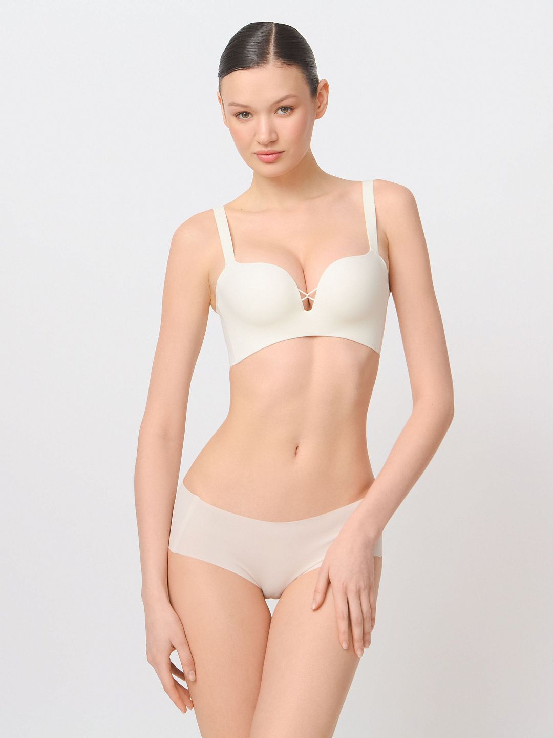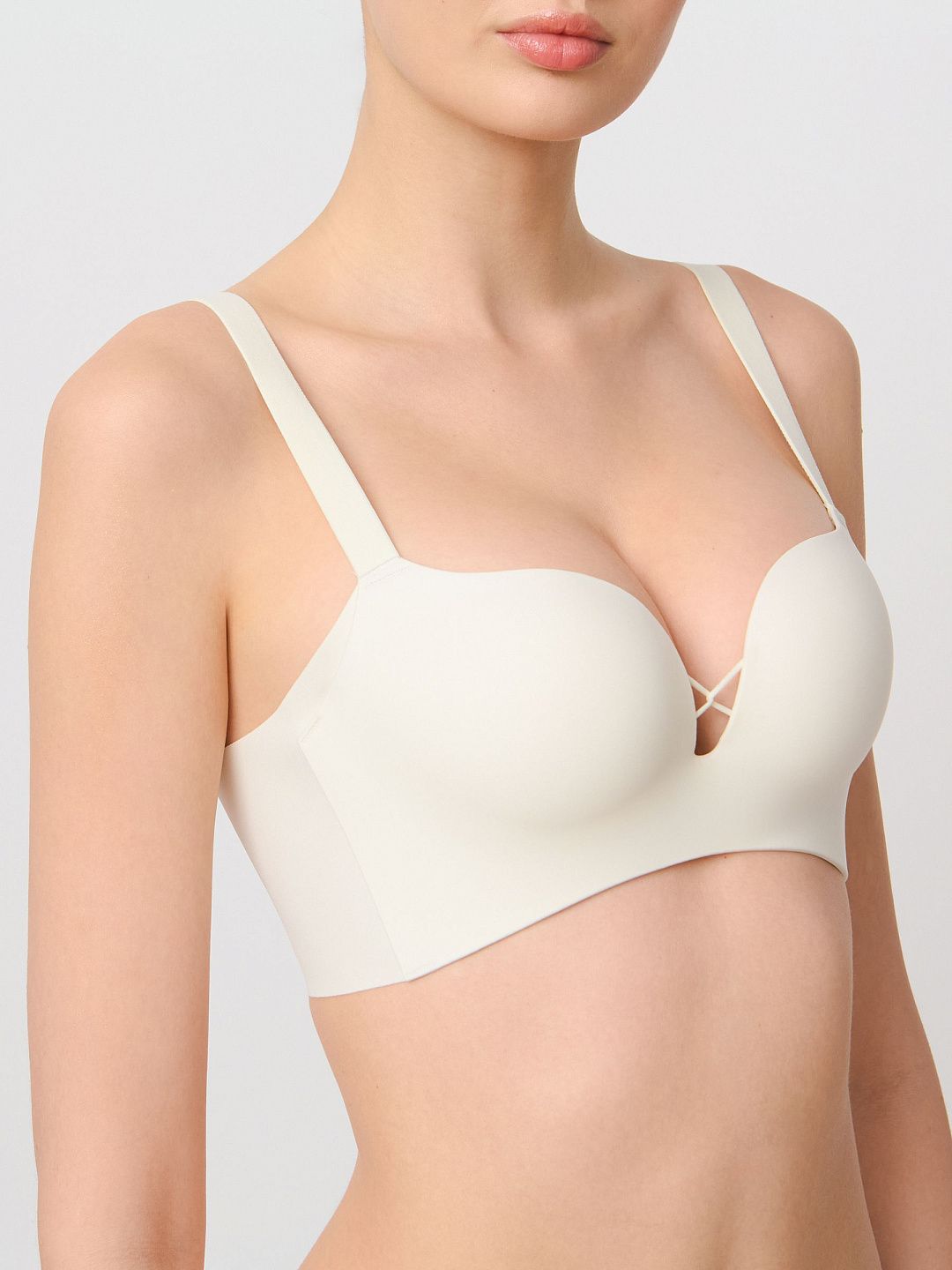 Бюстгальтер с V-образным вырезом и перекрещивающимися элементами в центре