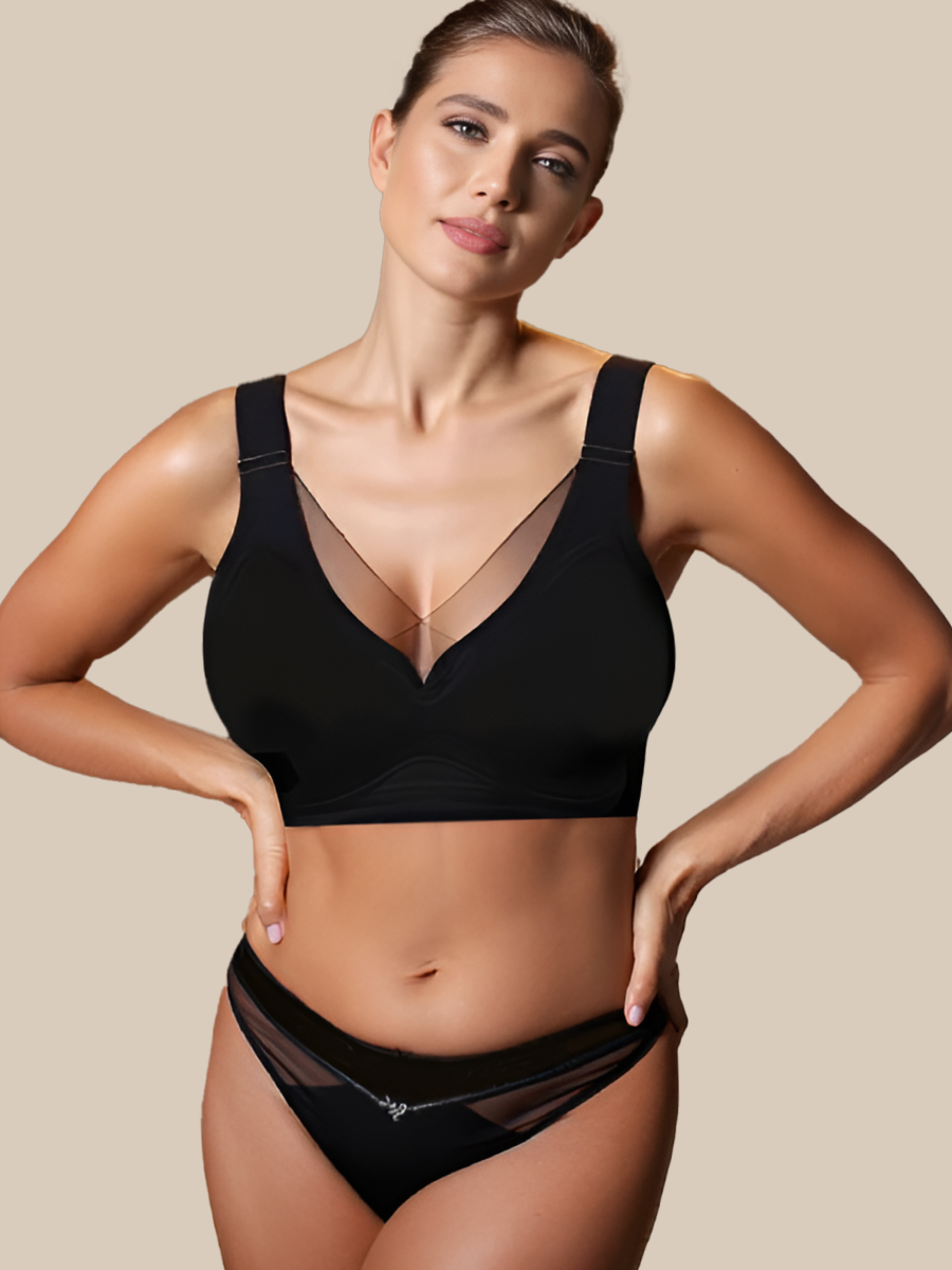 Бюстгальтер-топ с V-образным вырезом и вставкой из сетчатого материала