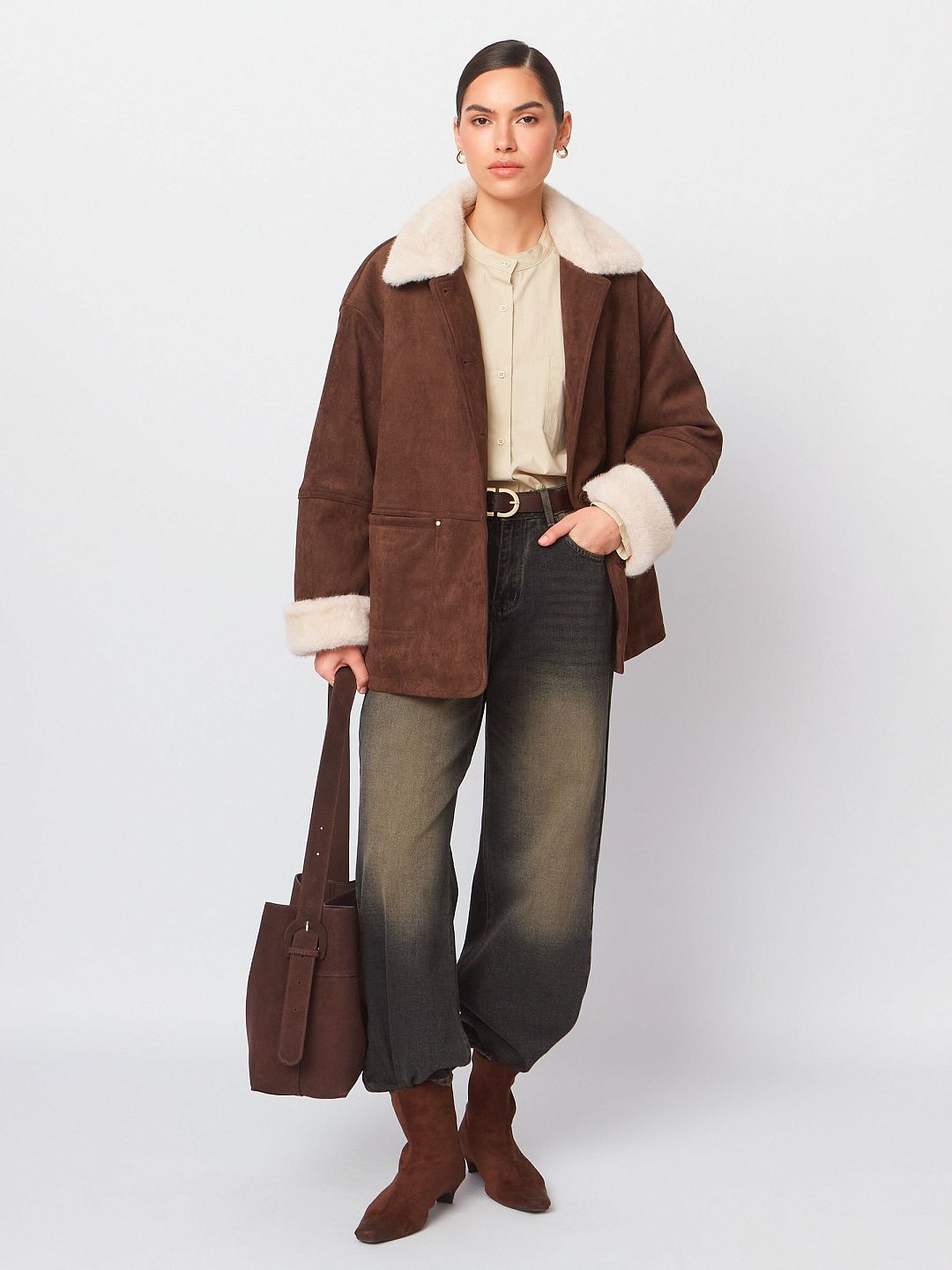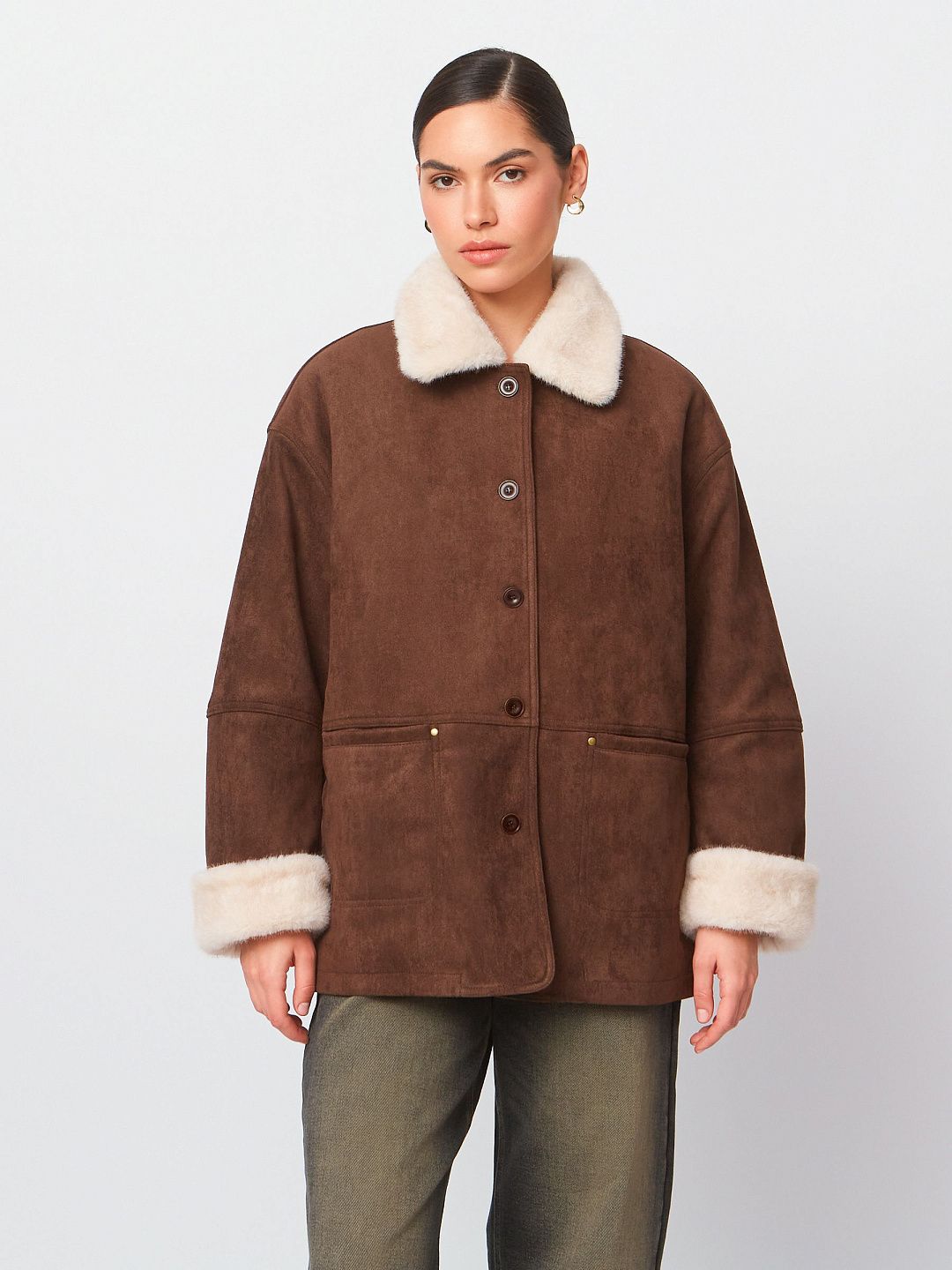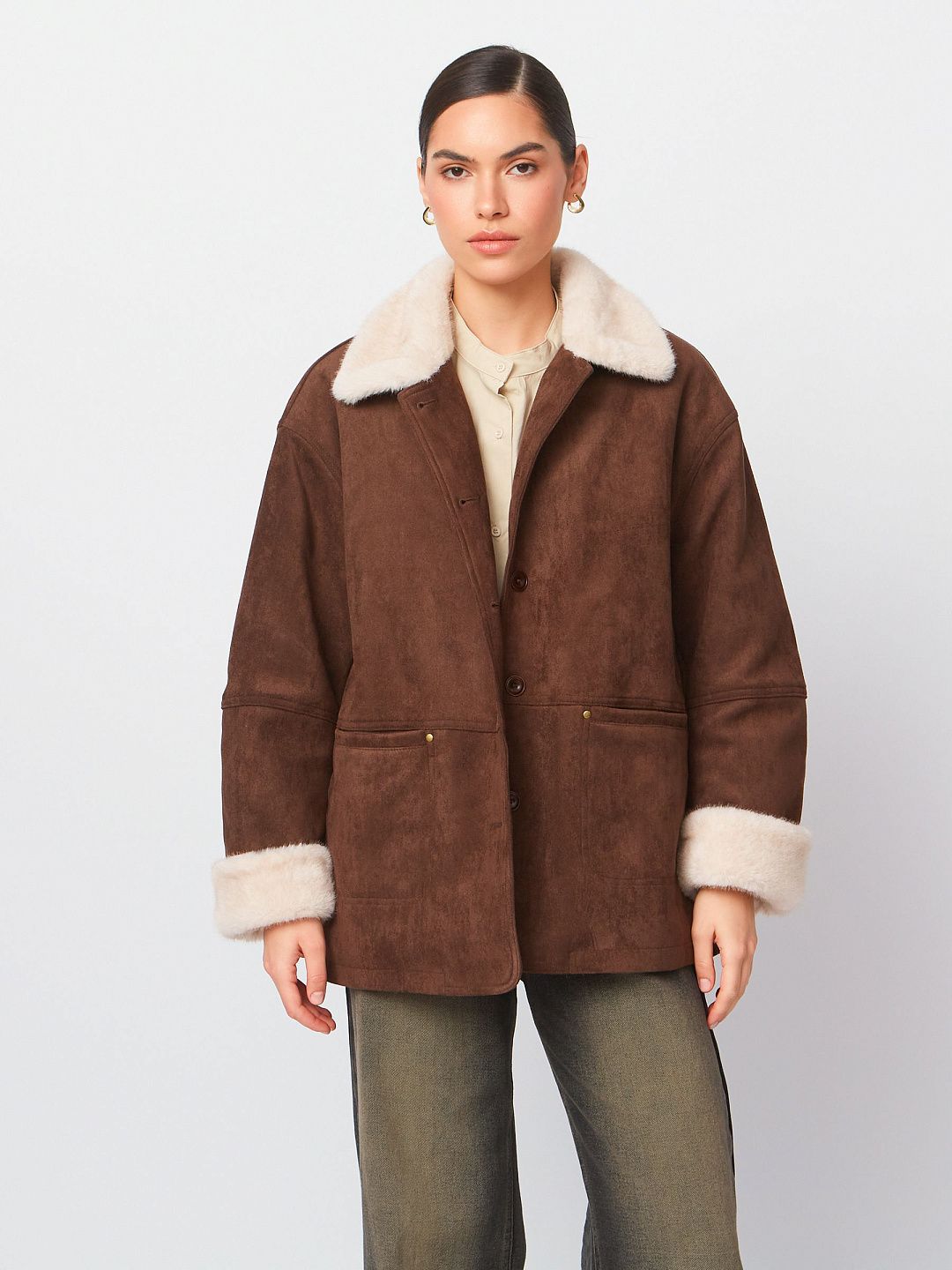 Дубленка-рубашка с карманами