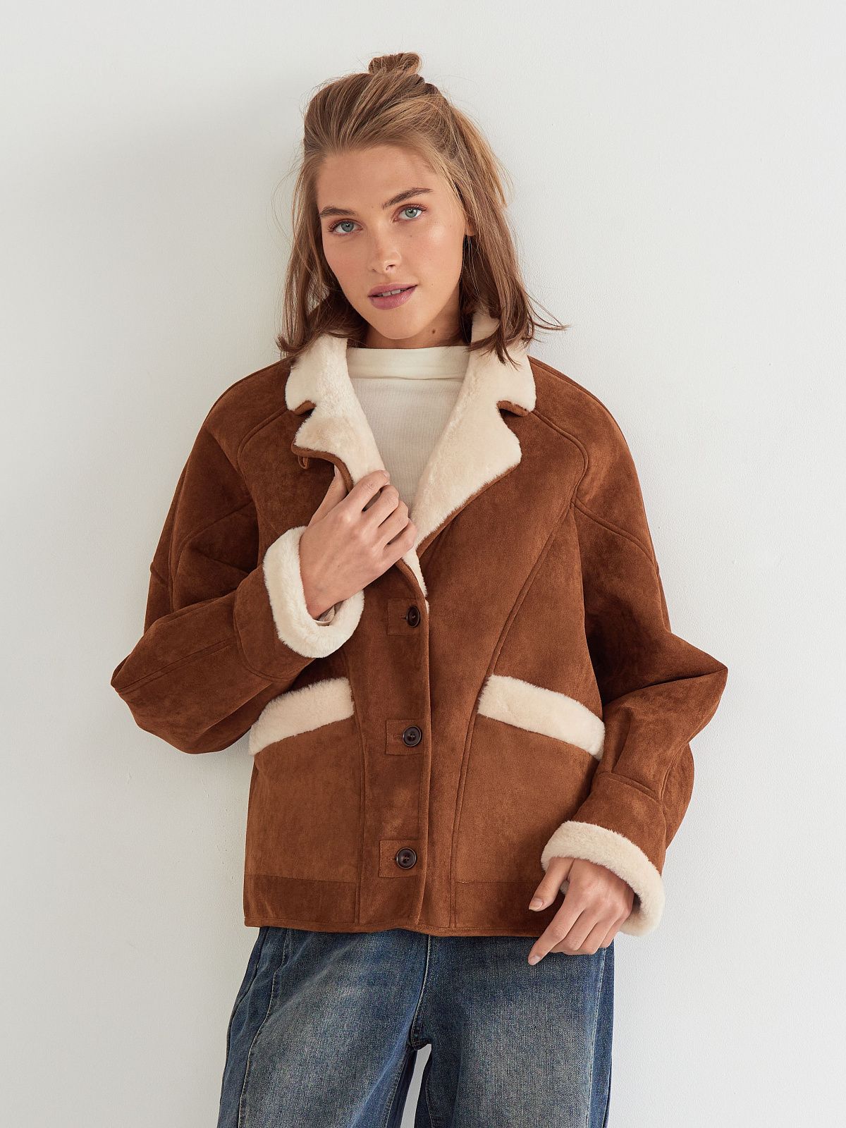 Дубленка на пуговицах пиджачного кроя