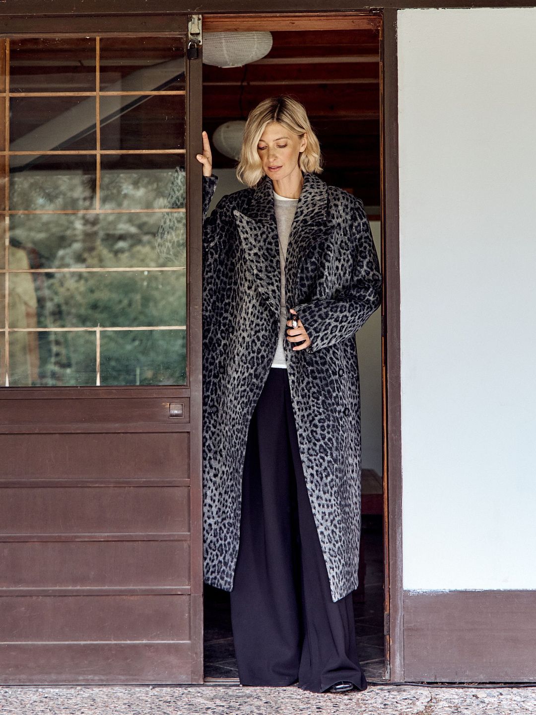 Двубортное пальто с леопардовым принтом и подкладкой Premium Lab
