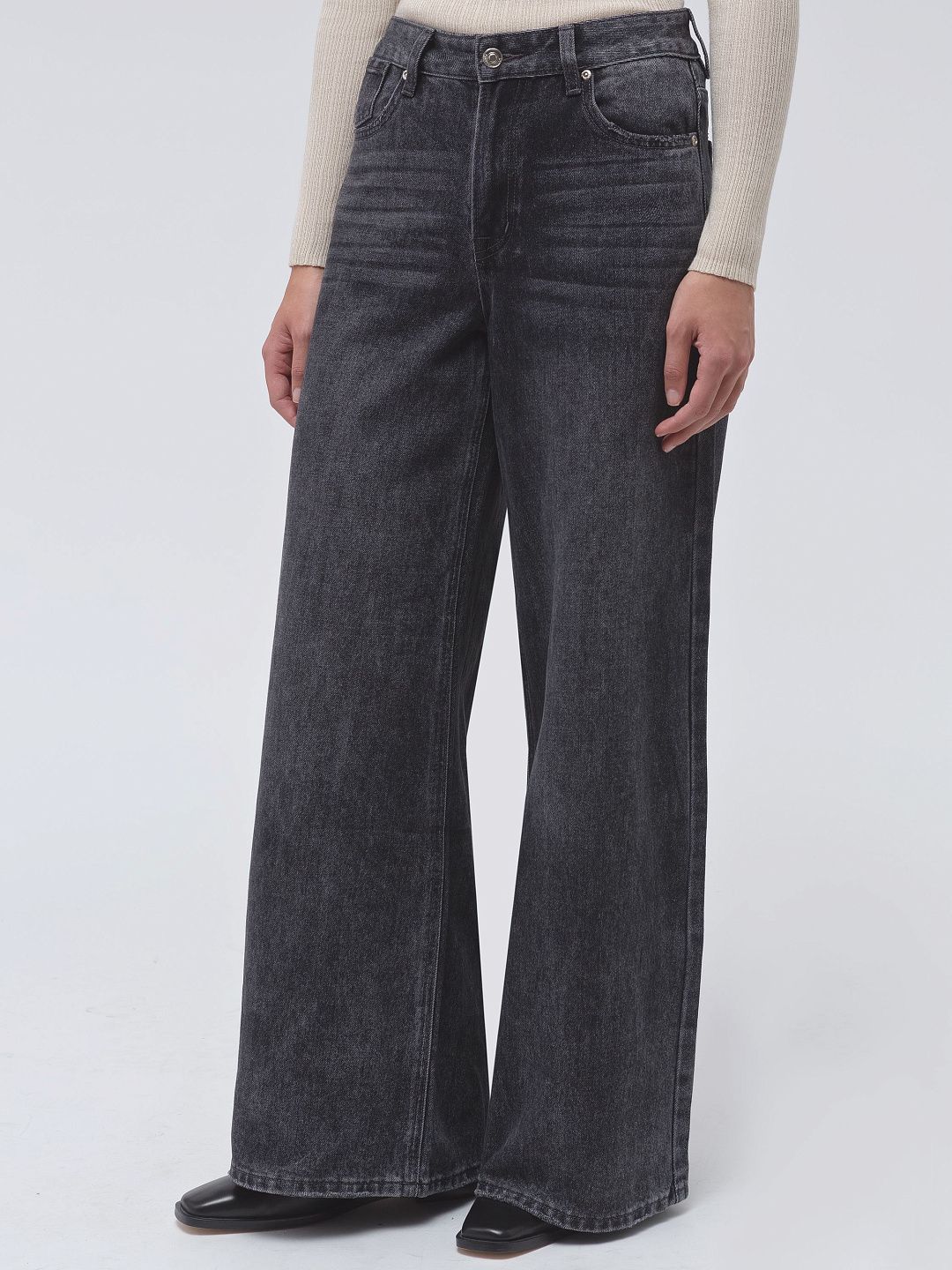 Джинсы широкий прямой крой с эффектом потертостей из 100% хлопка