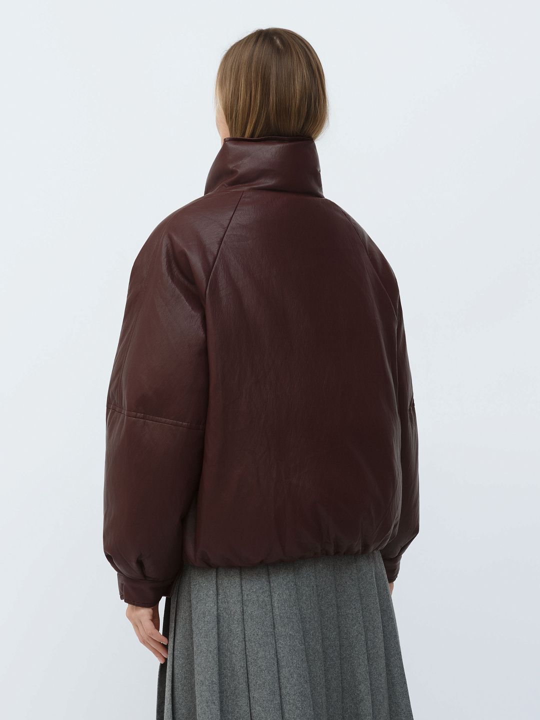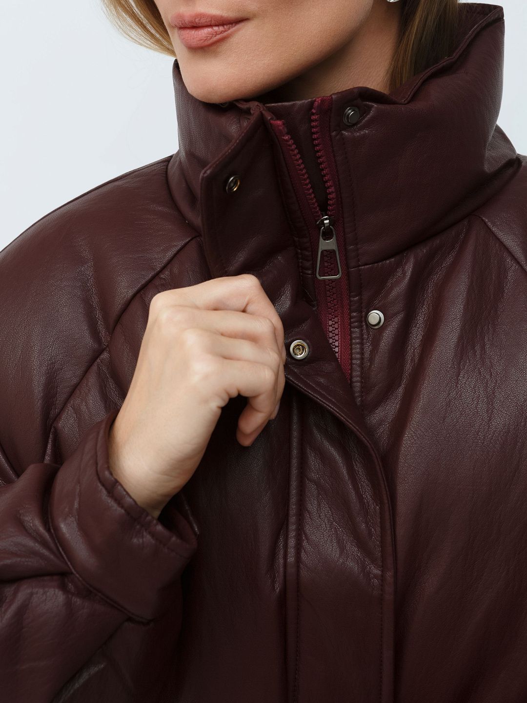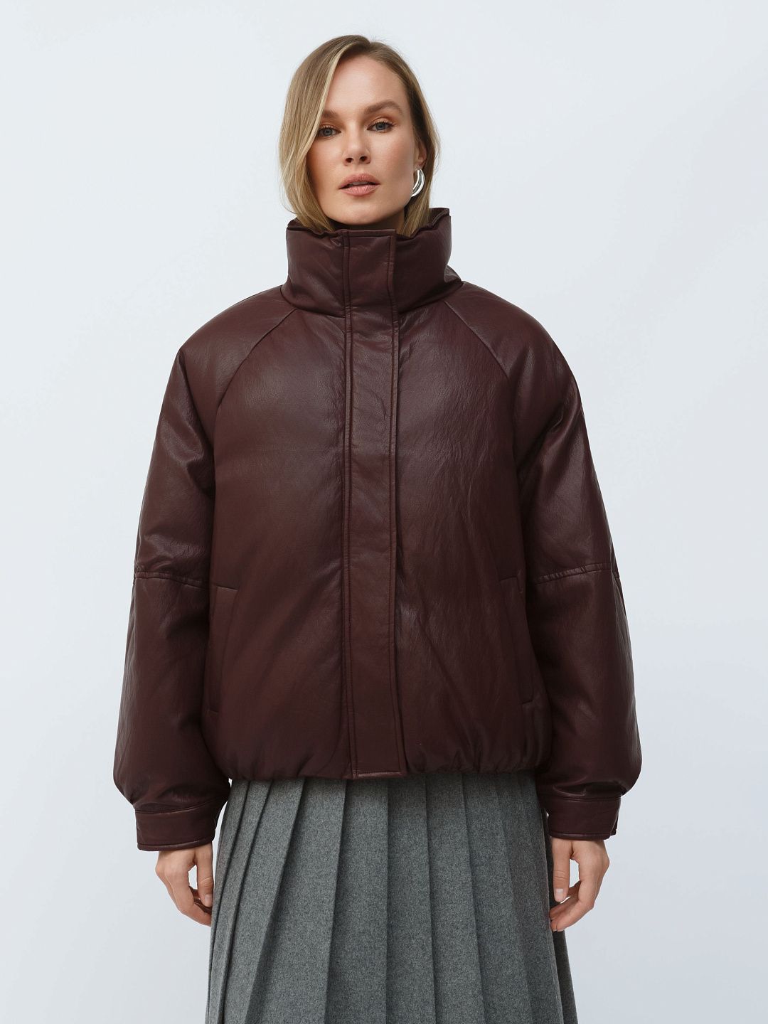 Куртка из экокожи утепленная пуховая с воротником-стойкой и рукавом реглан