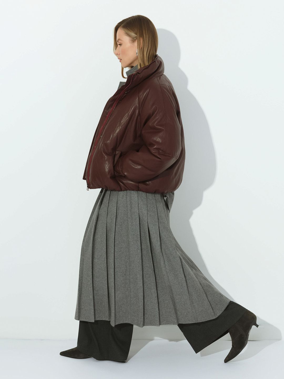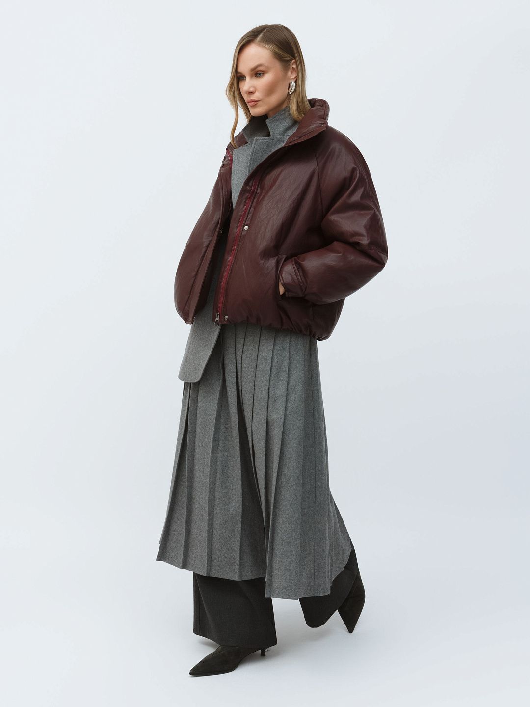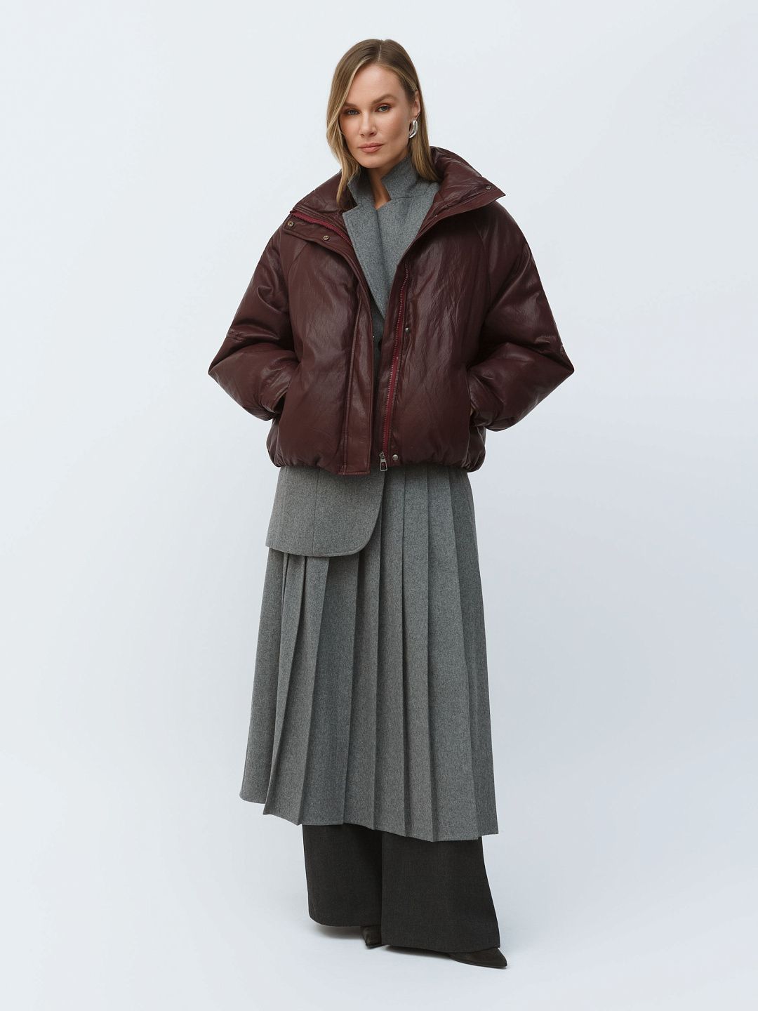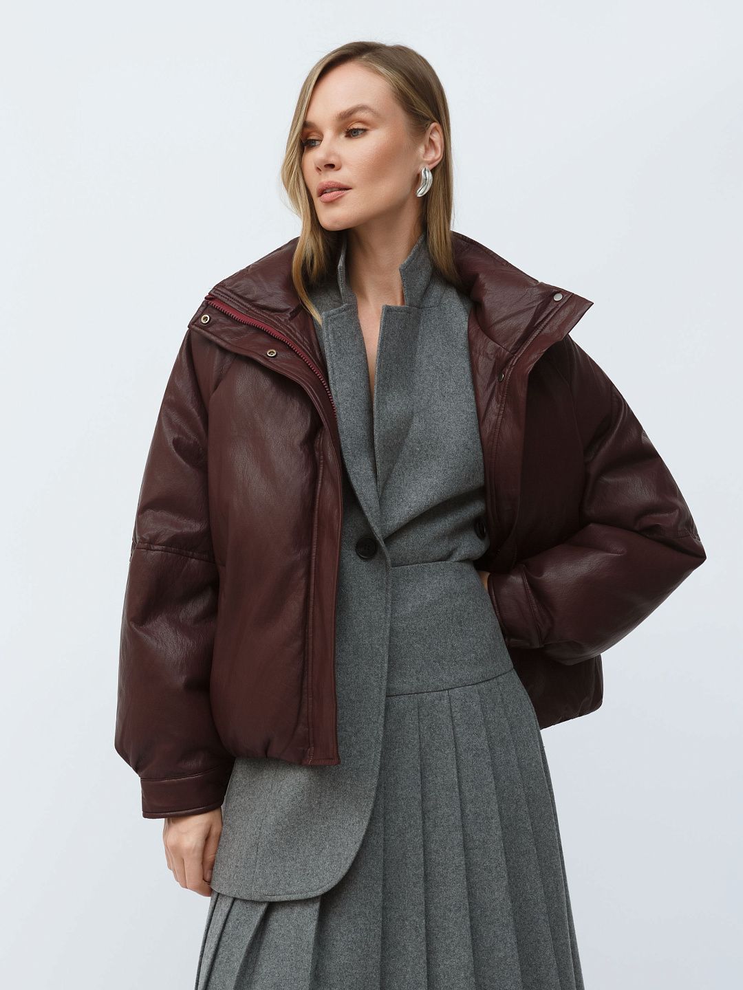Куртка из экокожи утепленная пуховая с воротником-стойкой и рукавом реглан