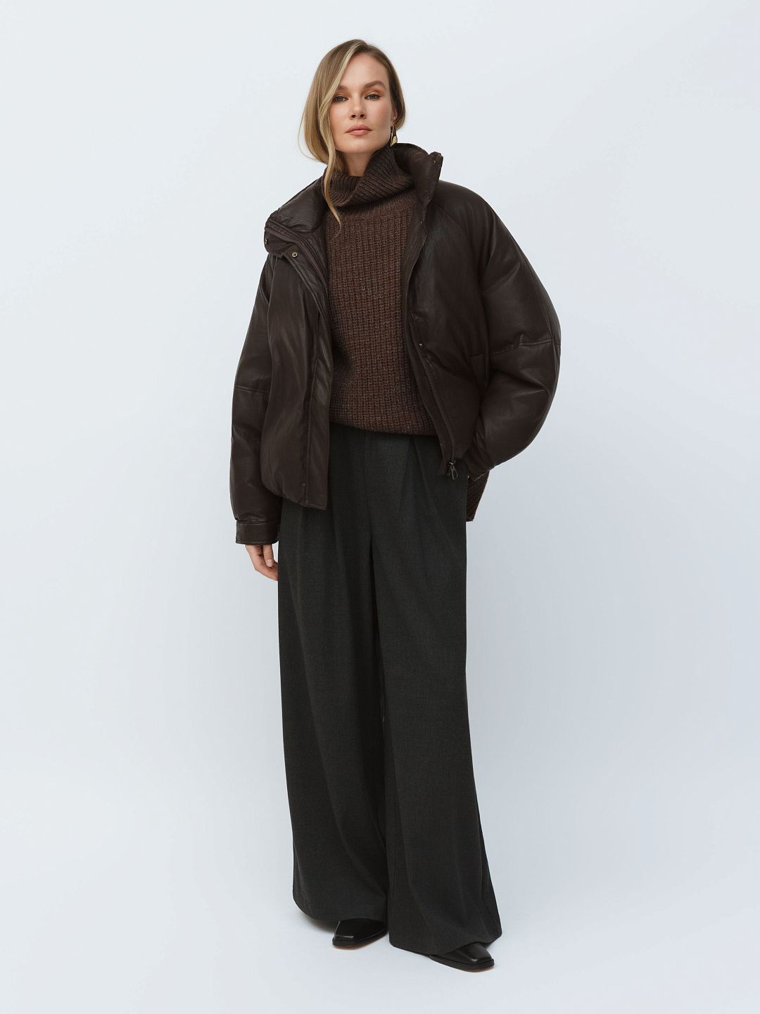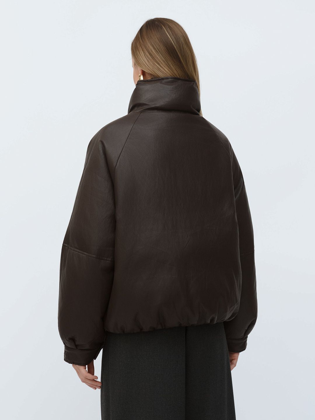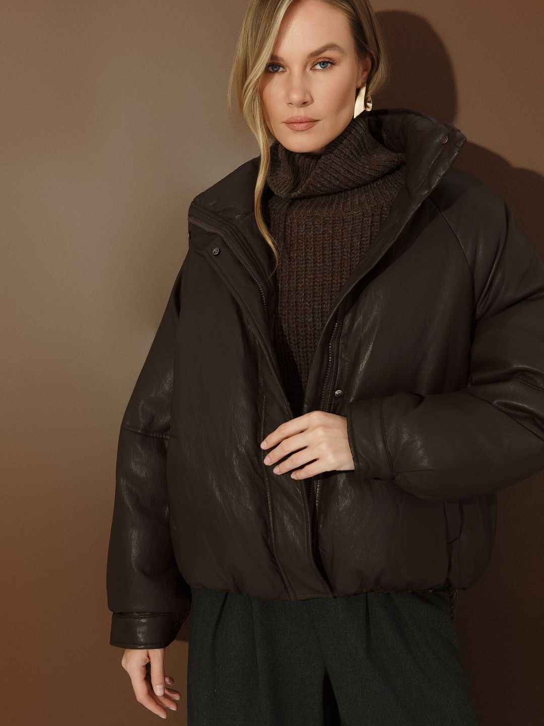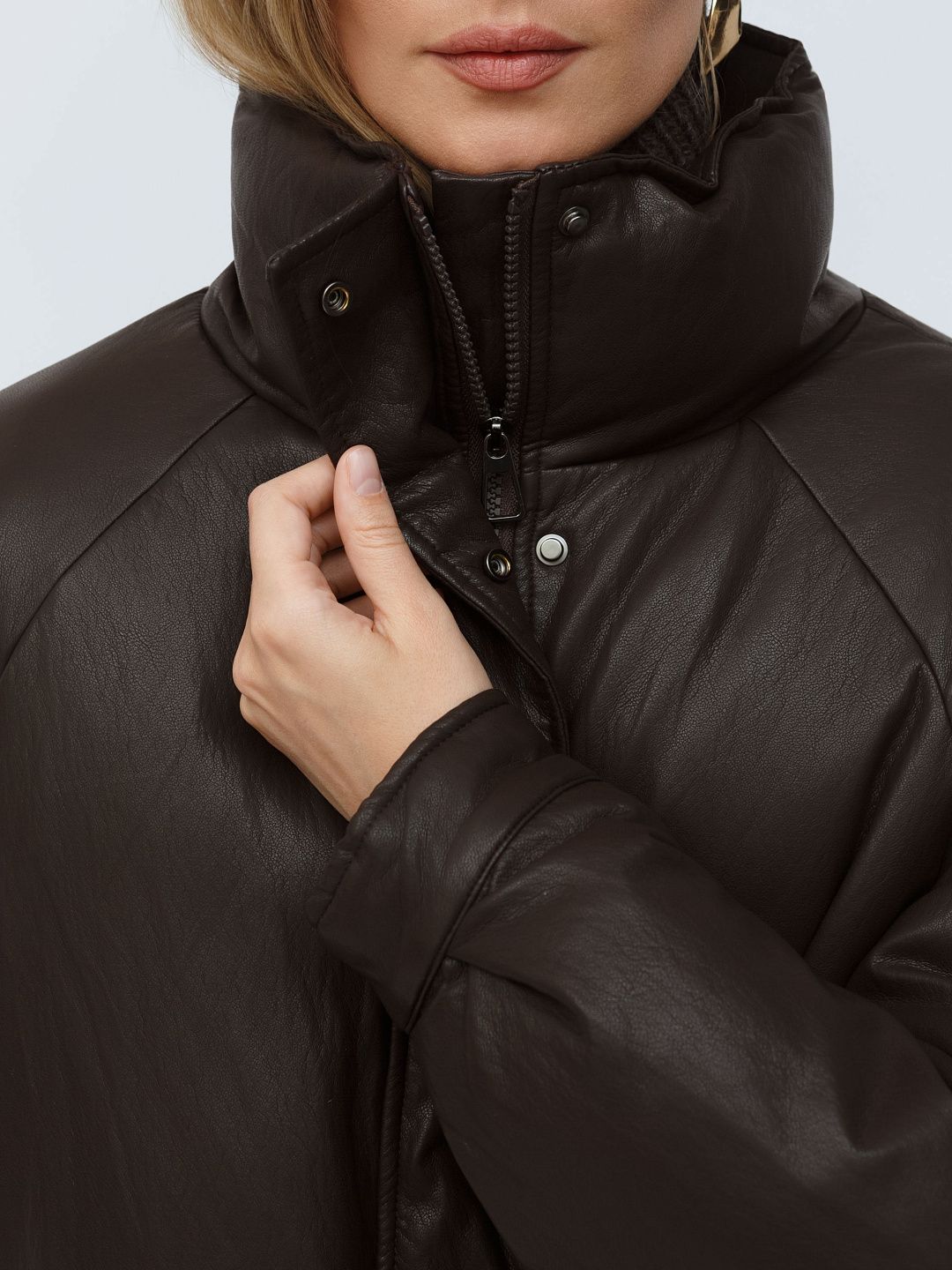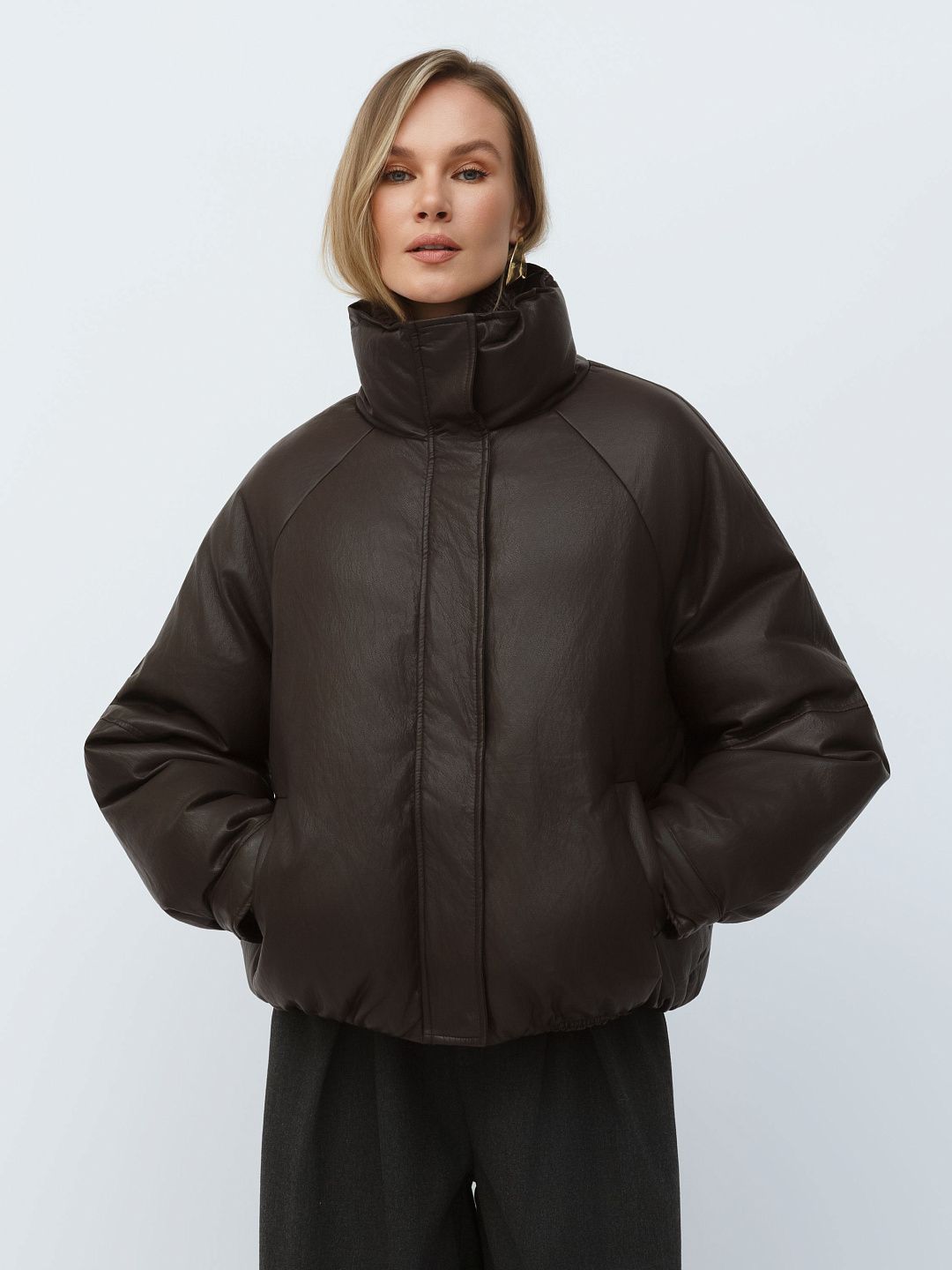 Куртка из экокожи утепленная пуховая с воротником-стойкой и рукавом реглан
