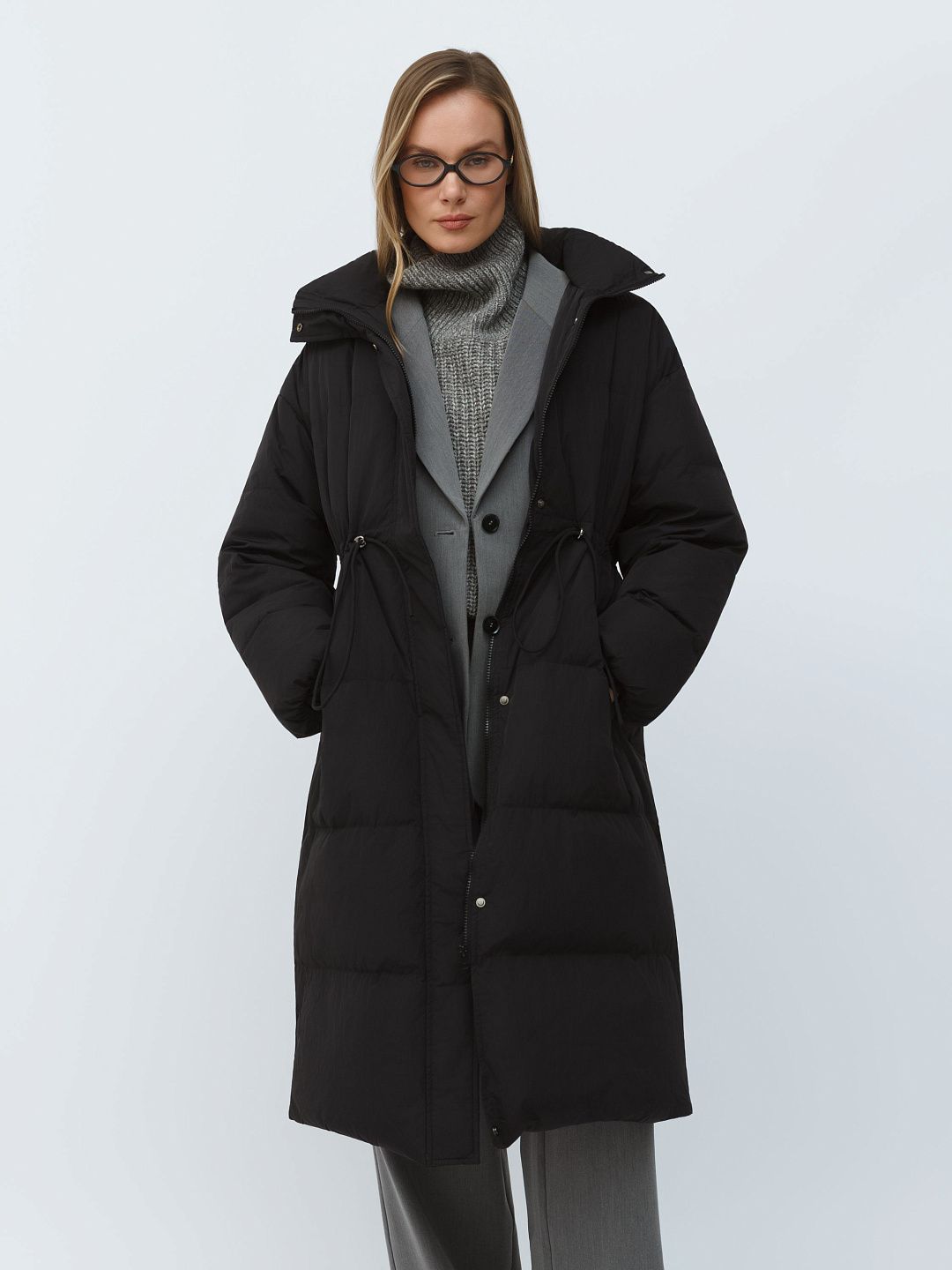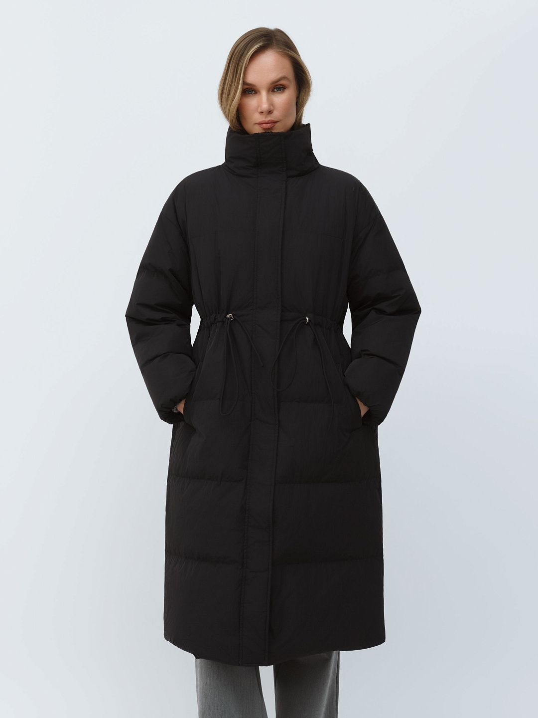 Пальто пуховое утепленное с регулируемым поясом и высоким воротником Premium Lab