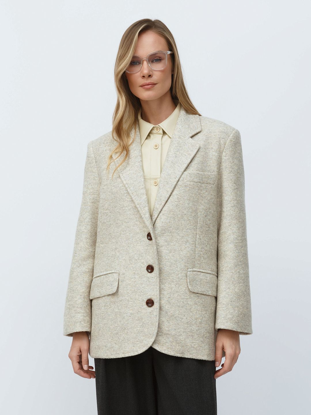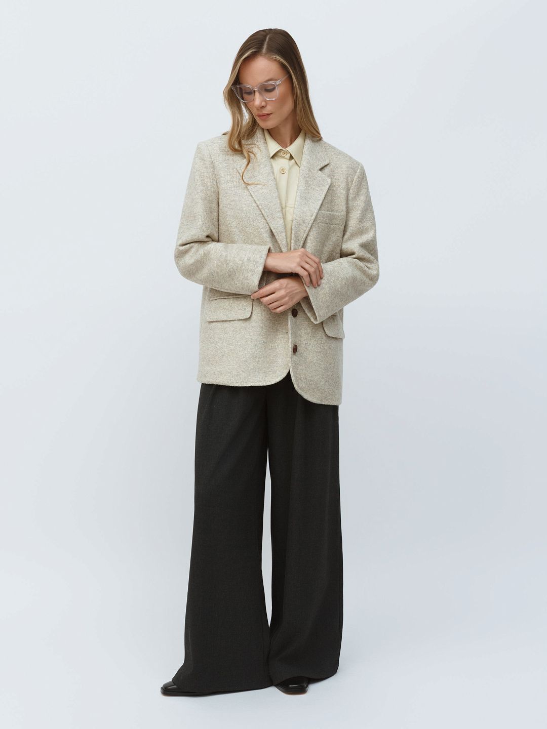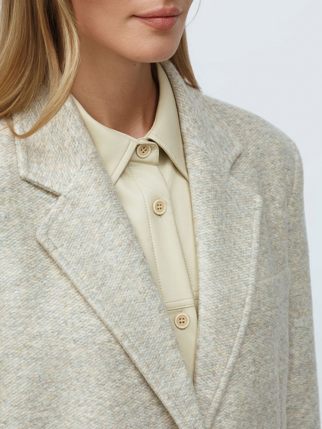 Пальто с накладными карманами и классическими лацканами прямого силуэта на пуговицах