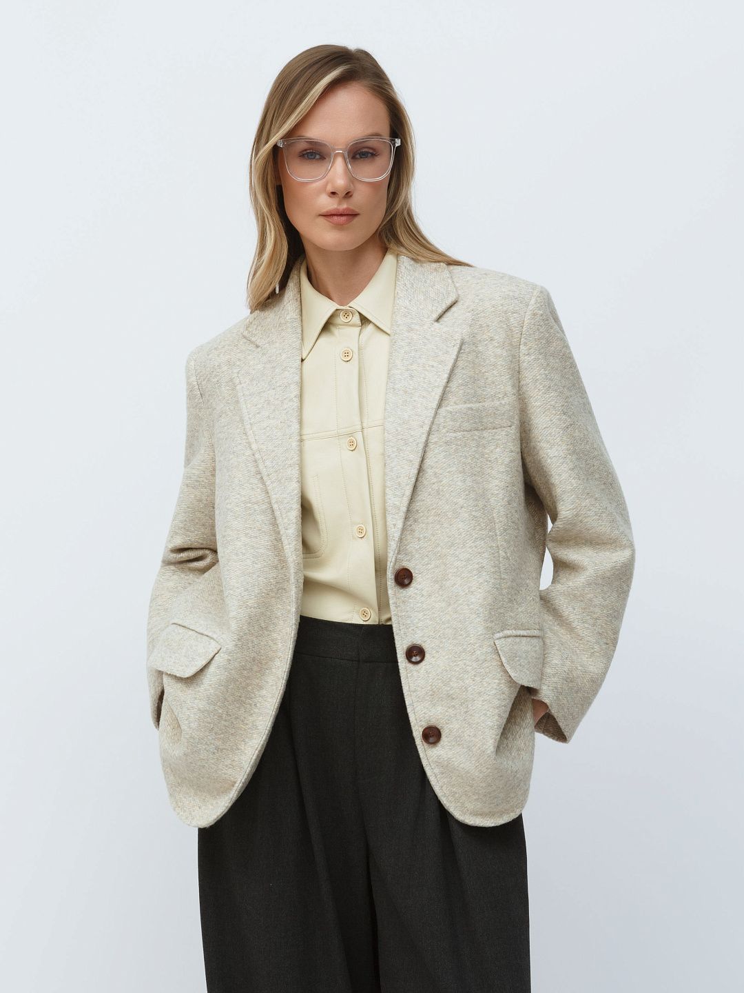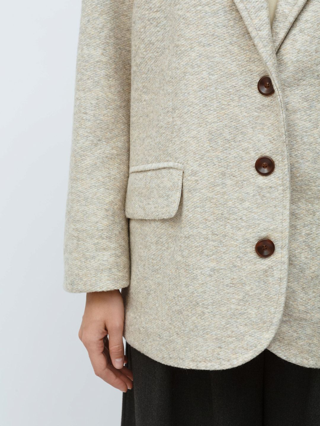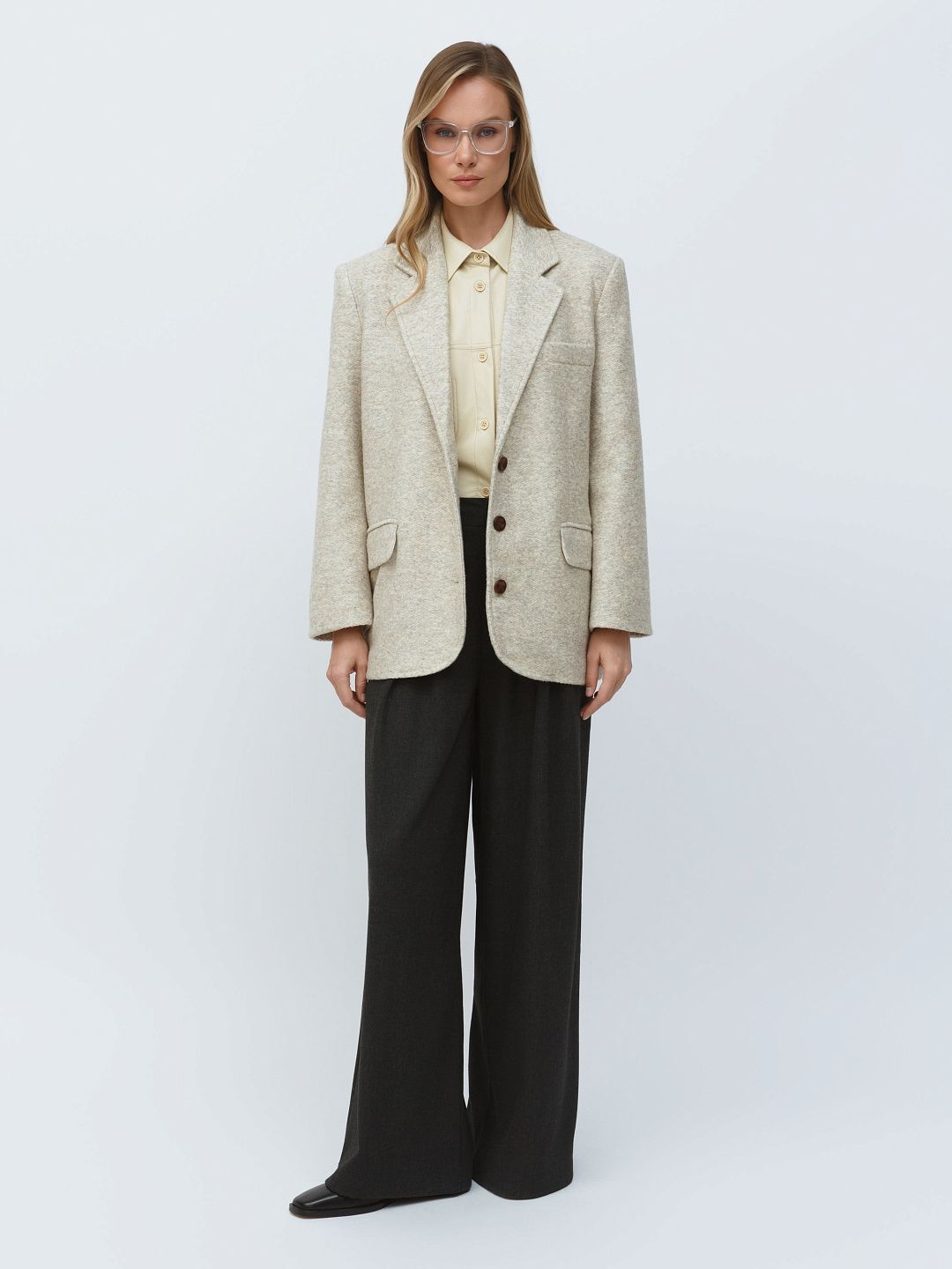 Пальто с накладными карманами и классическими лацканами прямого силуэта на пуговицах