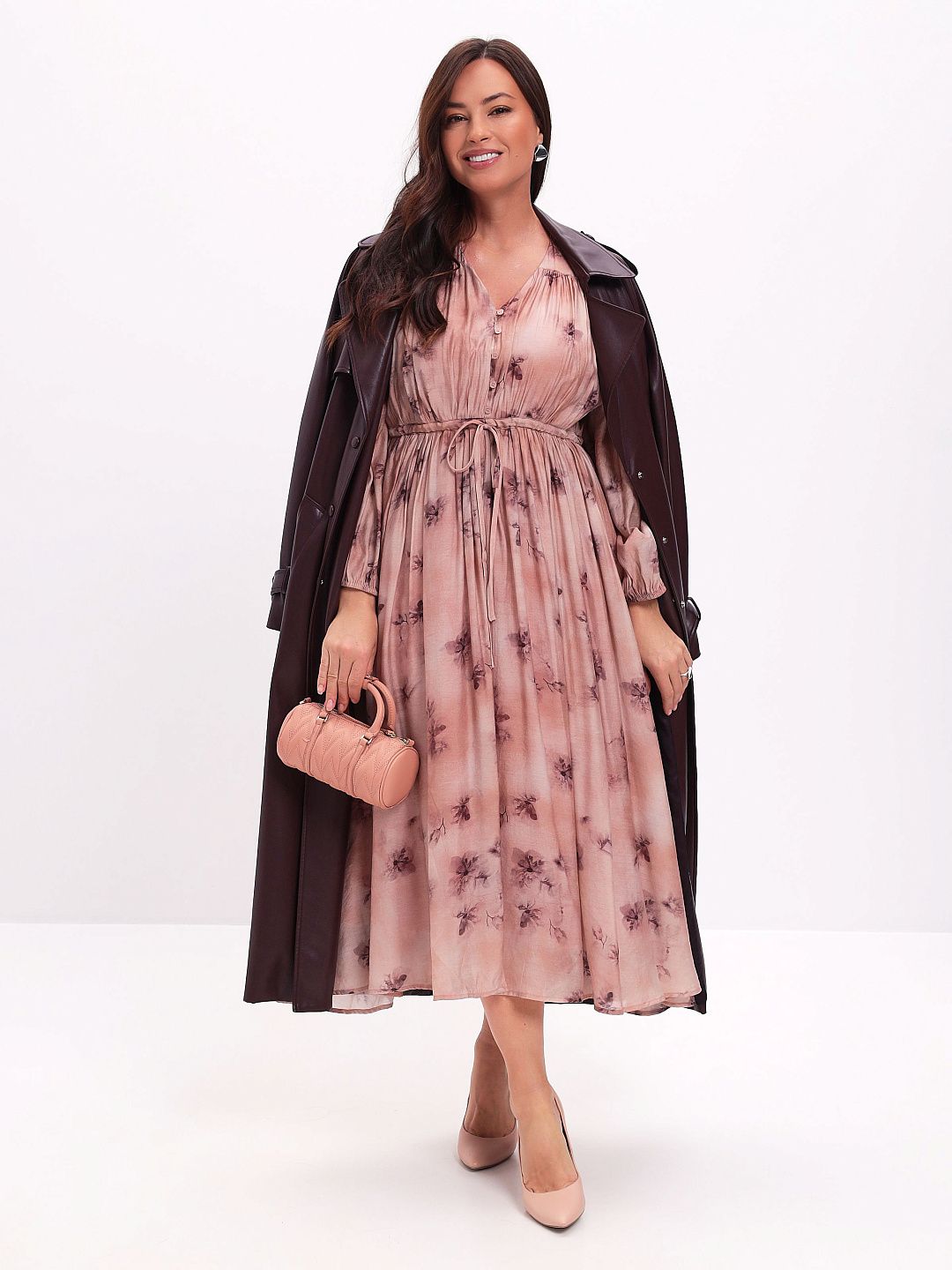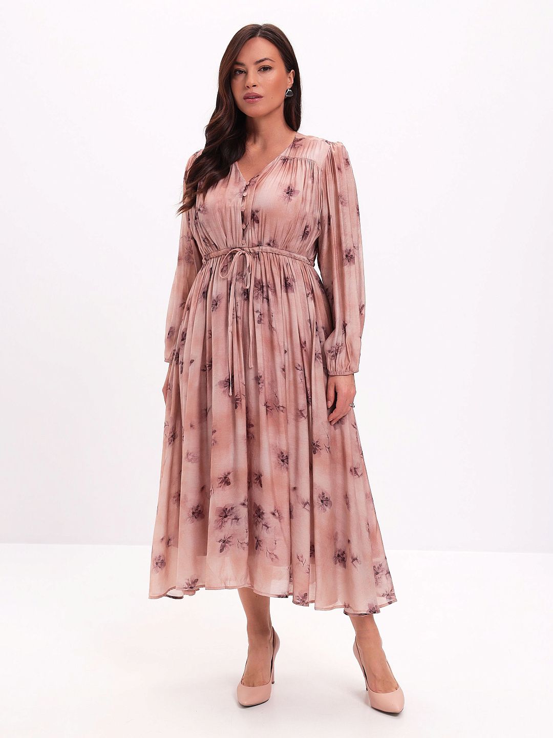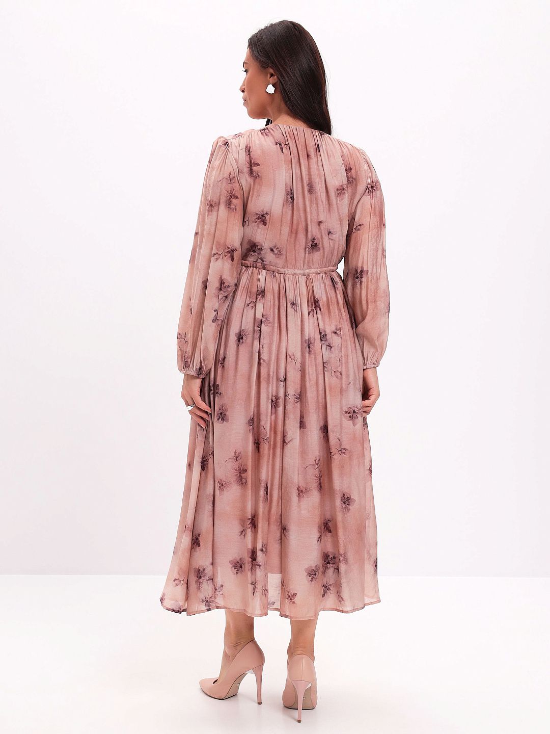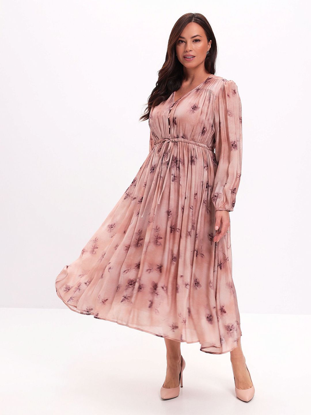 Платье из тенселя с V-образным вырезом и складчатой юбкой Premium Lab