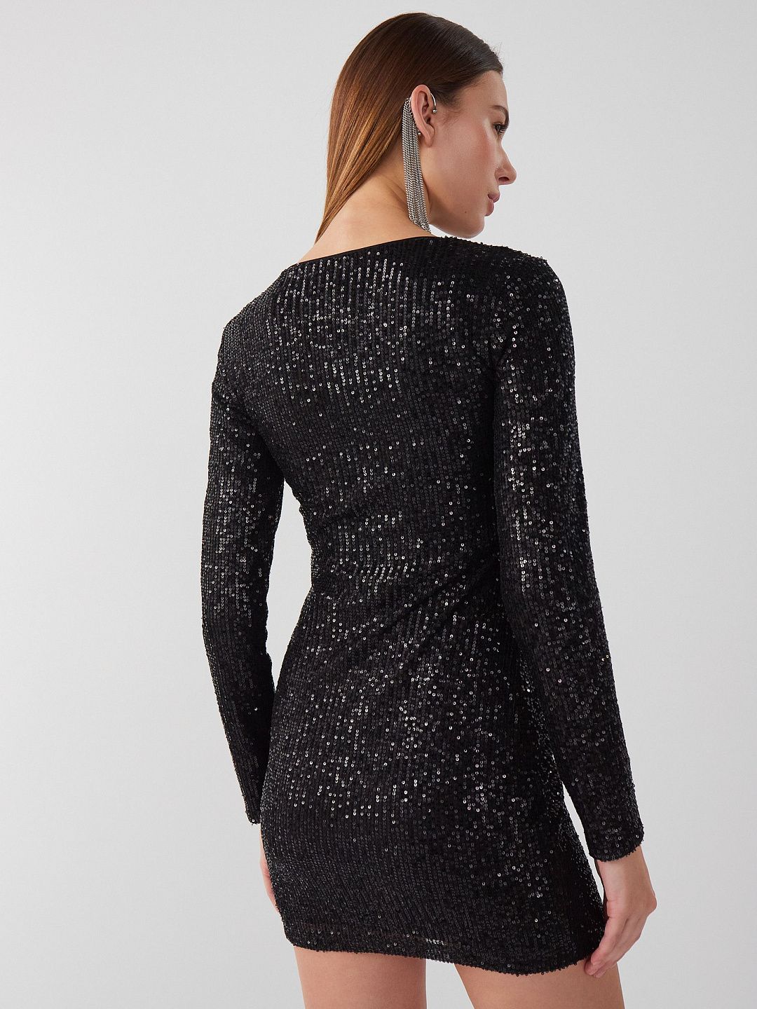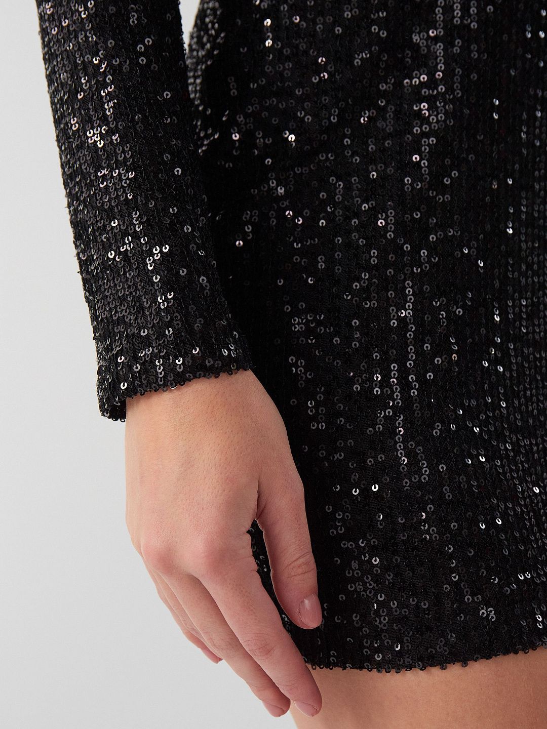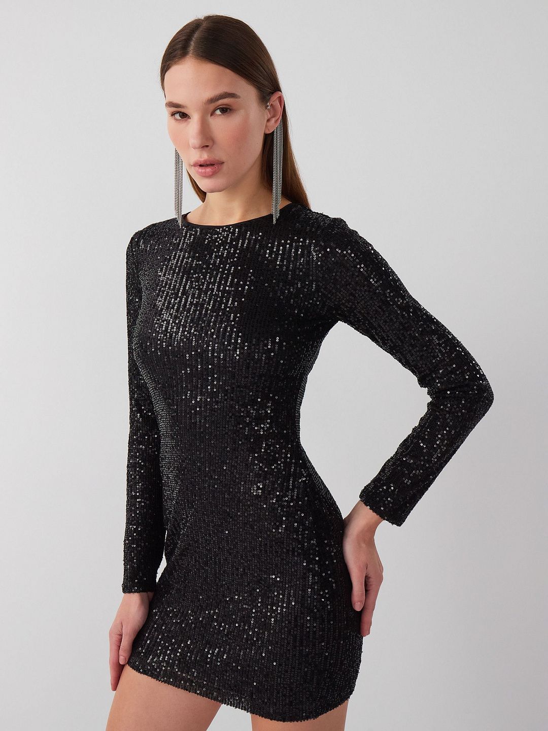Платье-мини облегающего силуэта с длинными рукавами покрытое пайетками