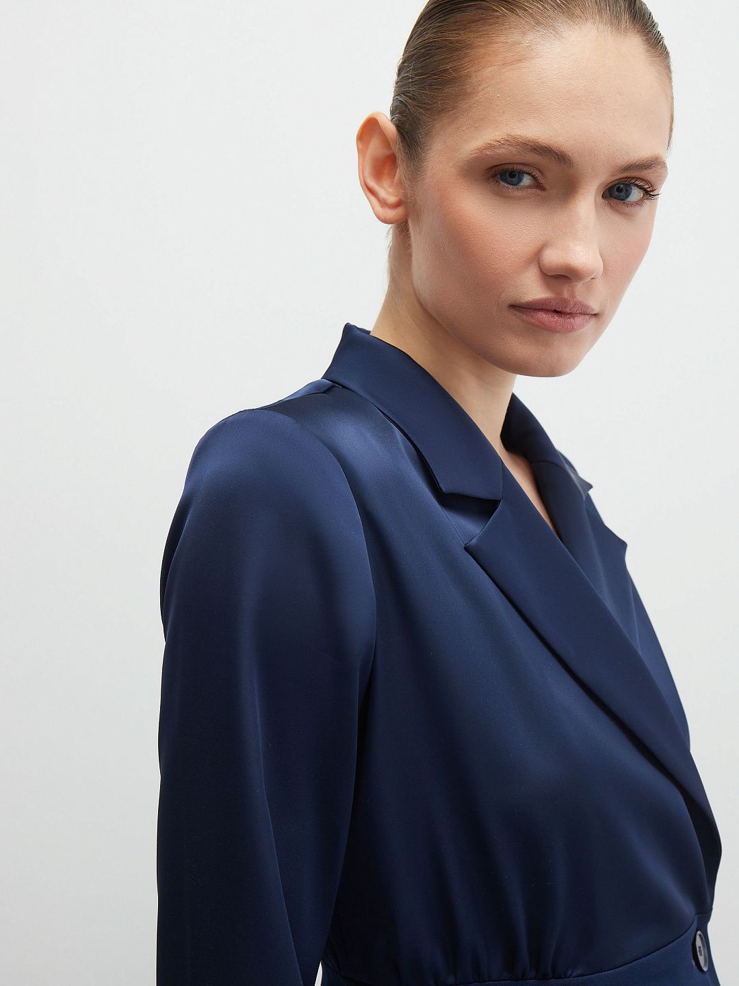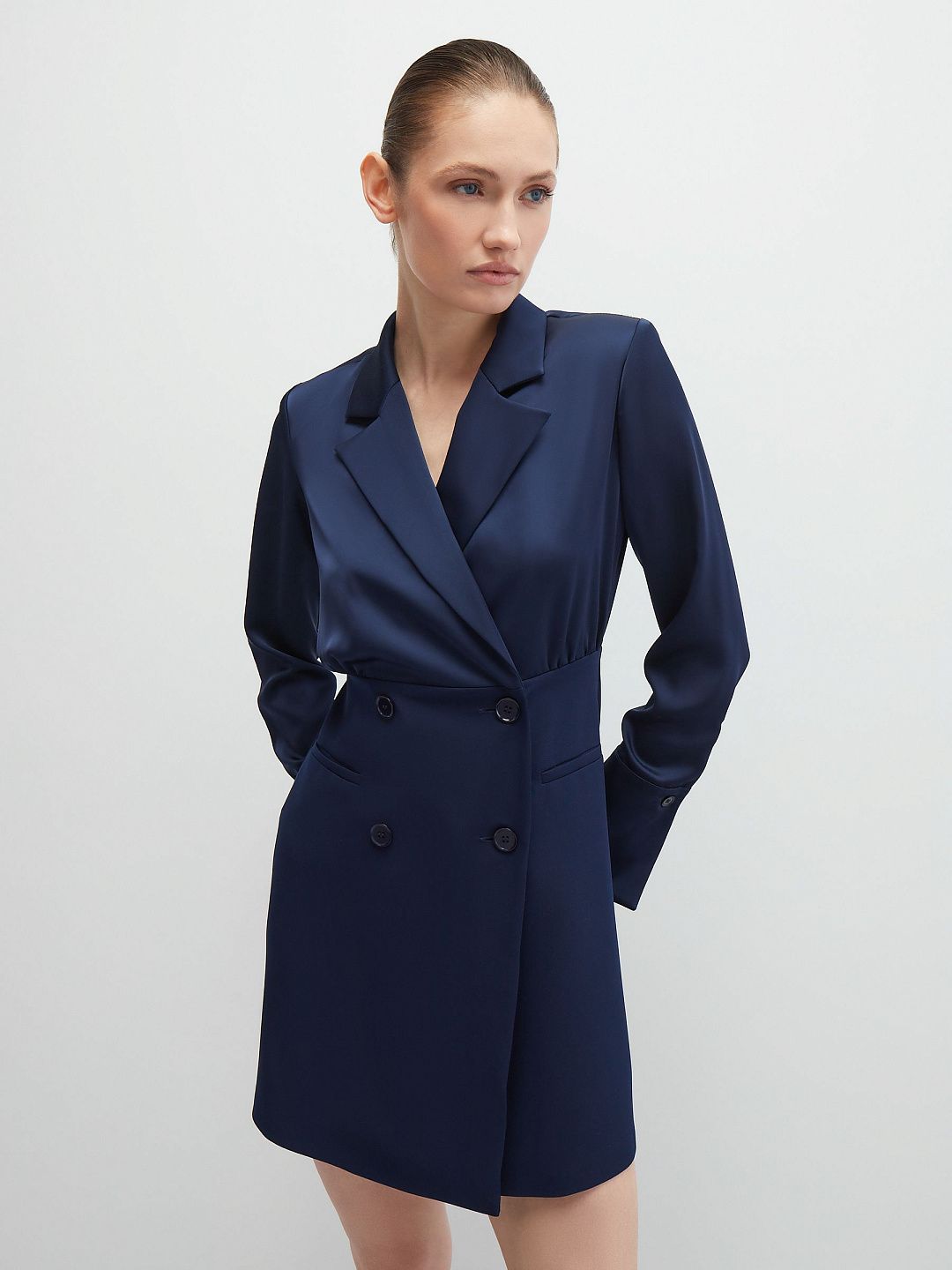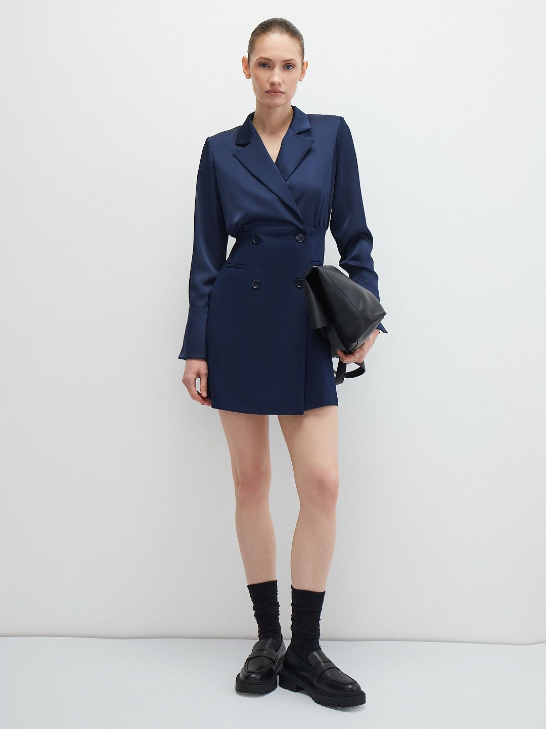 Платье-пиджак приталенное с V-образным вырезом и двойной застежкой на пуговицы с дообавлением вискозы
