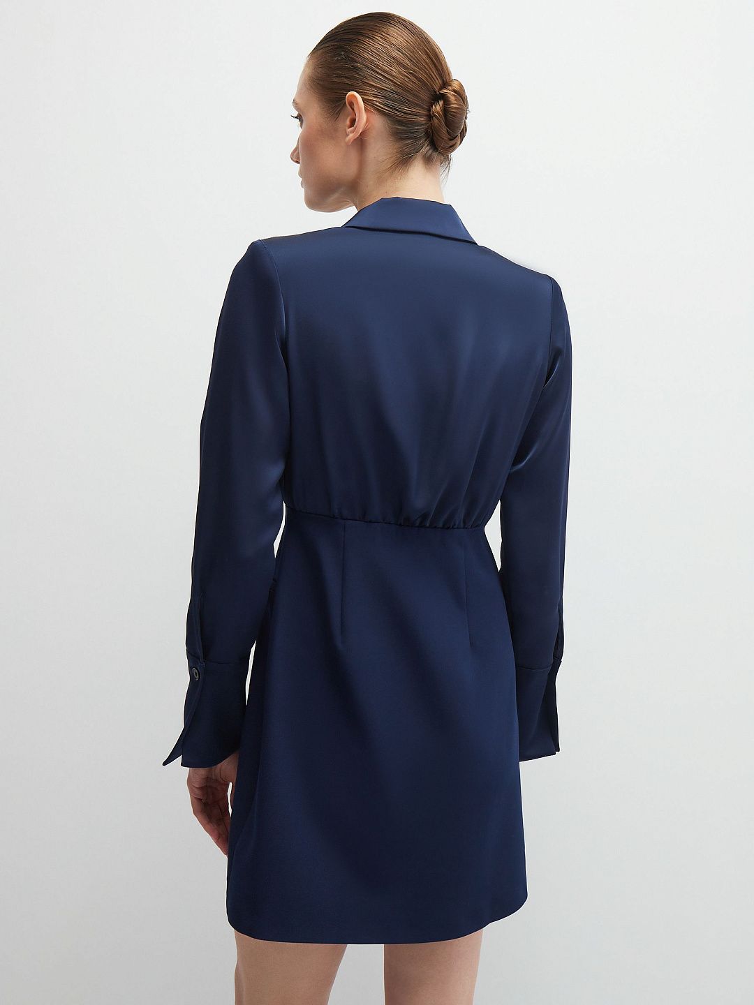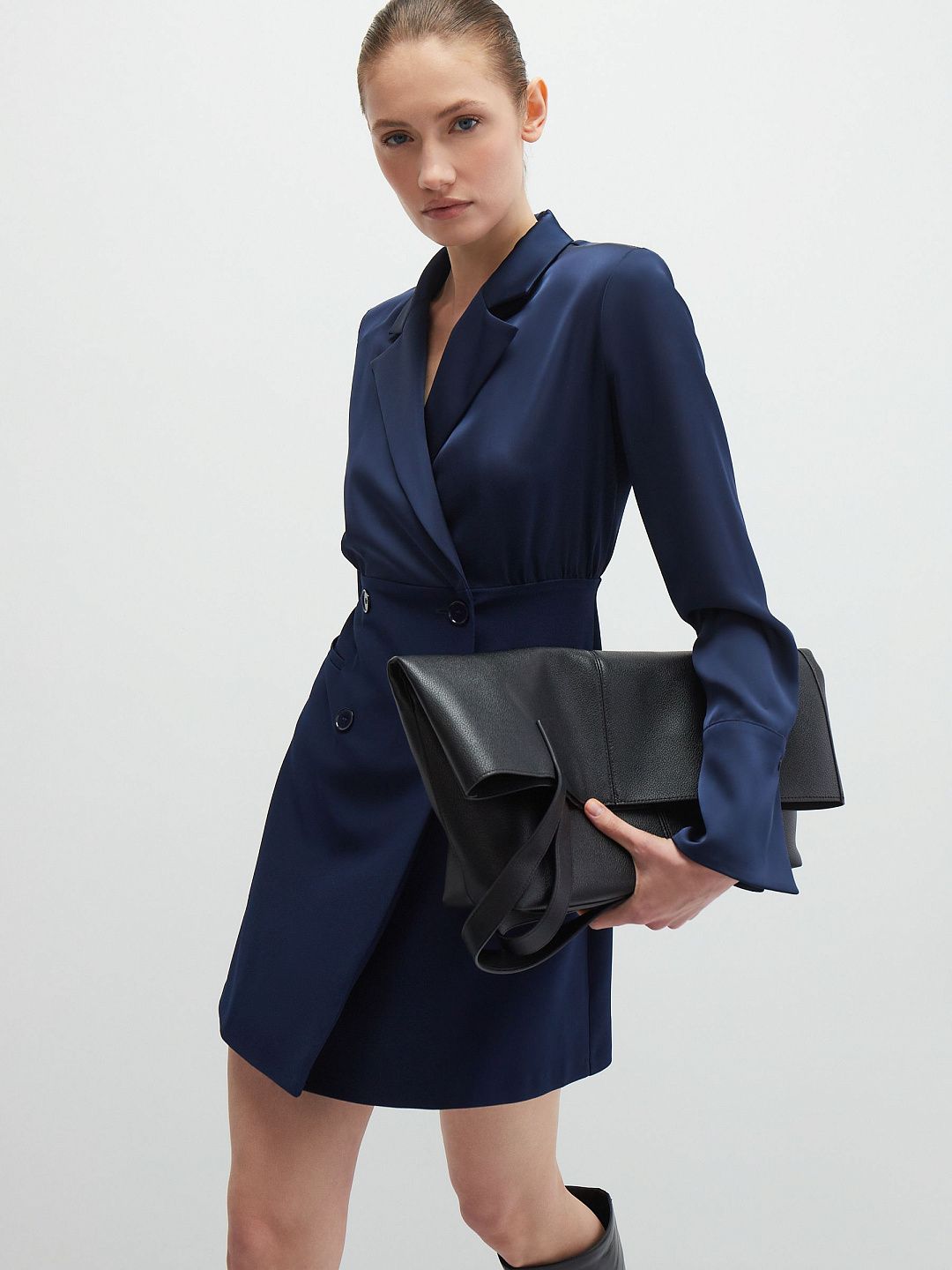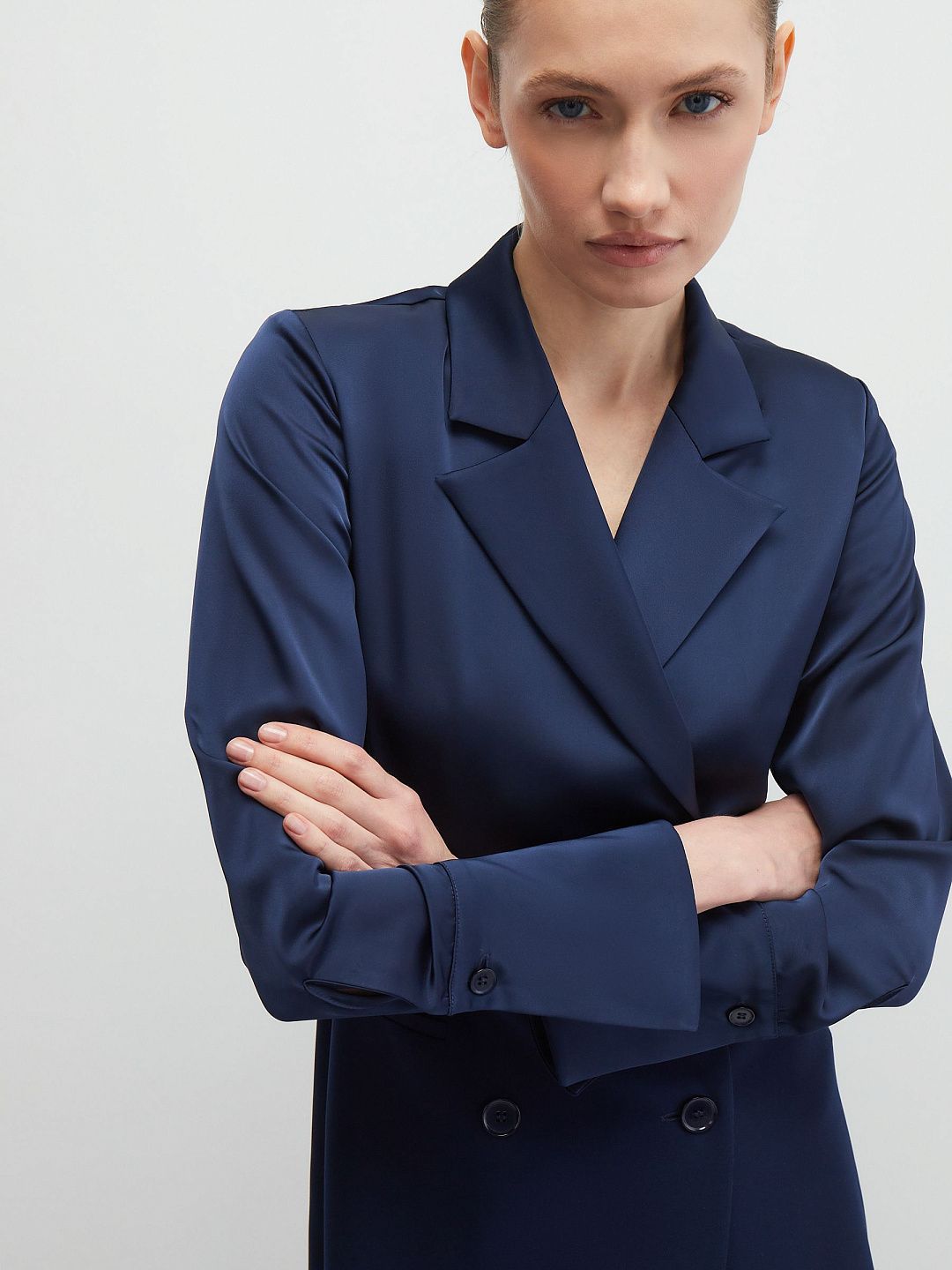 Платье-пиджак приталенное с V-образным вырезом и двойной застежкой на пуговицы с дообавлением вискозы