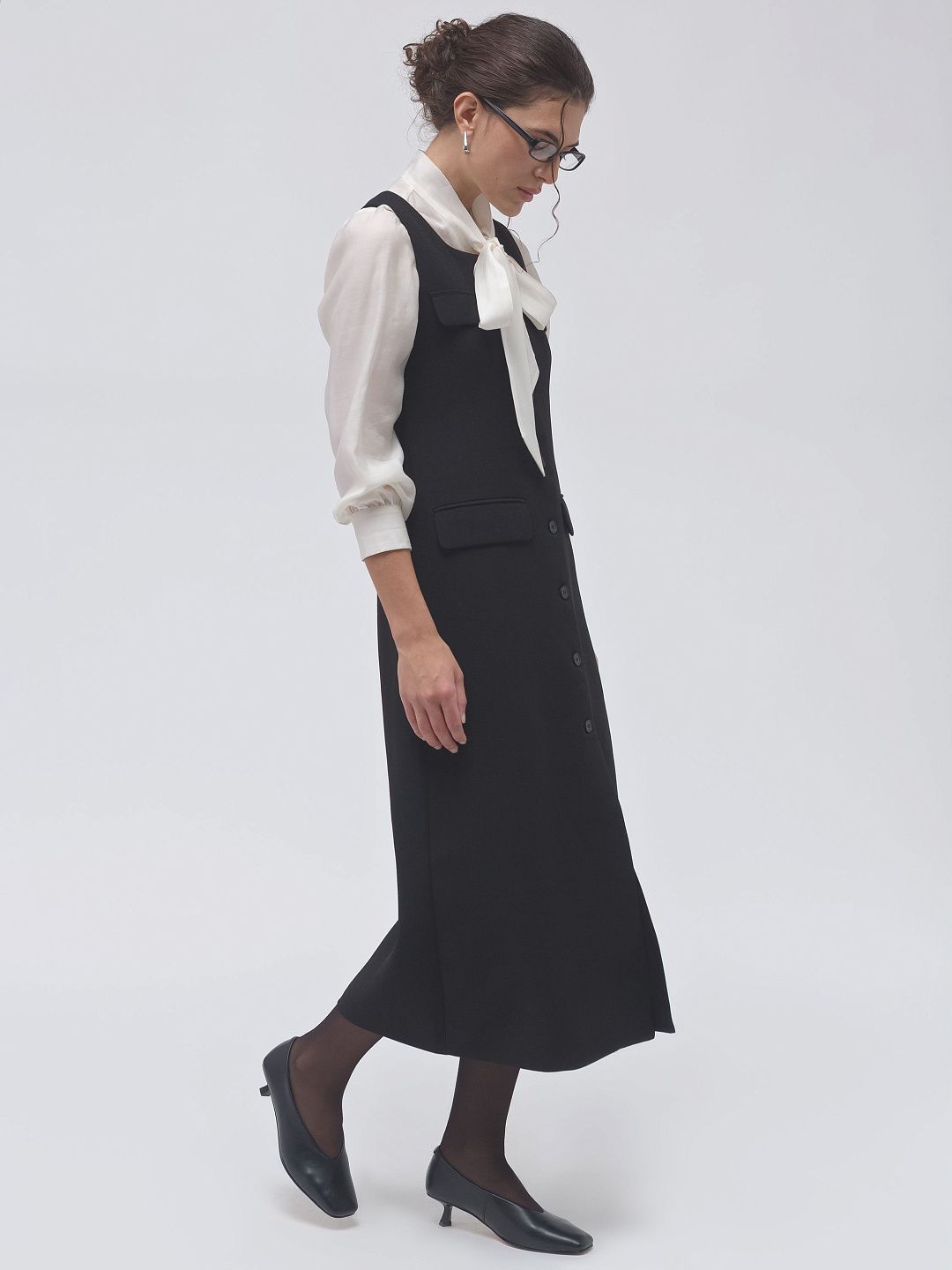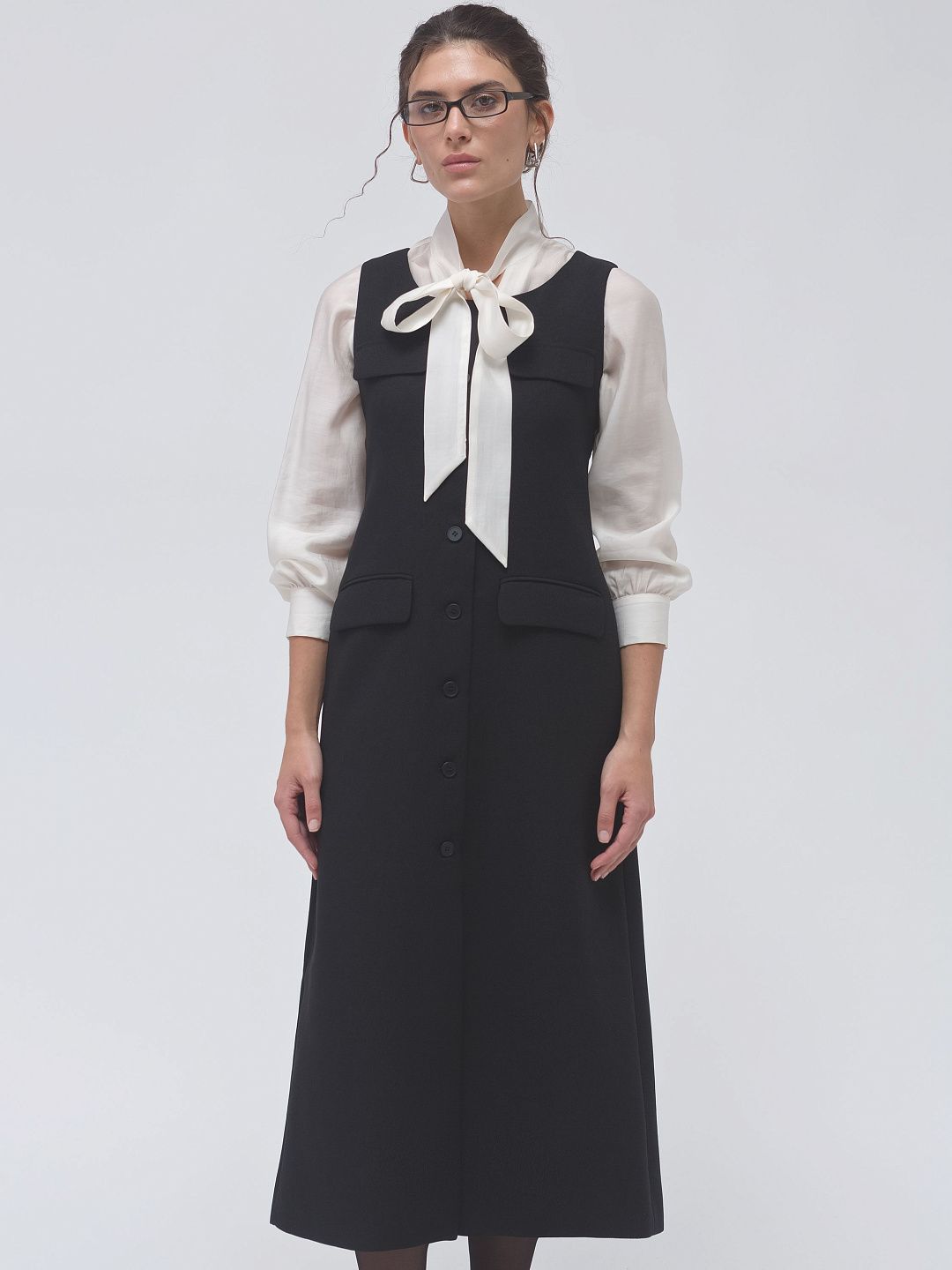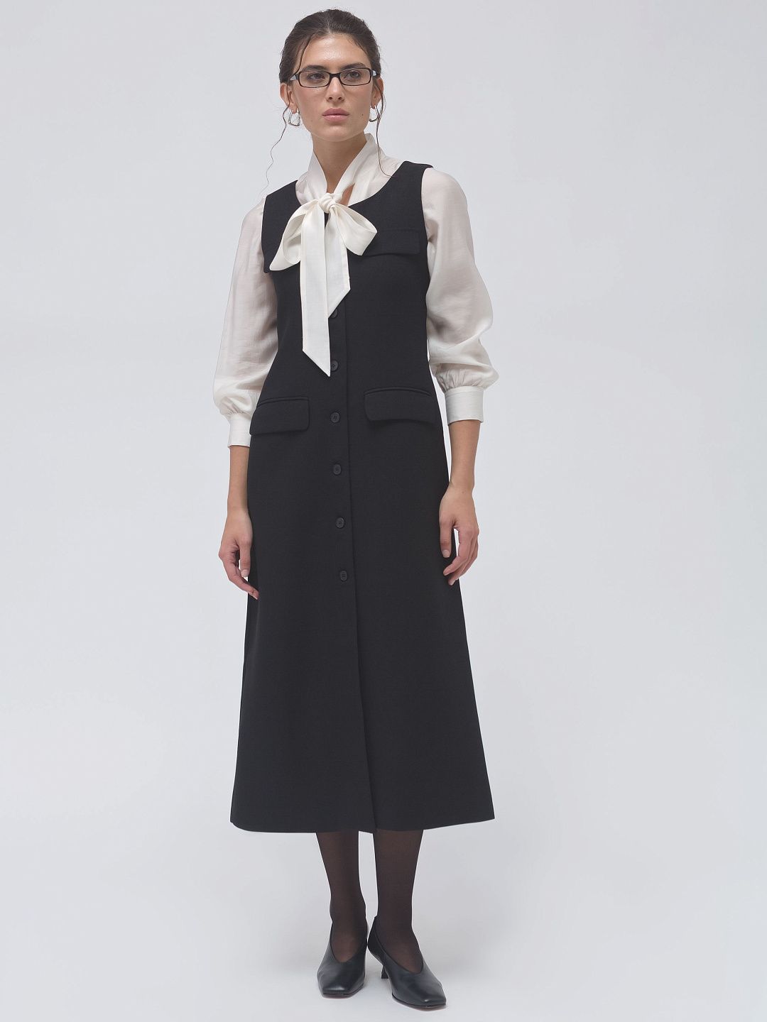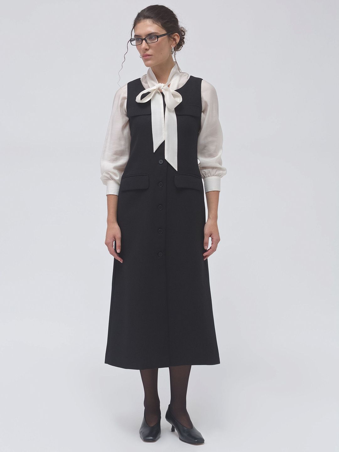 Платье прямое с пуговицами и карманами с клапанами без рукавов Premium Lab