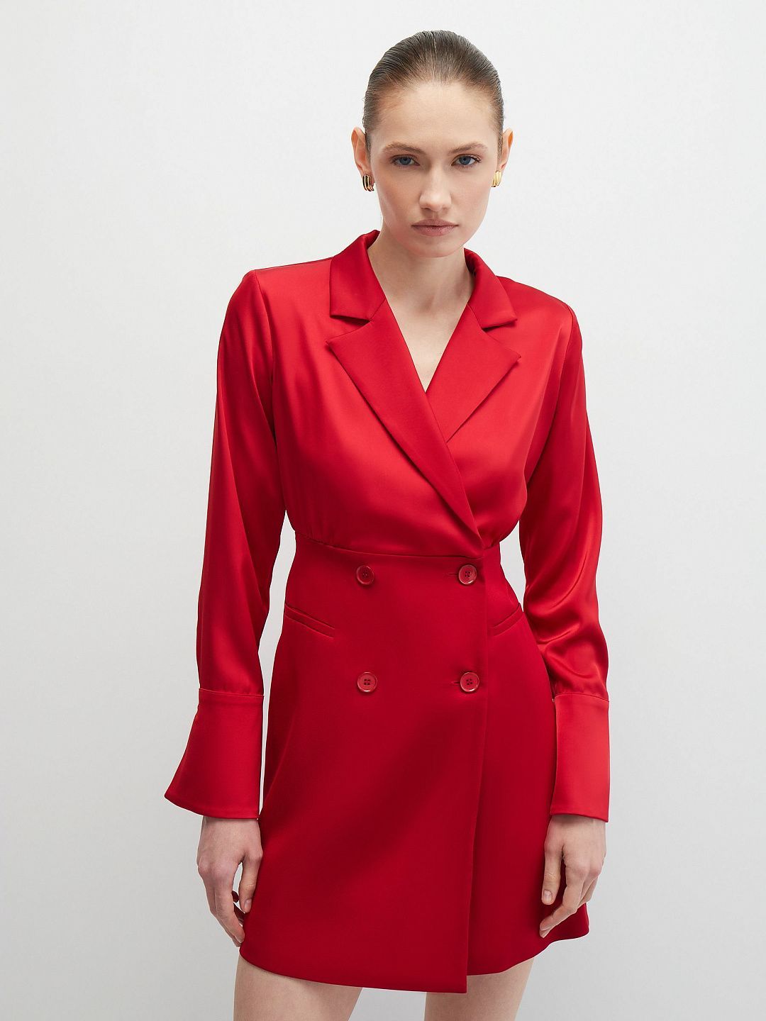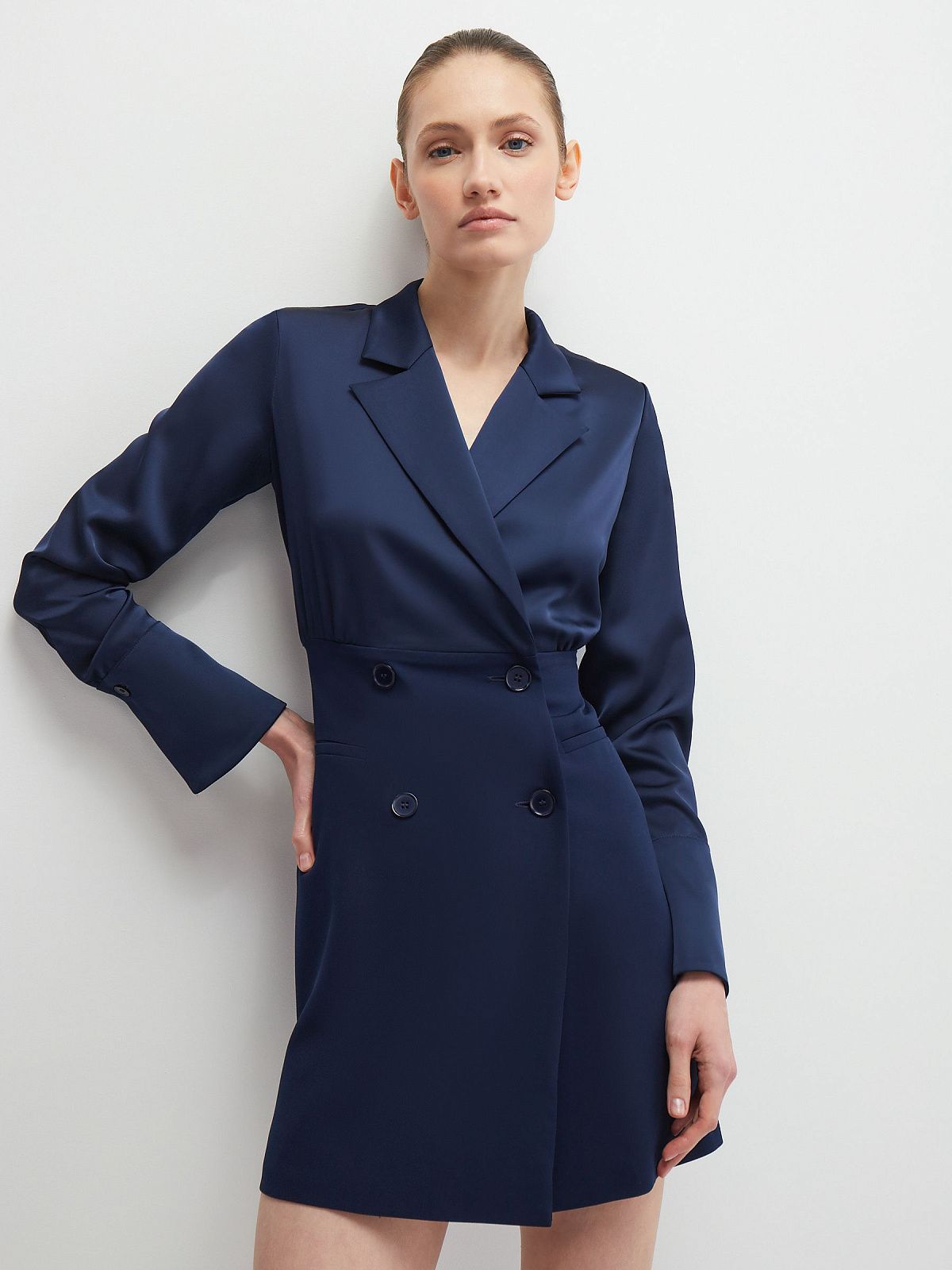 Платье с V-образным вырезом и двойной застежкой на пуговицы с дообавлением вискозы