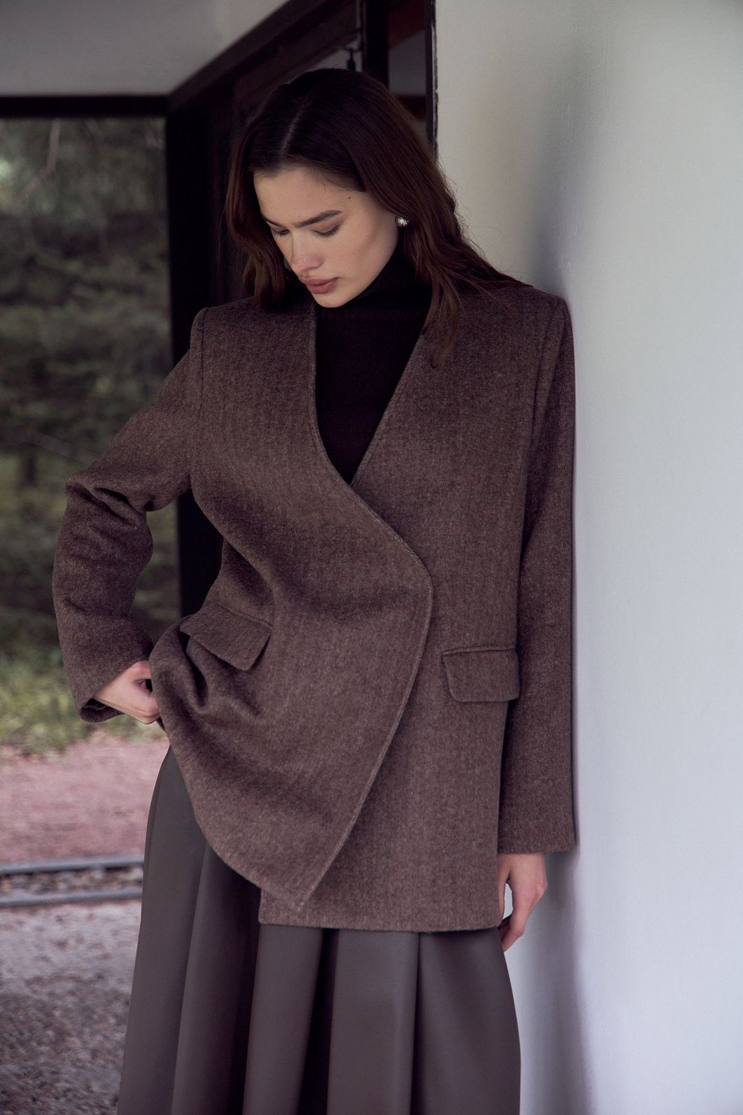 Полупальто из шерстяной смеси прямого силуэта с классическим воротником Premium Lab