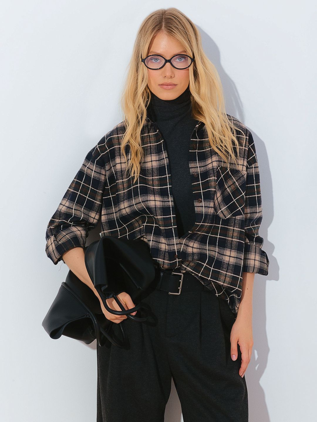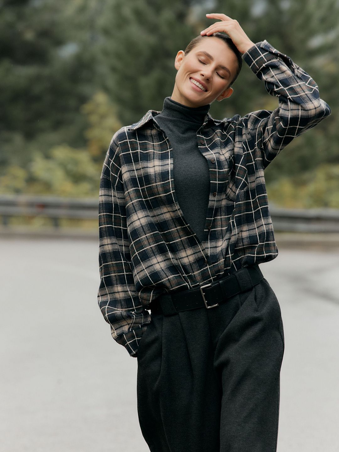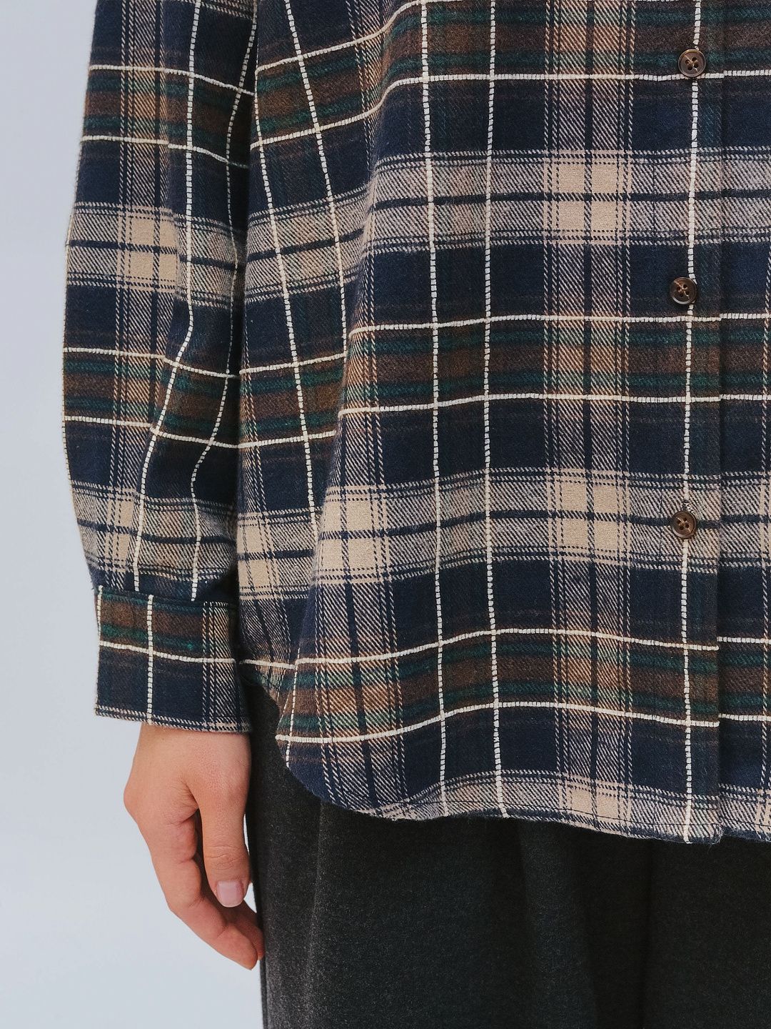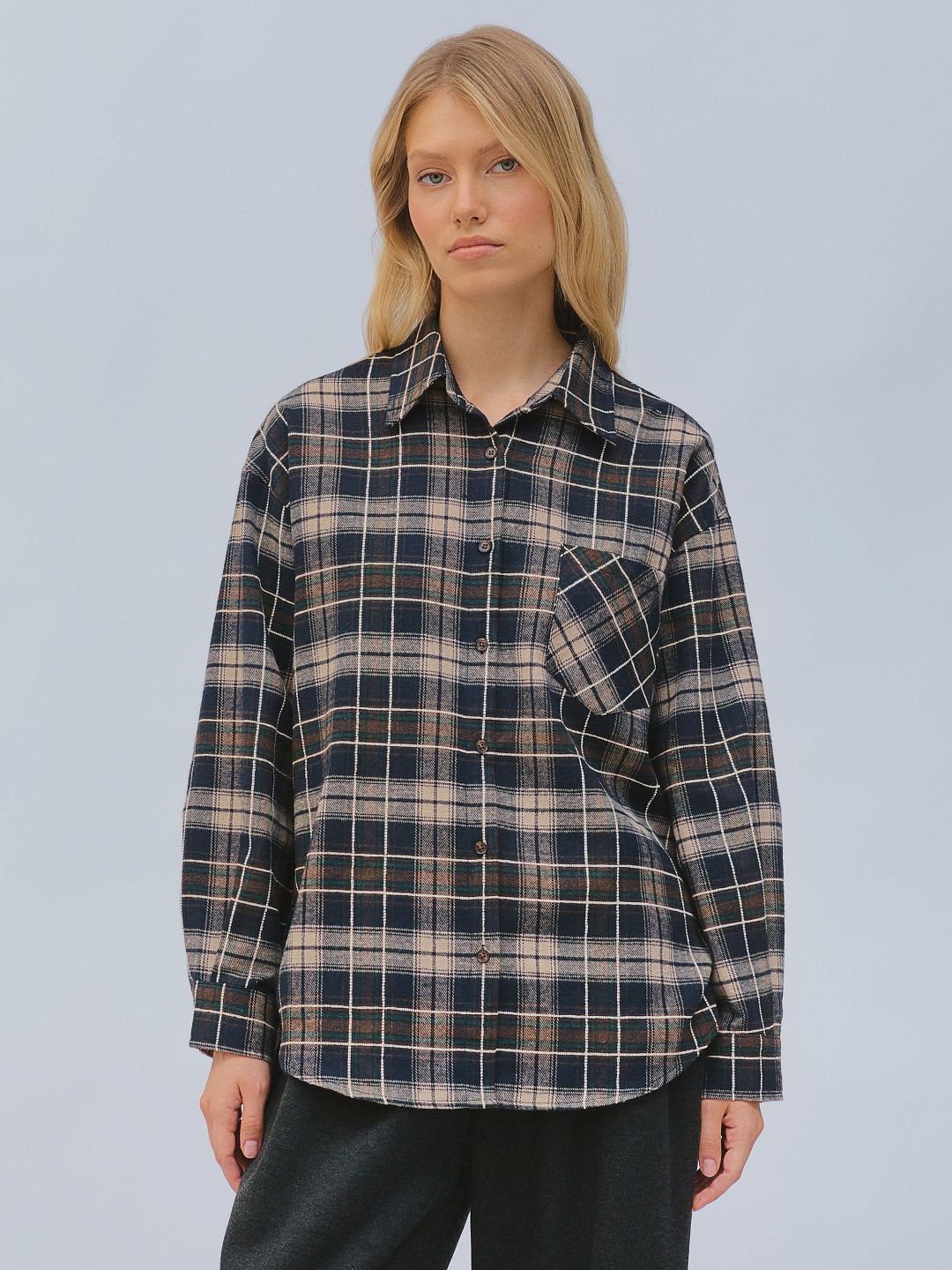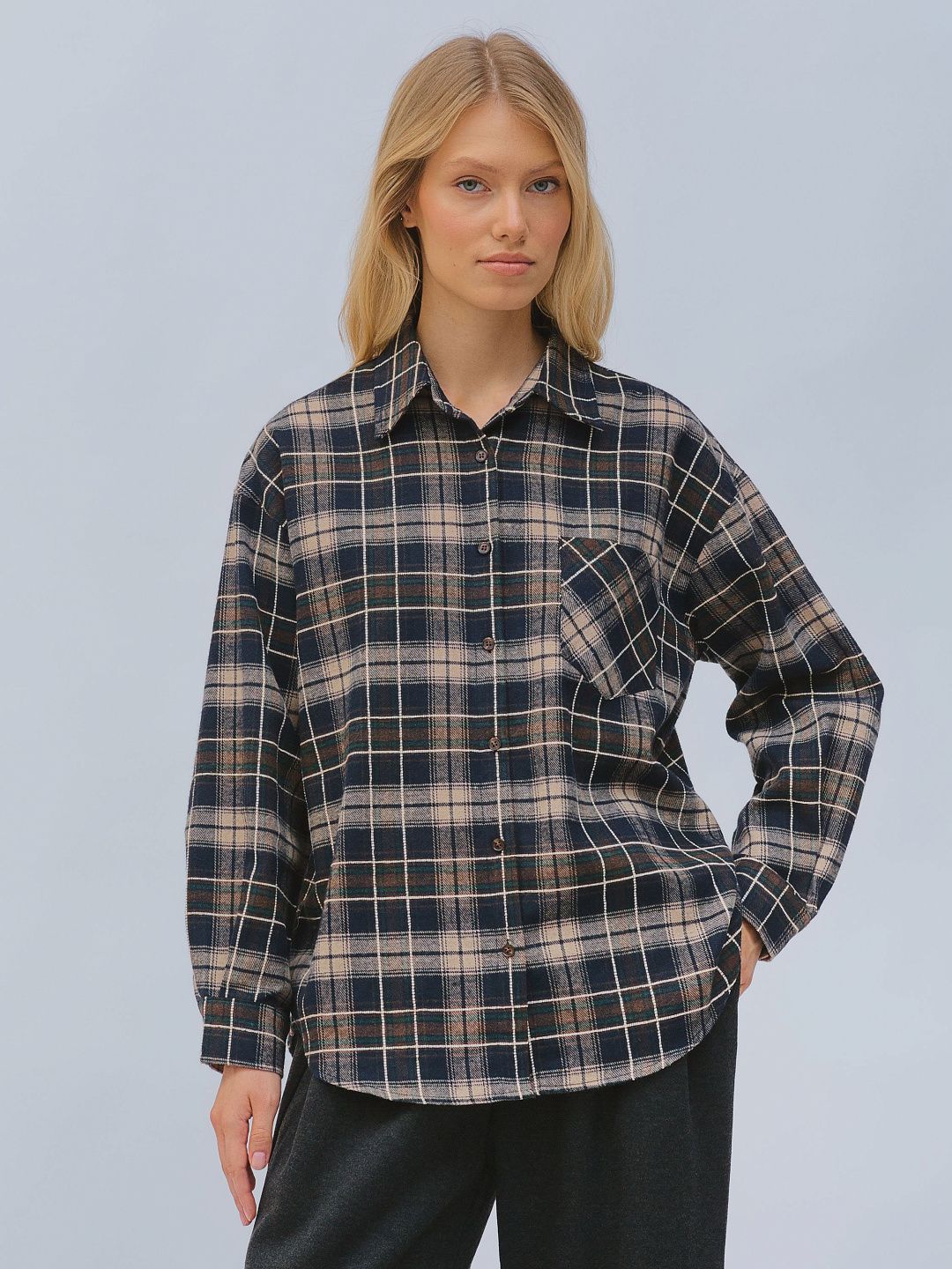 Рубашка хлопковая прямого силуэта с накладным карманом и застёжкой на пуговицы