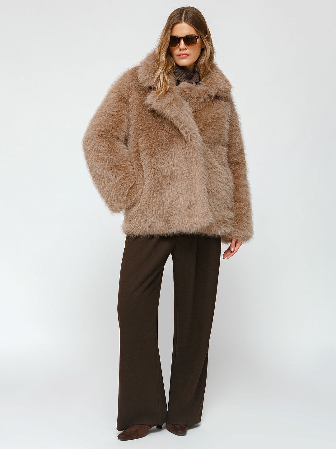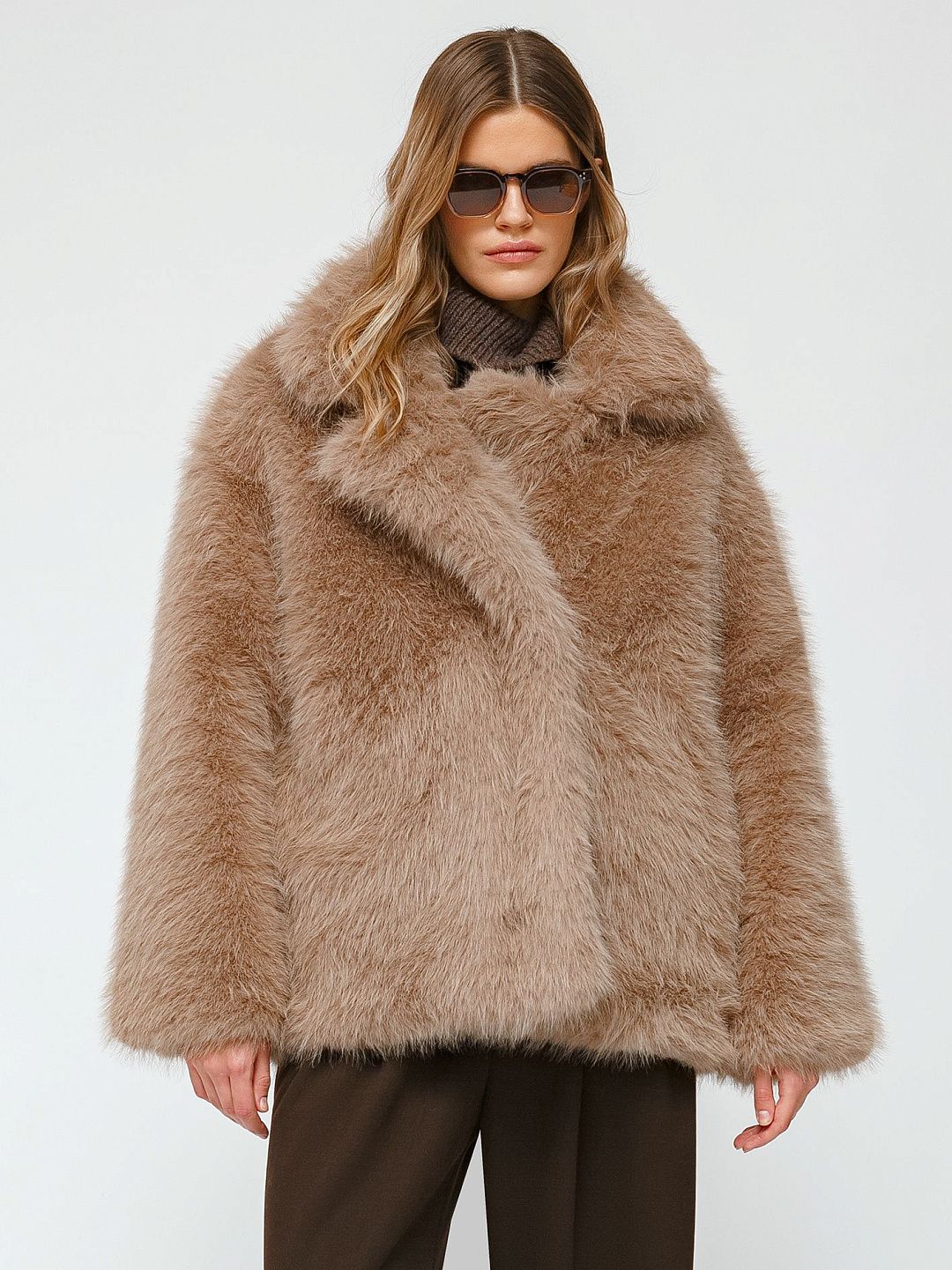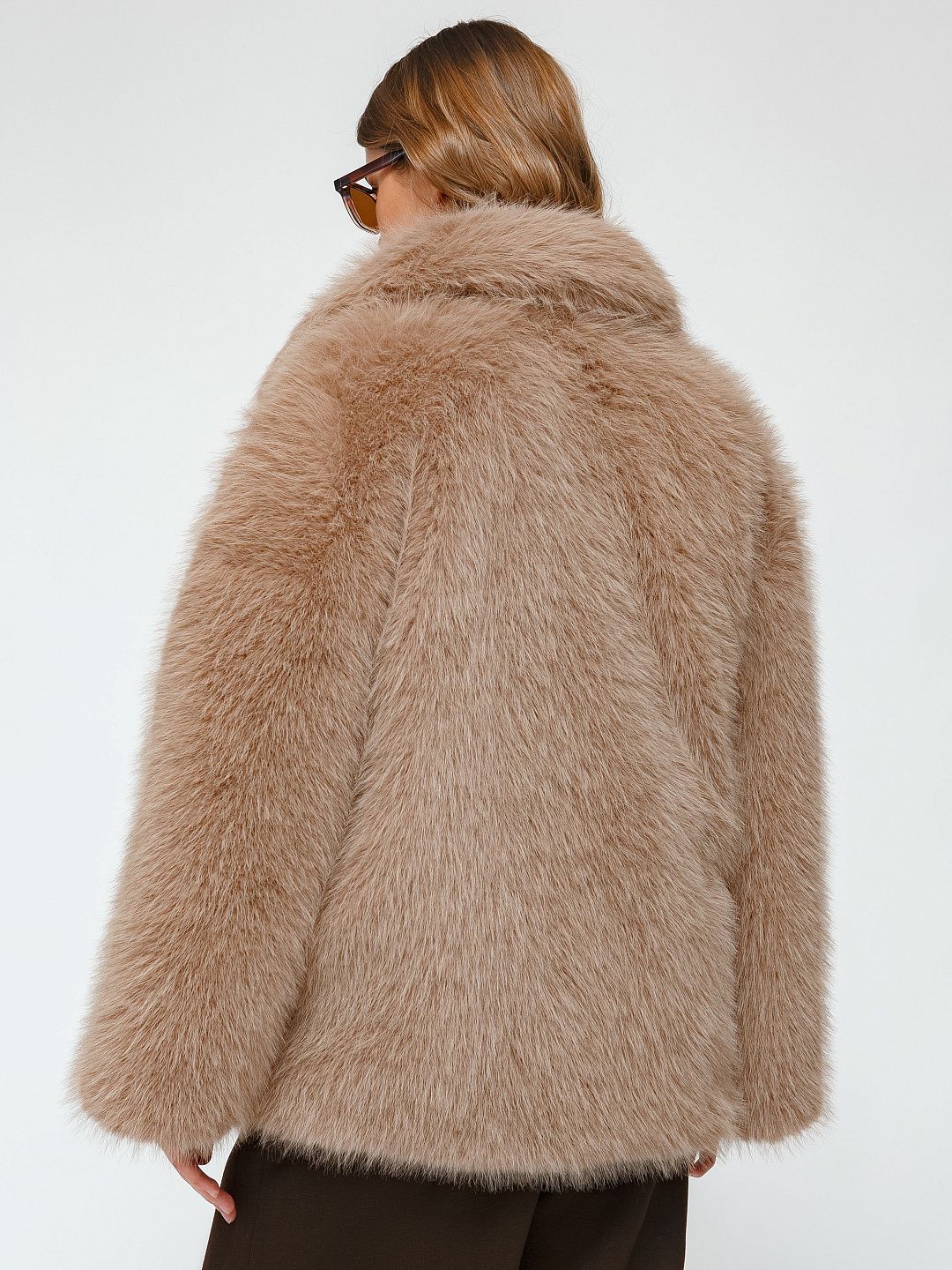 Шуба из искусственного меха с объемным кроем и широкими лацканами