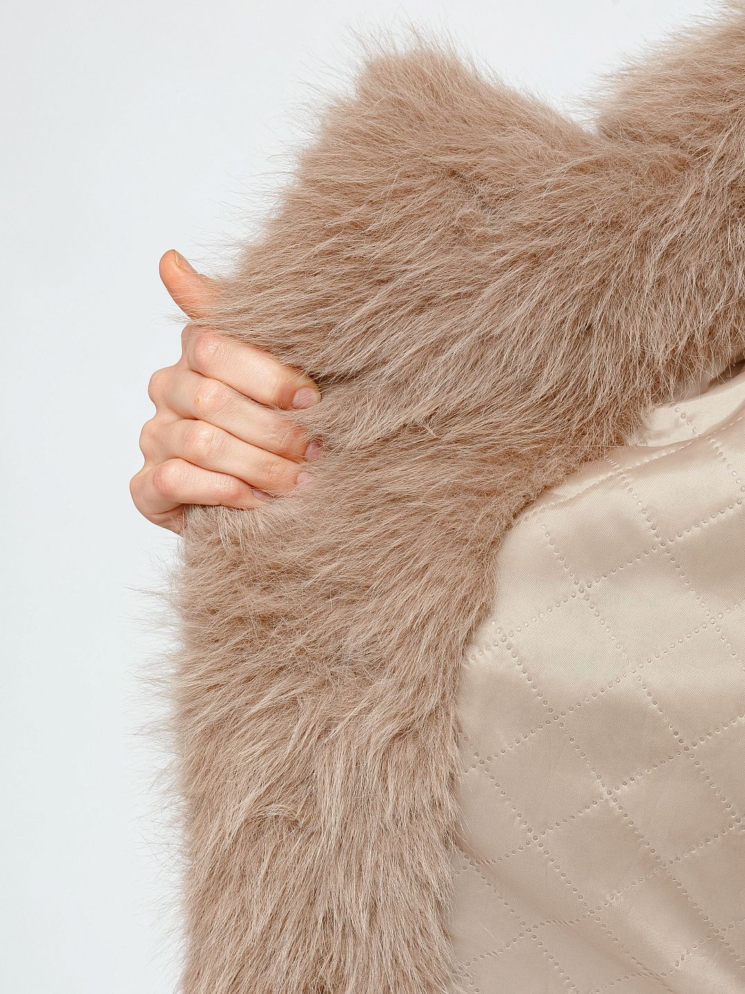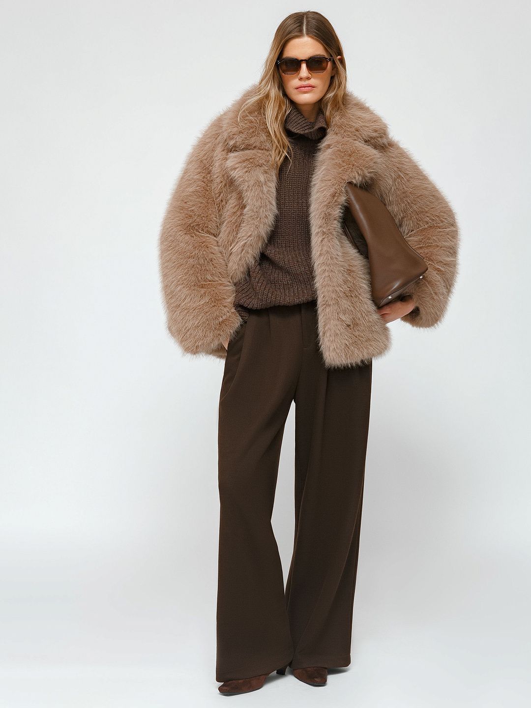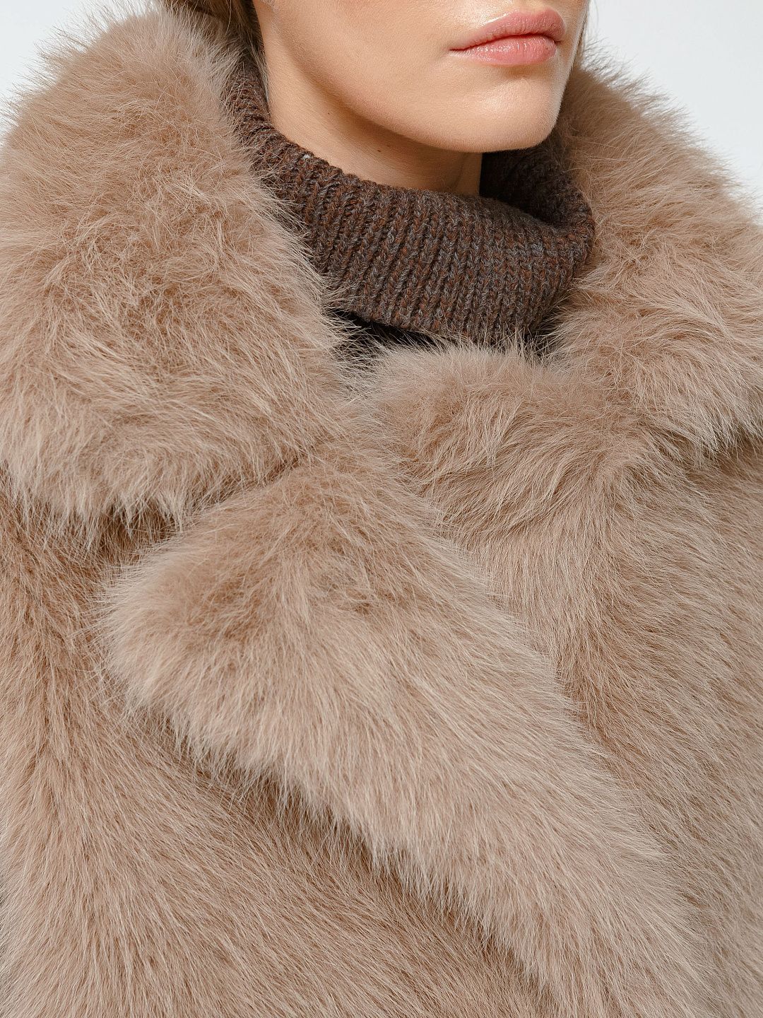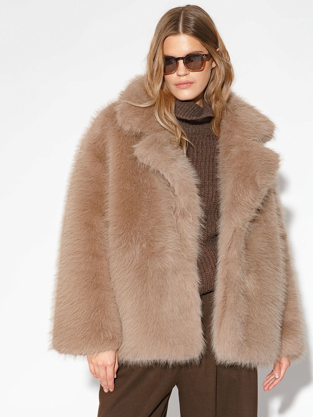 Шуба из искусственного меха с объемным кроем и широкими лацканами