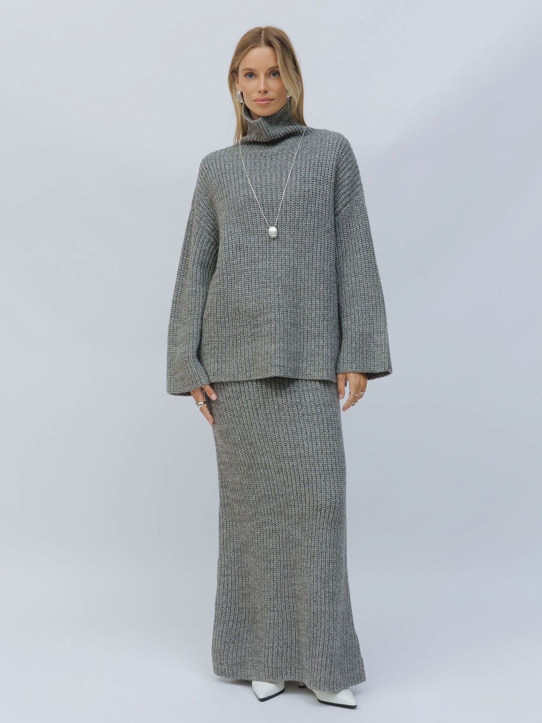 Трикотажная юбка из шерстяной смесовой пряжи с высокой талией и боковыми разрезами Premium lab
