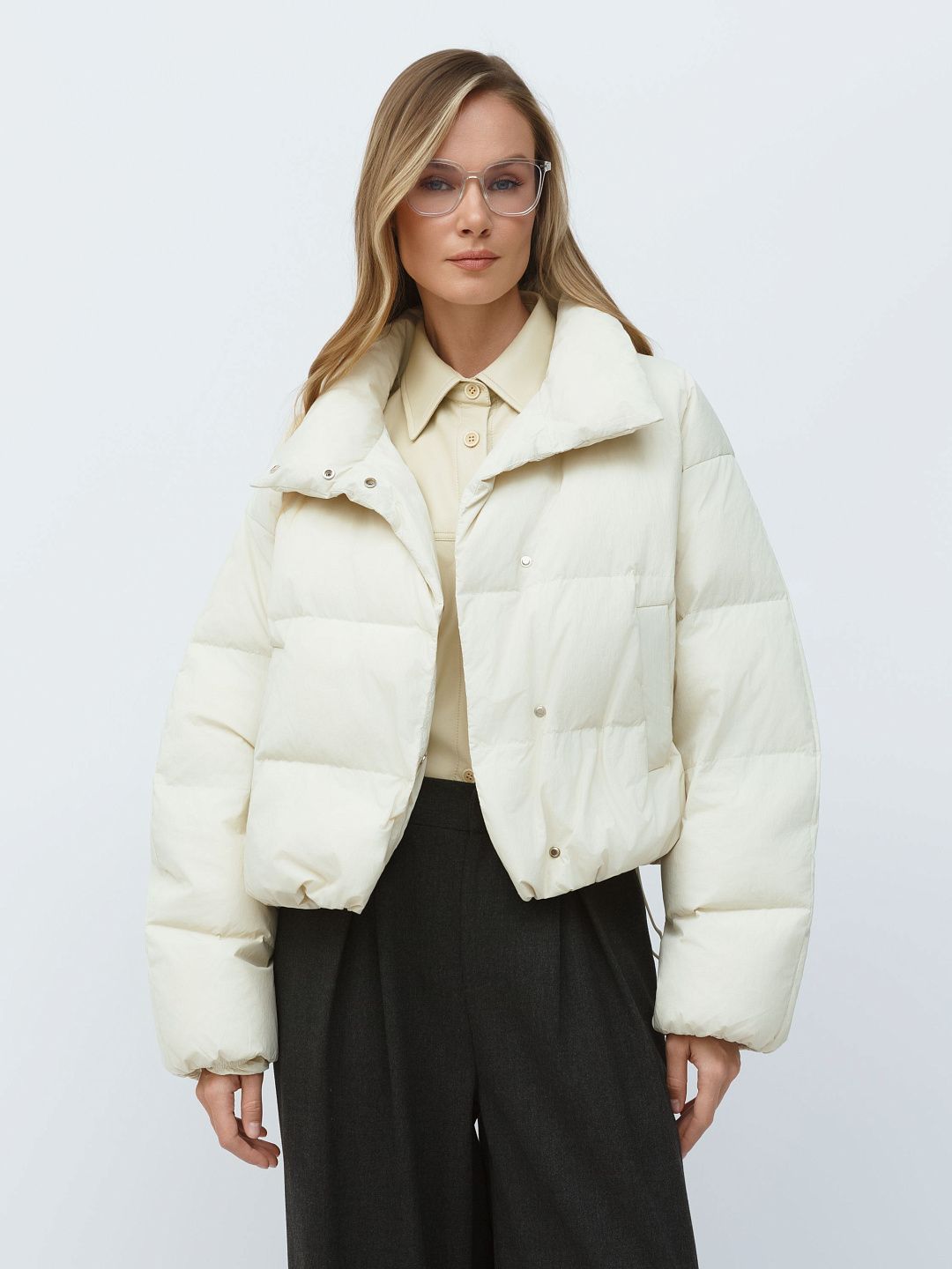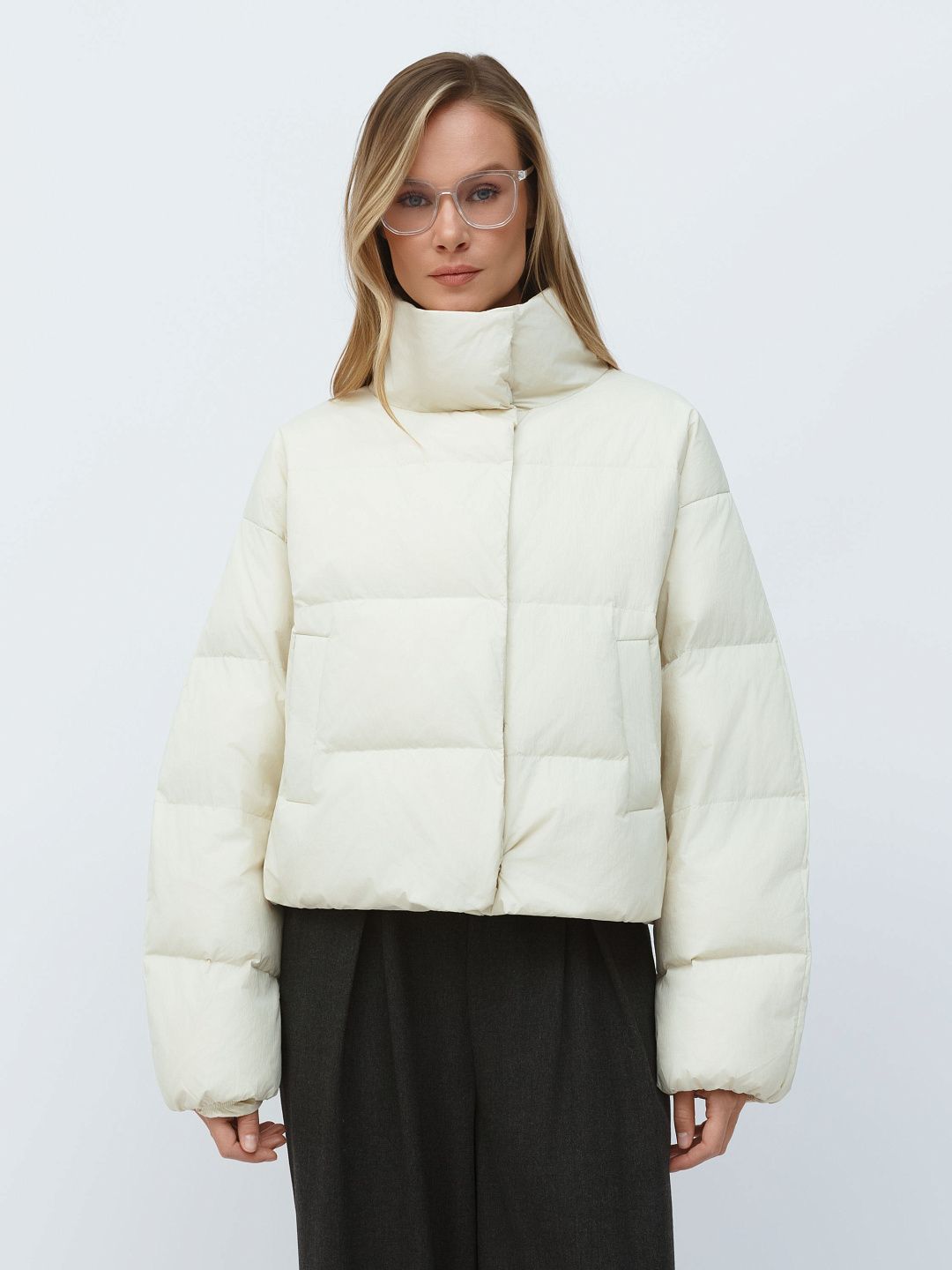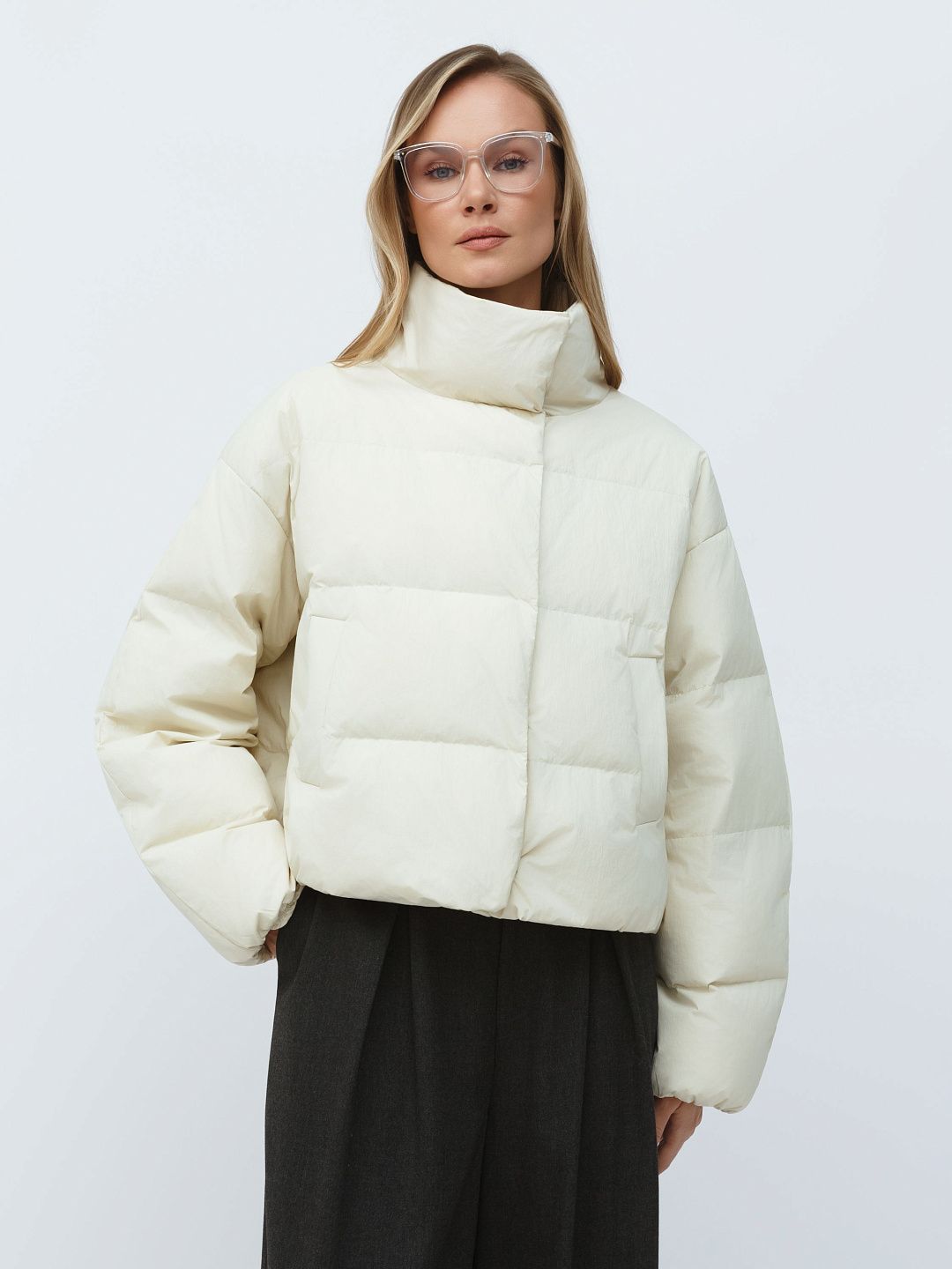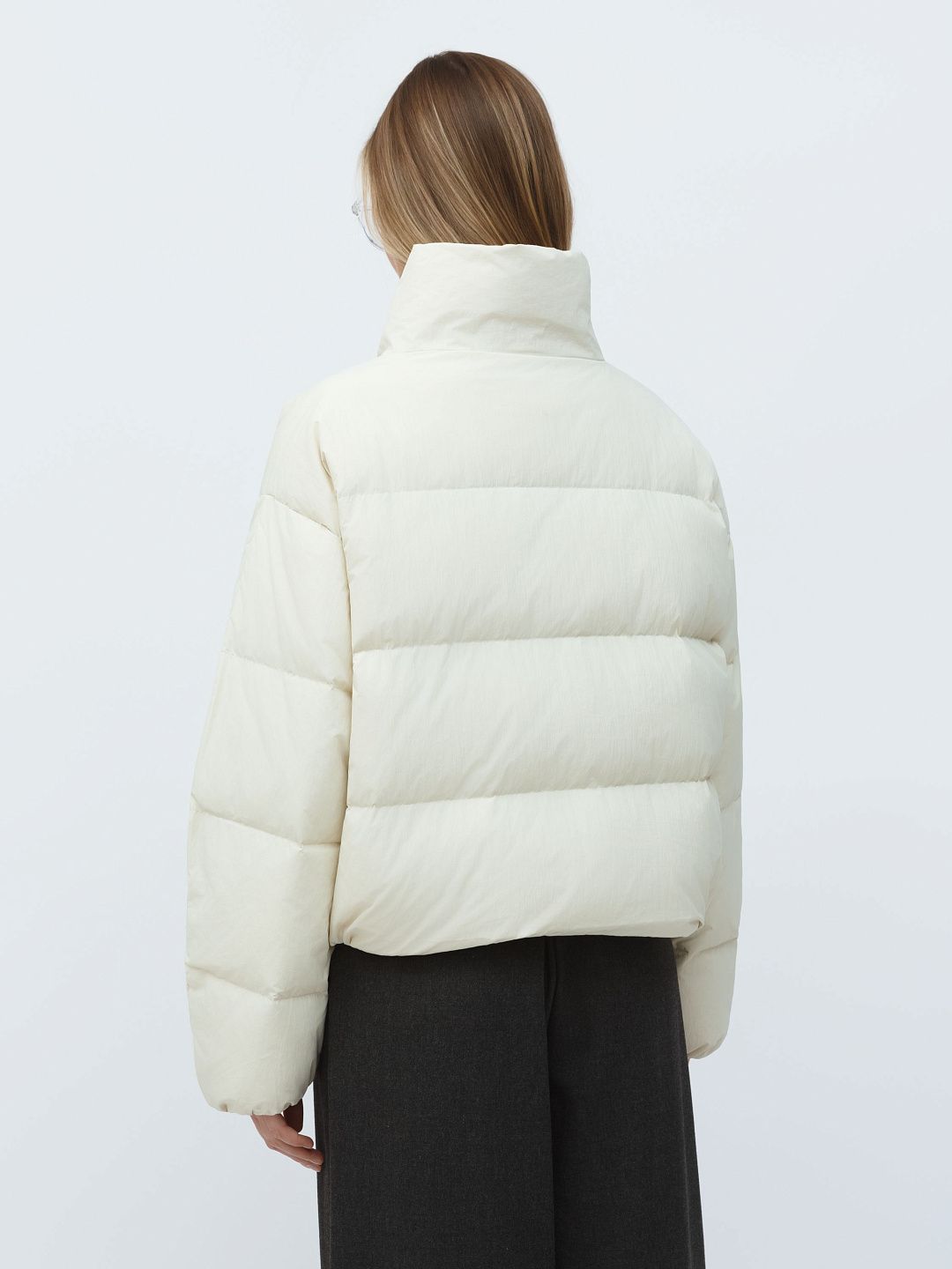 Укороченная куртка-пуховик с высоким воротником