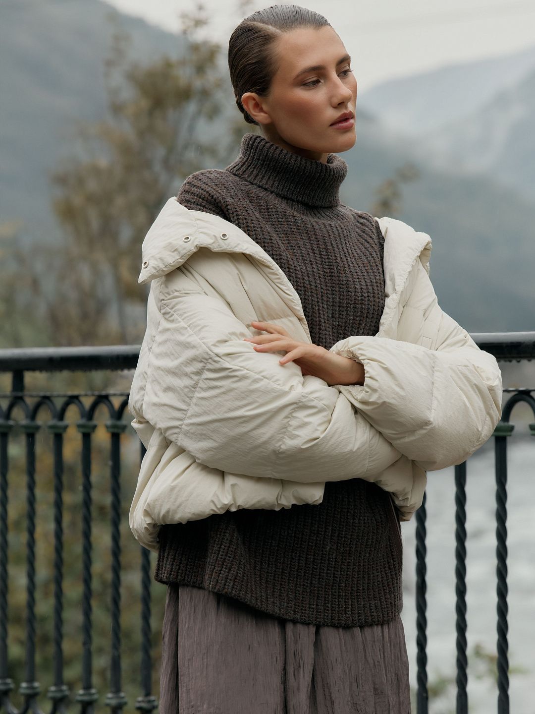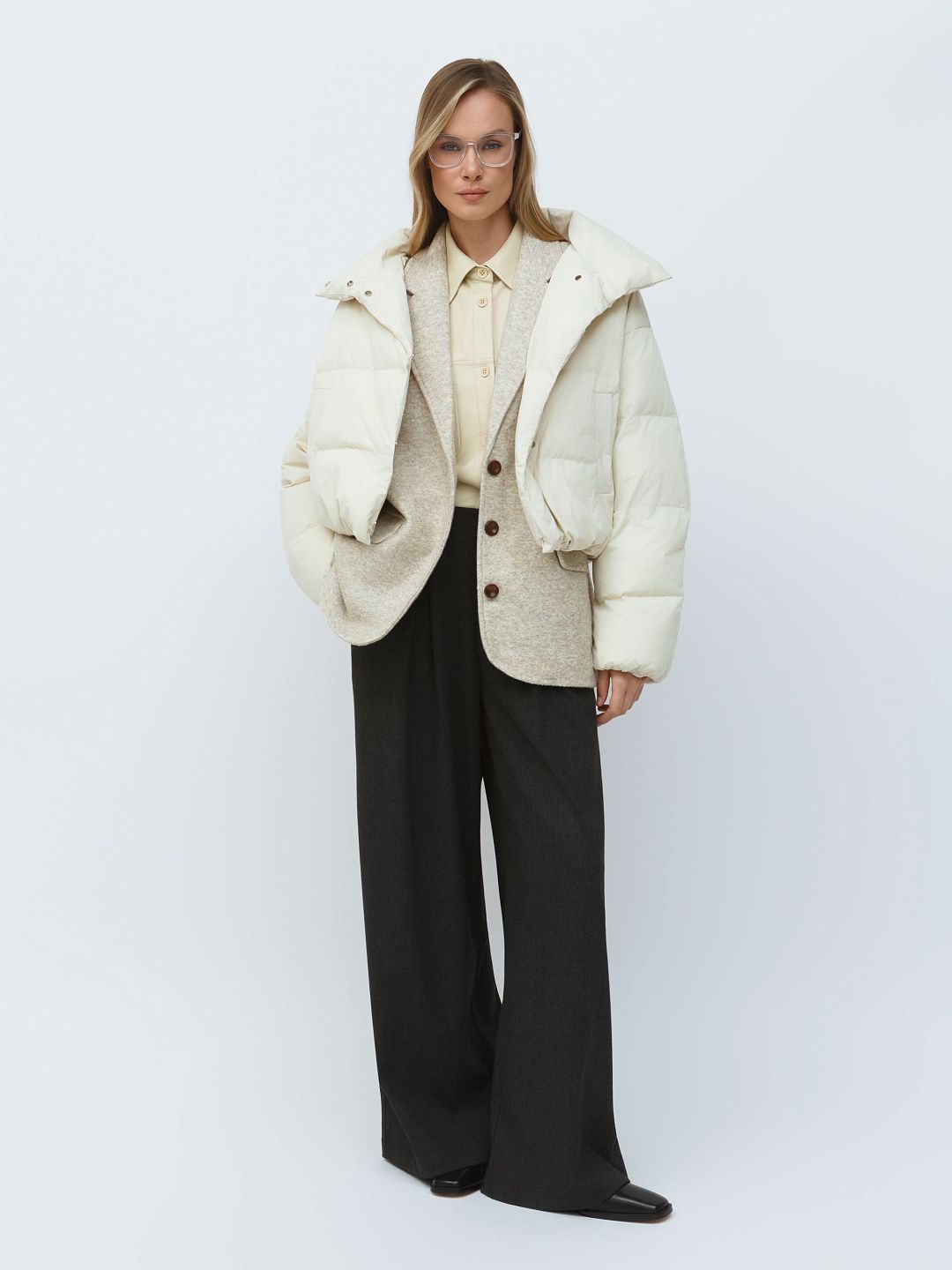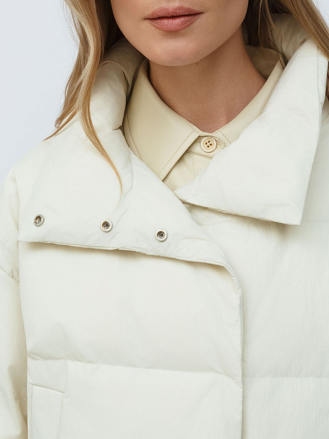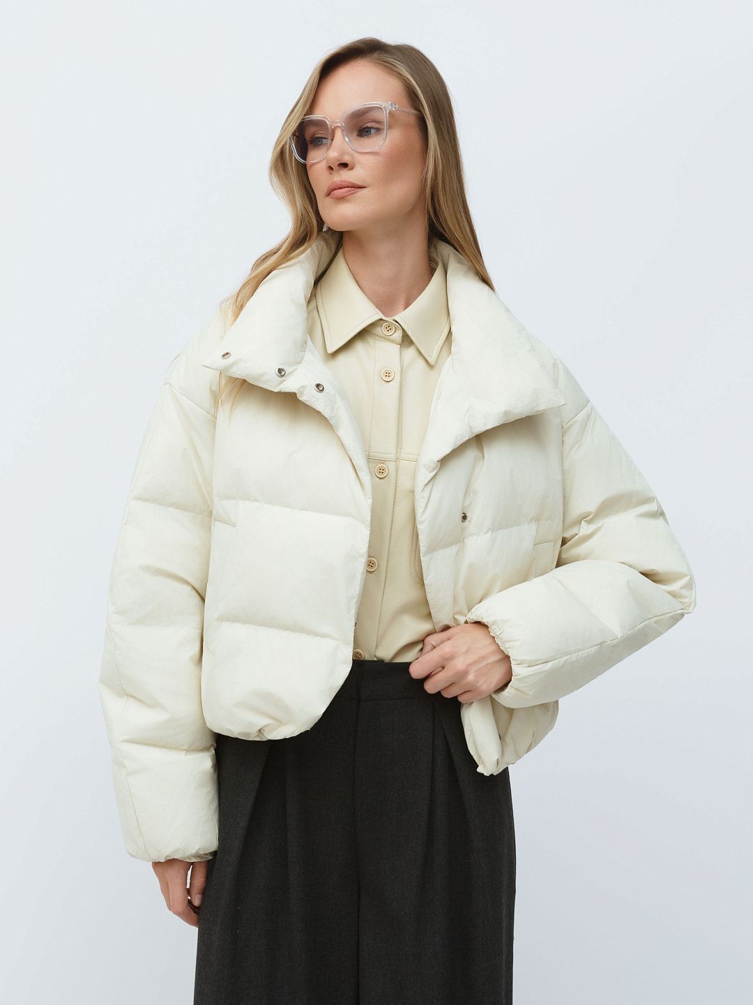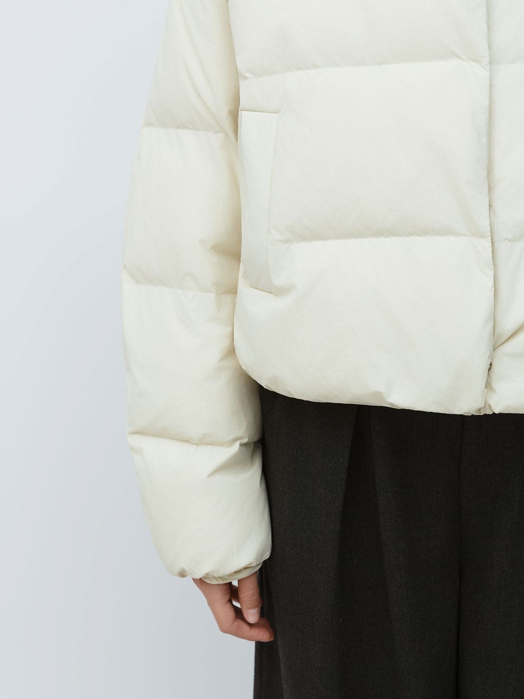Укороченная куртка-пуховик с высоким воротником