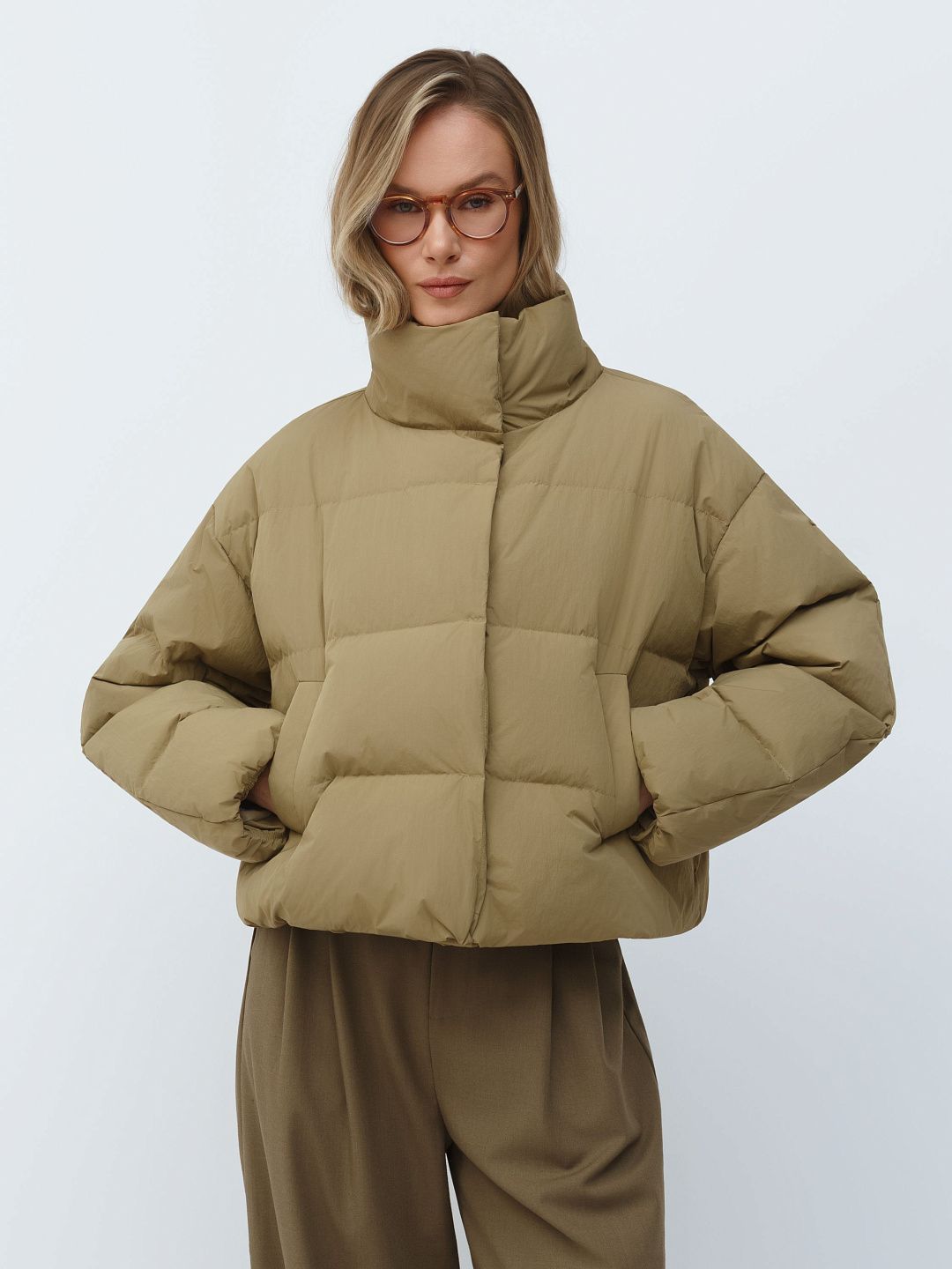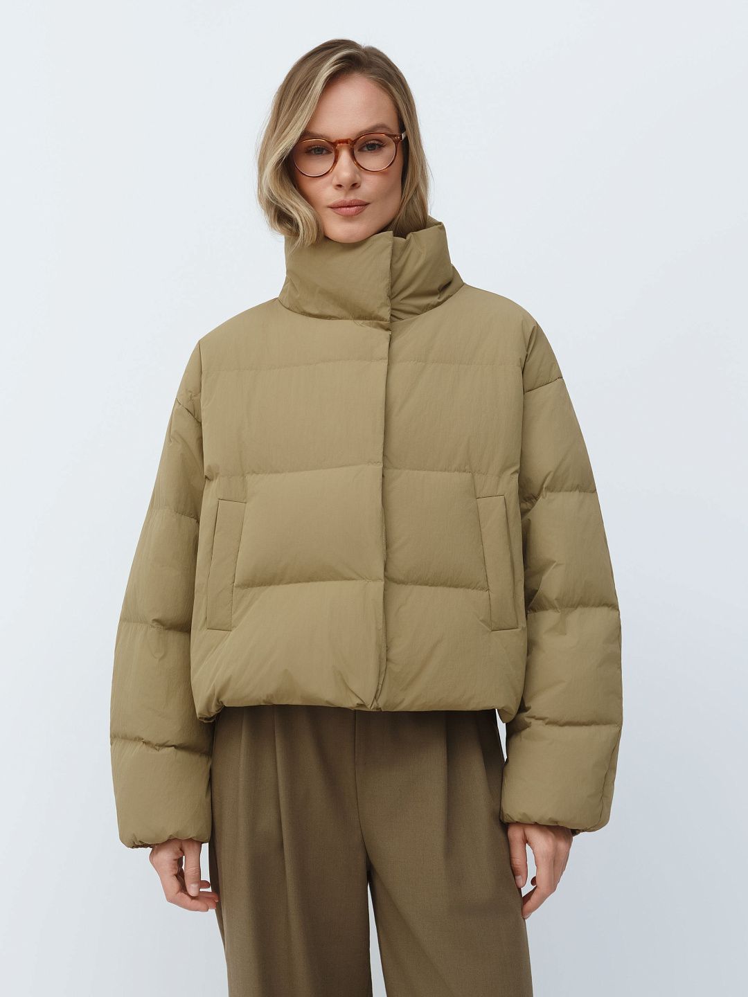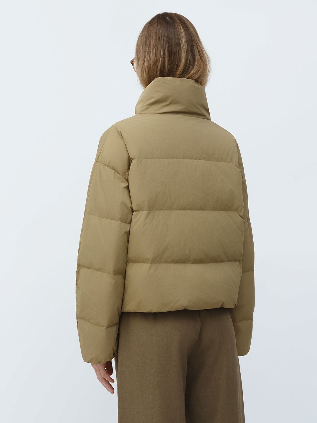 Укороченная куртка-пуховик с высоким воротником