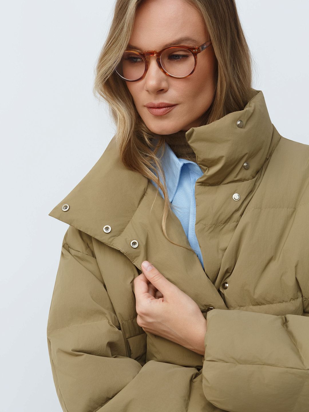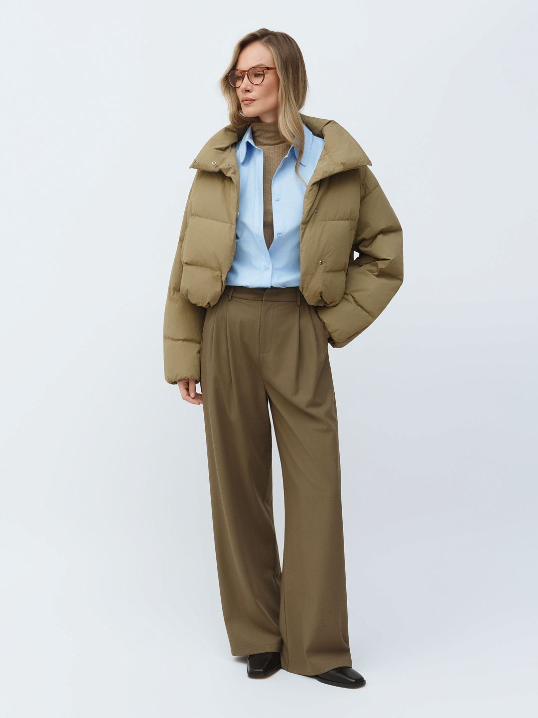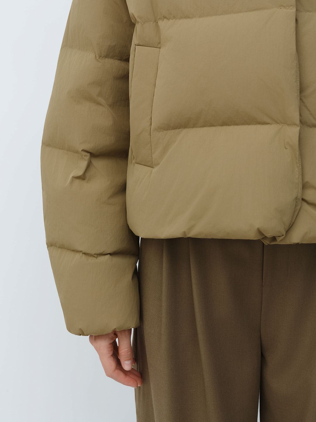 Укороченная куртка-пуховик с высоким воротником