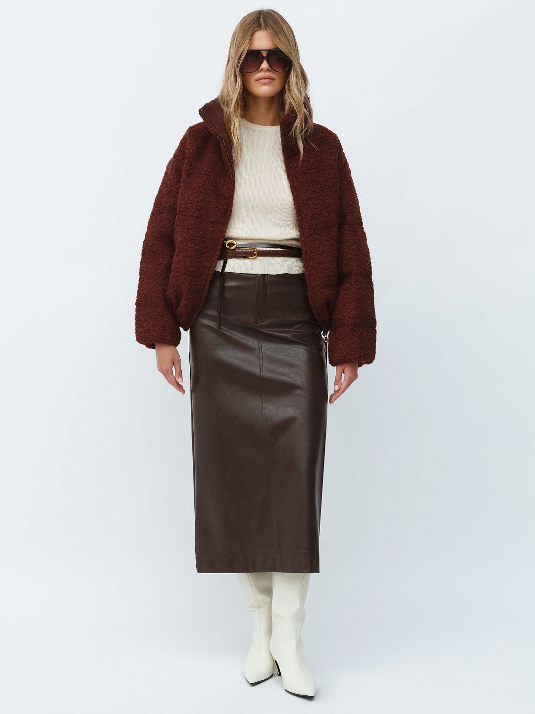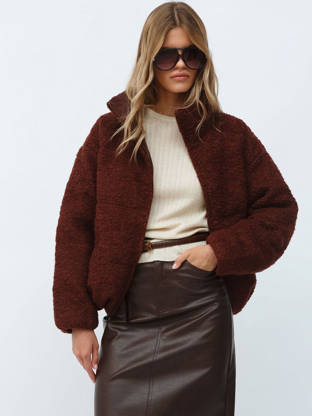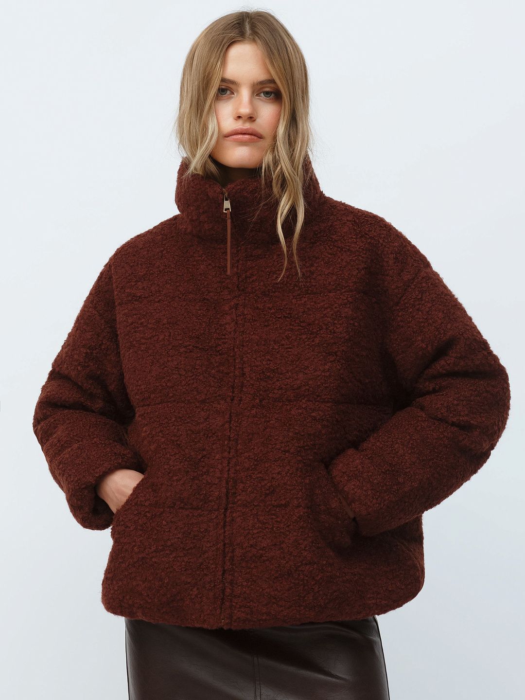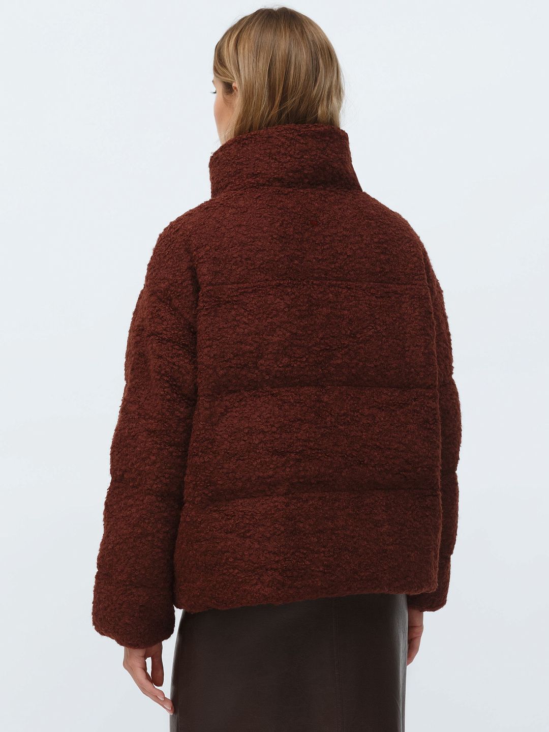 Укороченная пуховая куртка с шерстяным верхом и наполнителем из утиных перьев и пуха
