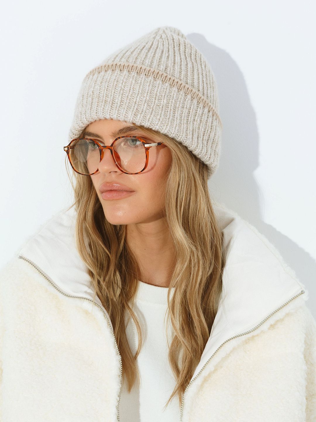 Вязаная шапка с отворотом
