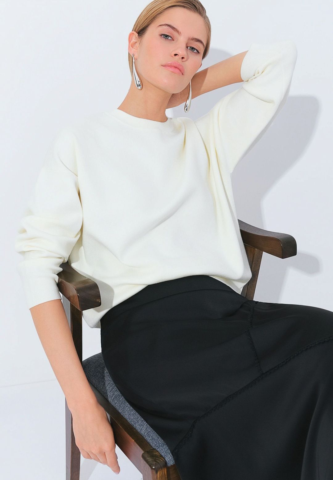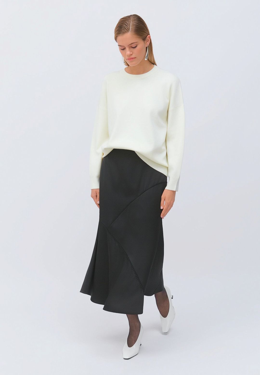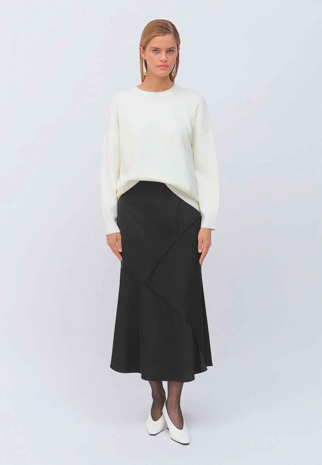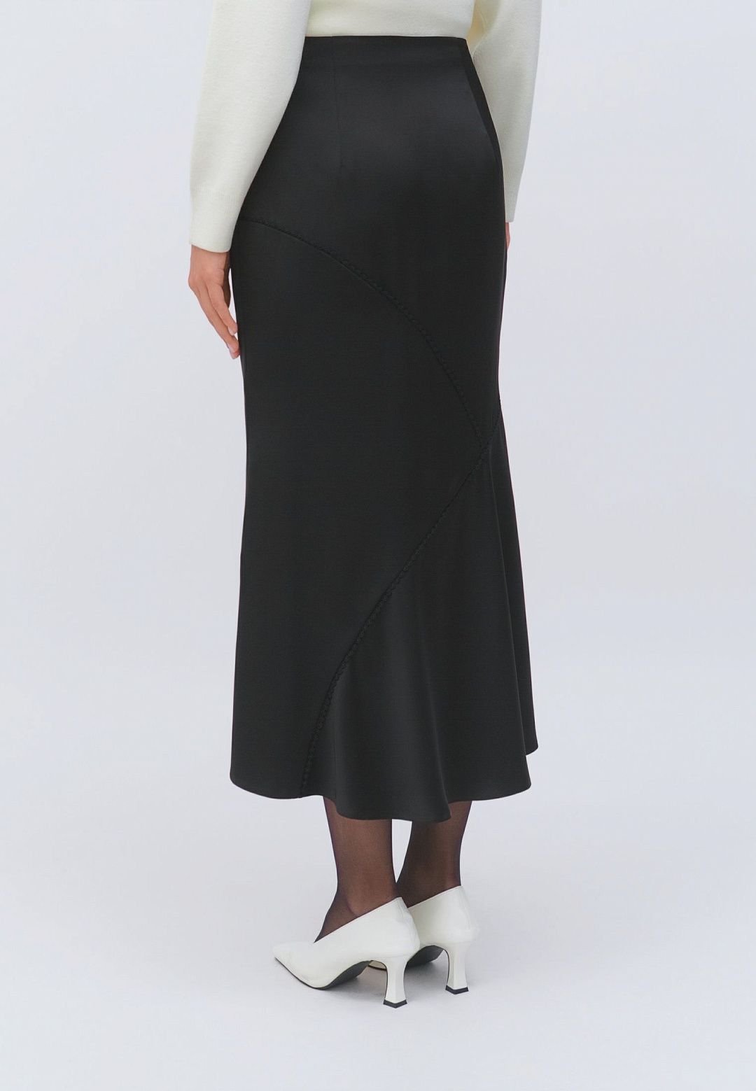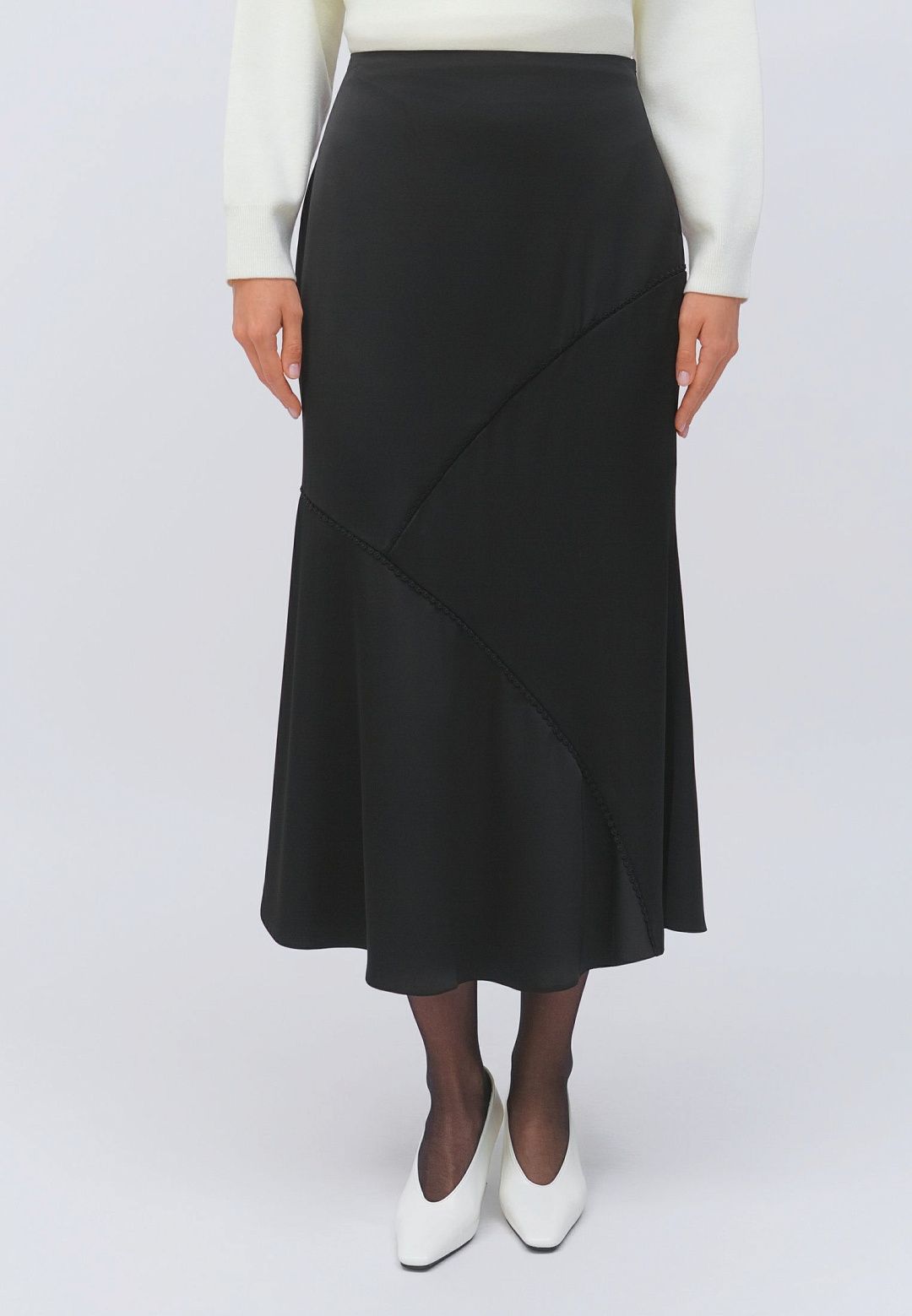 Юбка-миди с асимметричной драпировкой и декоративной строчкой