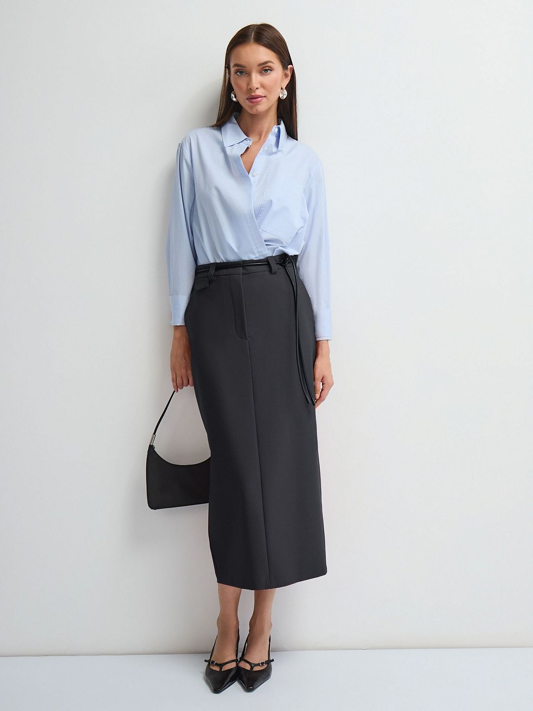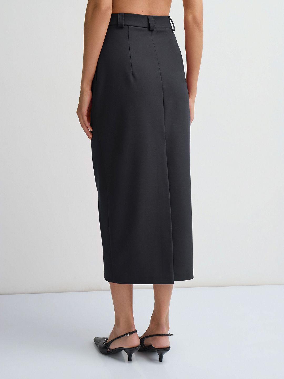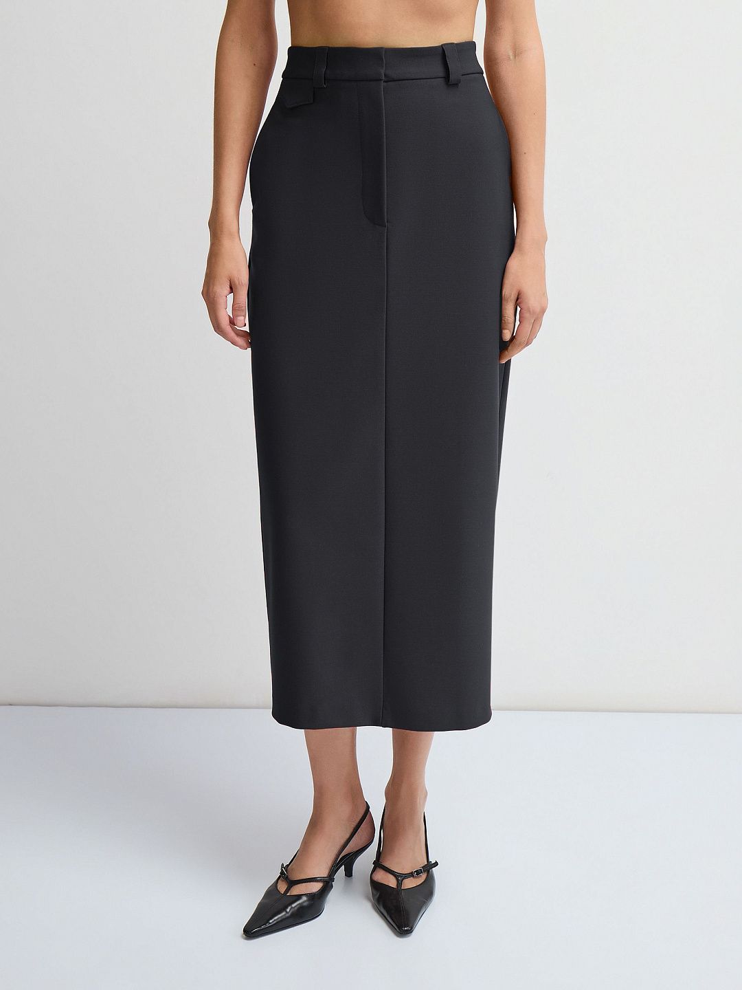 Юбка прямая миди из тенселя с высокой посадкой и потайной застёжкой