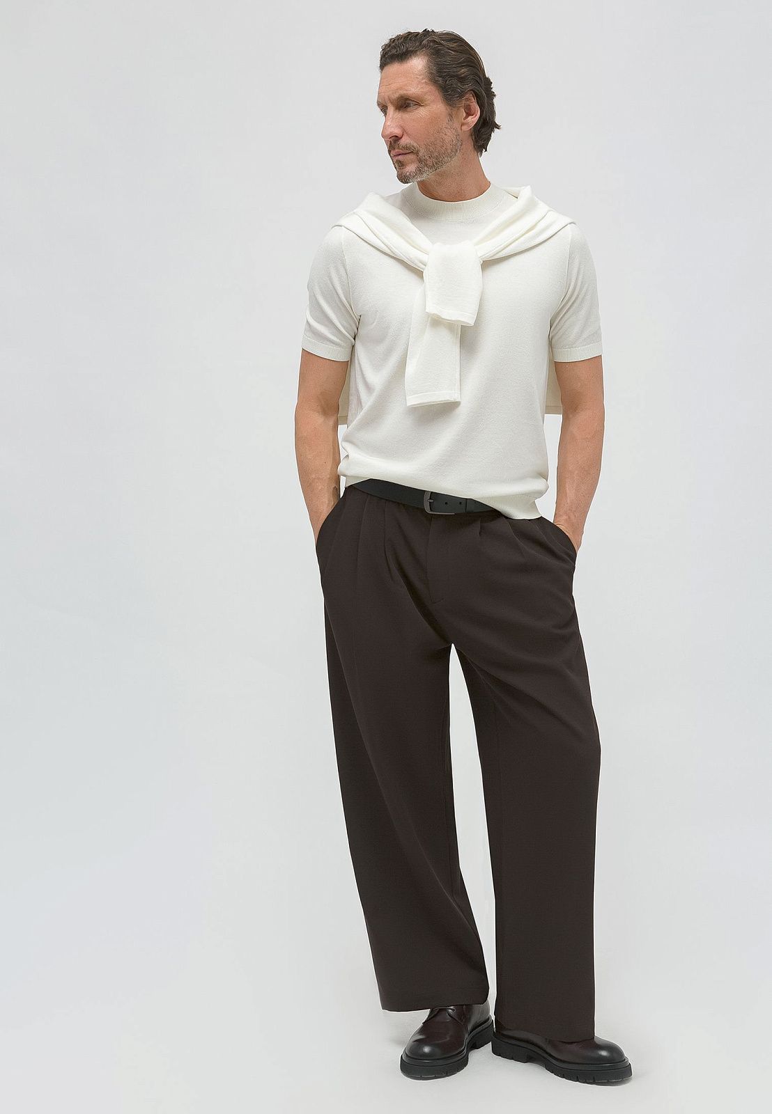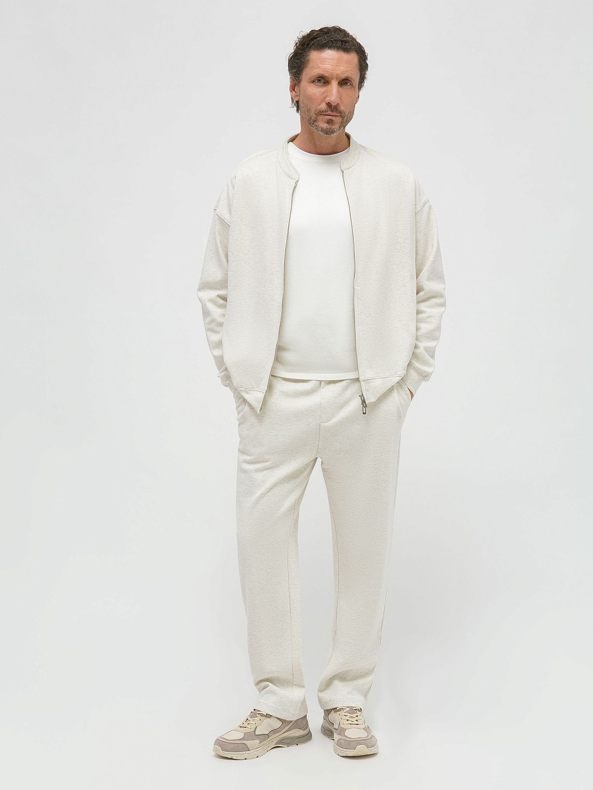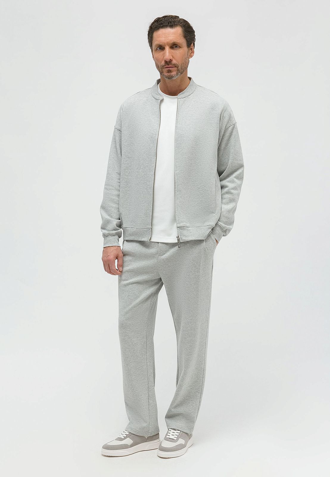 Хлопковые брюки прямого кроя из трикотажа
